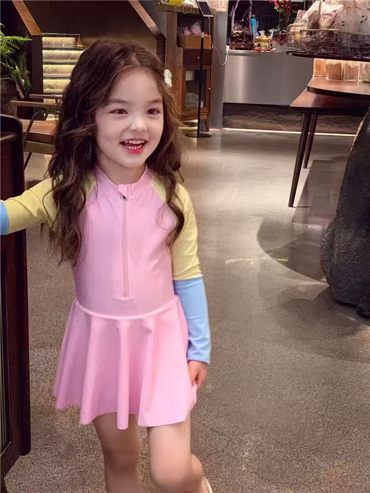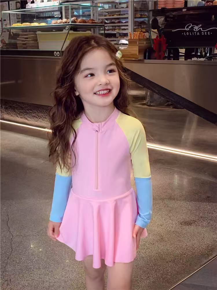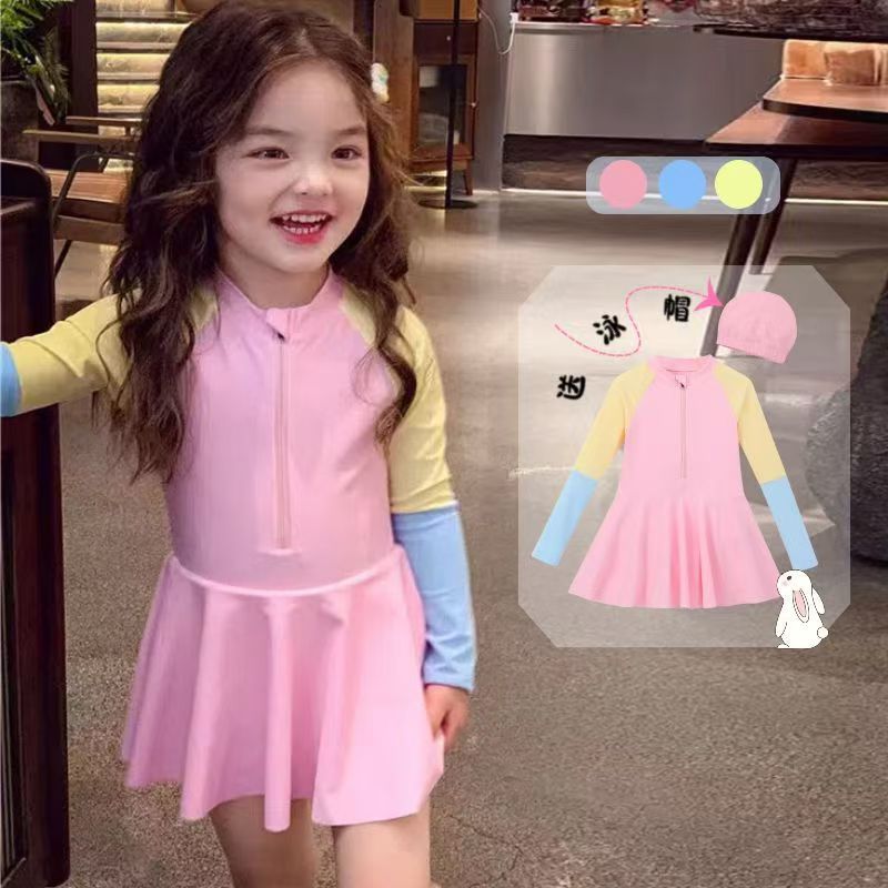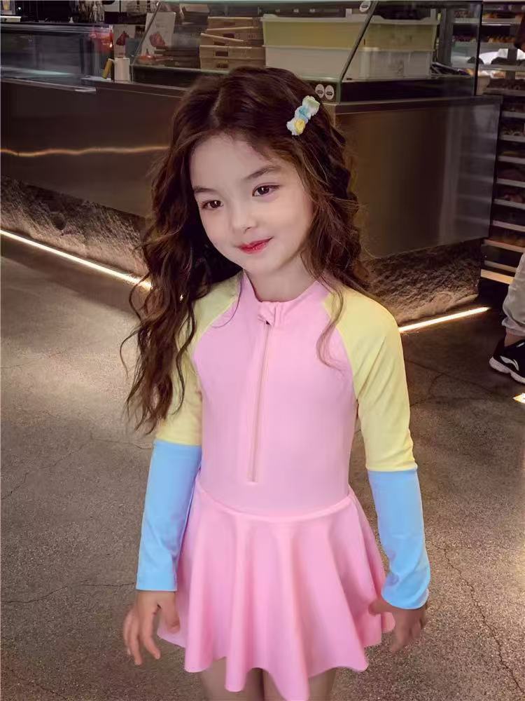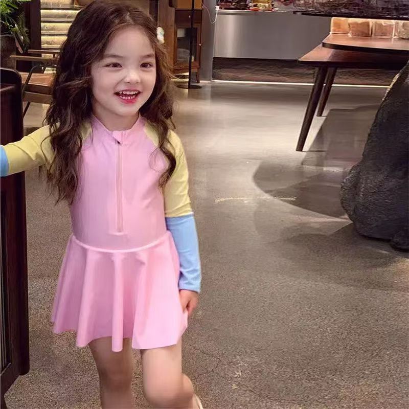 소녀 원피스 수영복 여름 귀여운 프린트 짧은 소매 2025 새로운 소녀 아기 서양식 어린이 수영복 빠른 건조