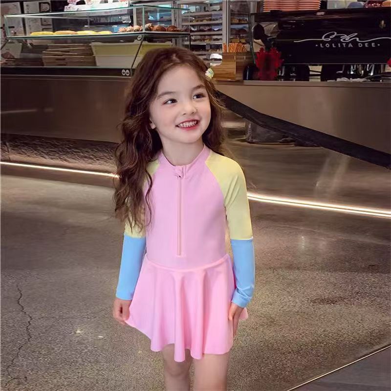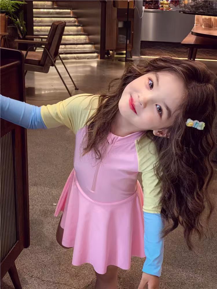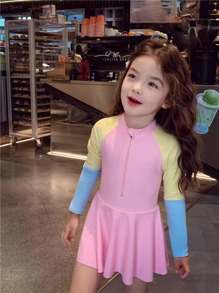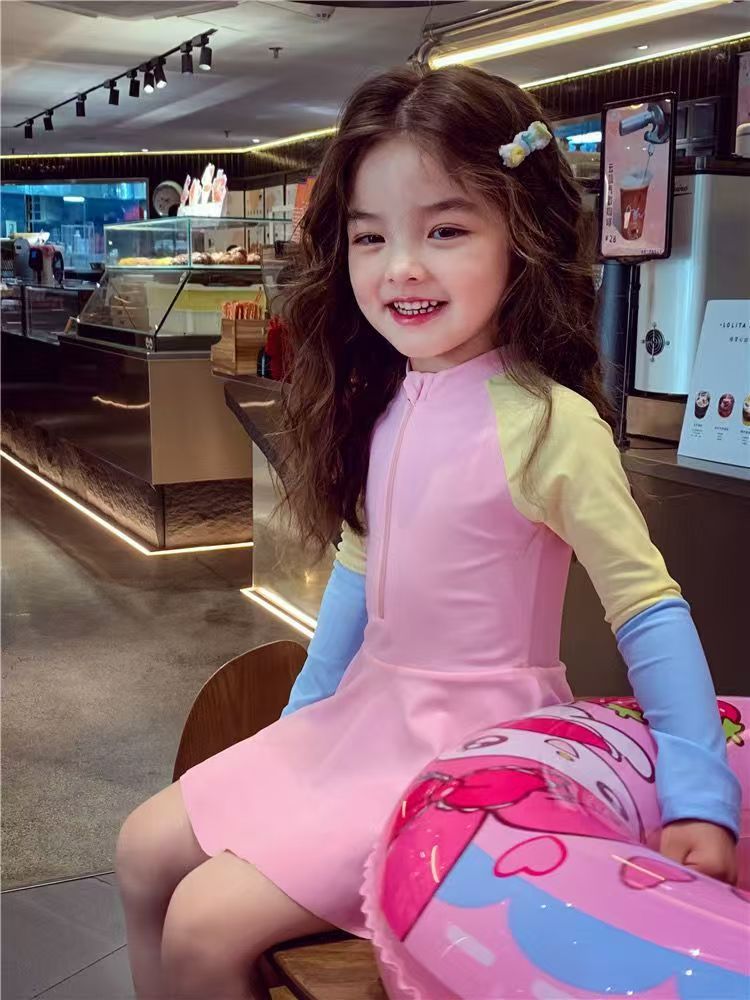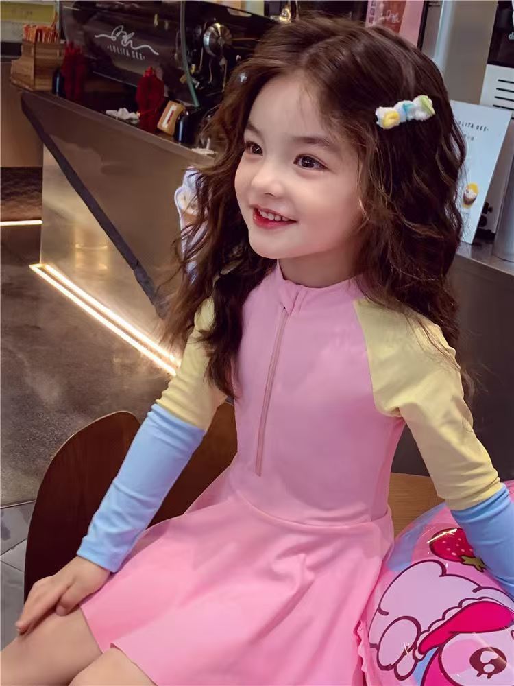 소녀 원피스 수영복 여름 귀여운 프린트 짧은 소매 2025 새로운 소녀 아기 서양식 어린이 수영복 빠른 건조