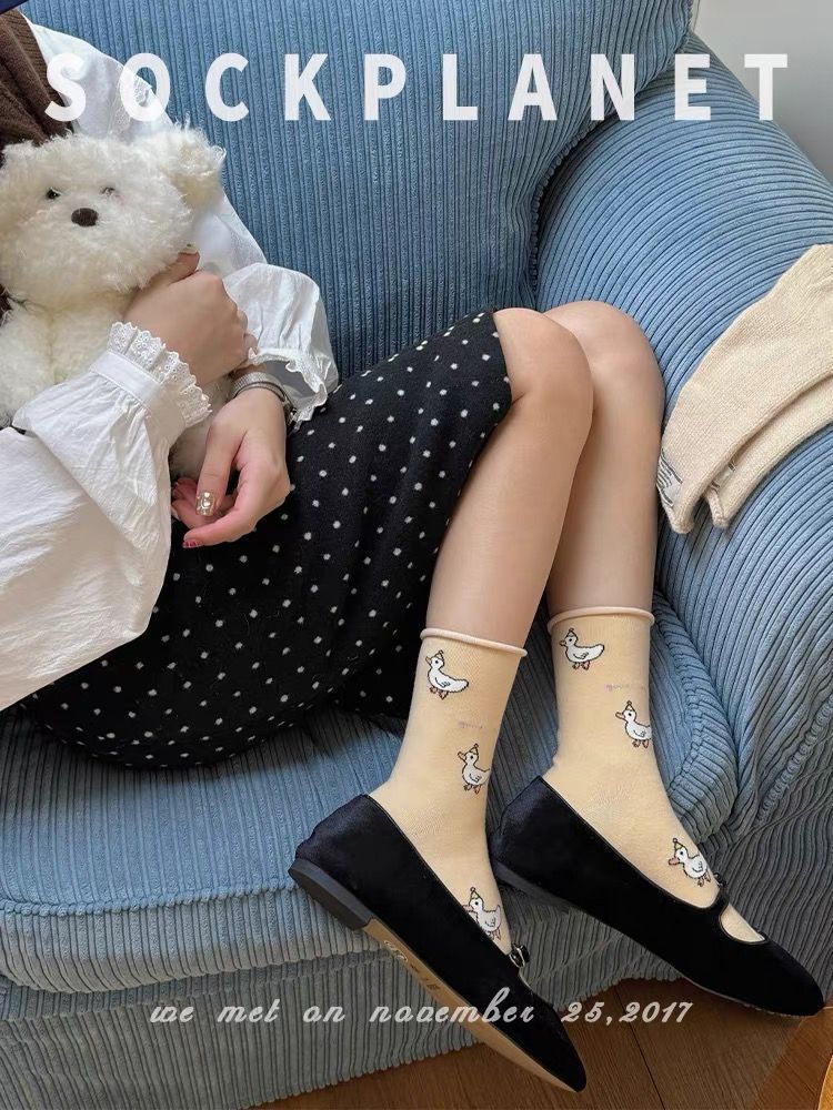 봄, 가을, 겨울용 여성용 일본 스타일 귀여운 얇은 통기성 스포츠 양말, 다용도 중간 길이 양말 도매스토어 가기