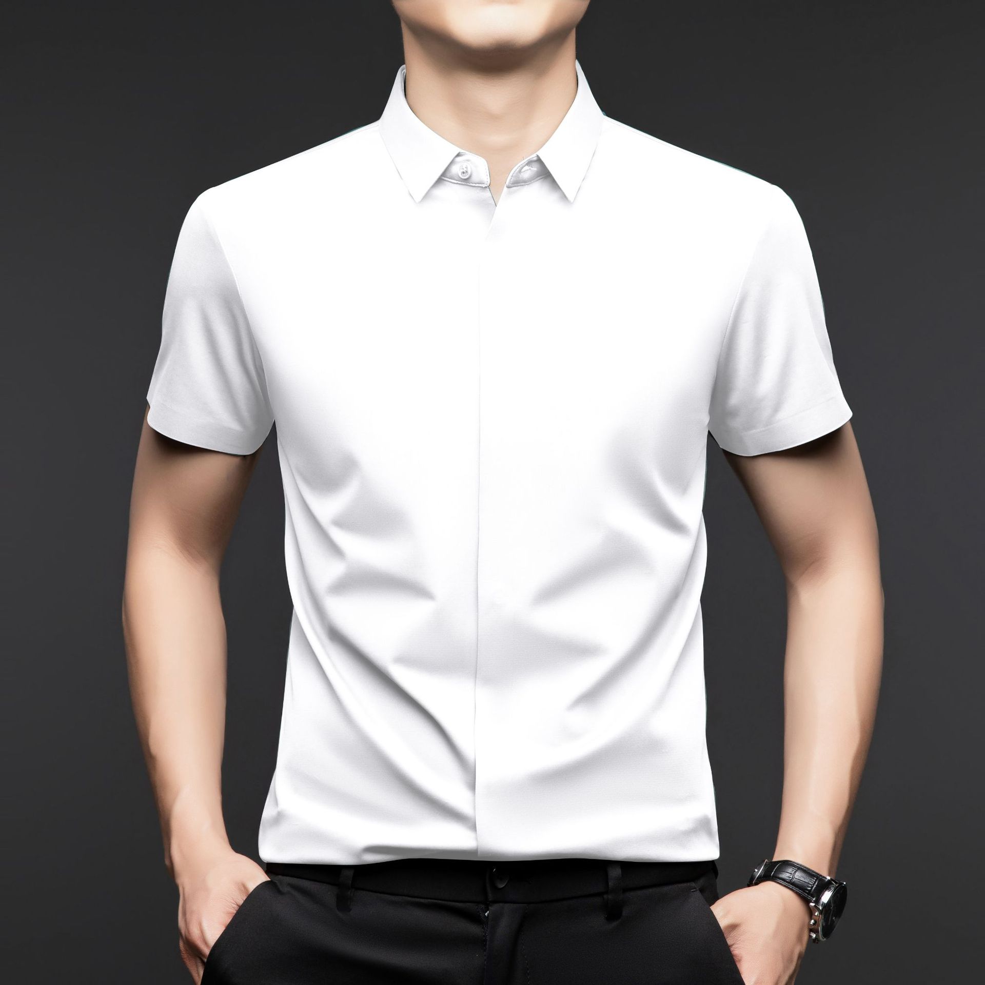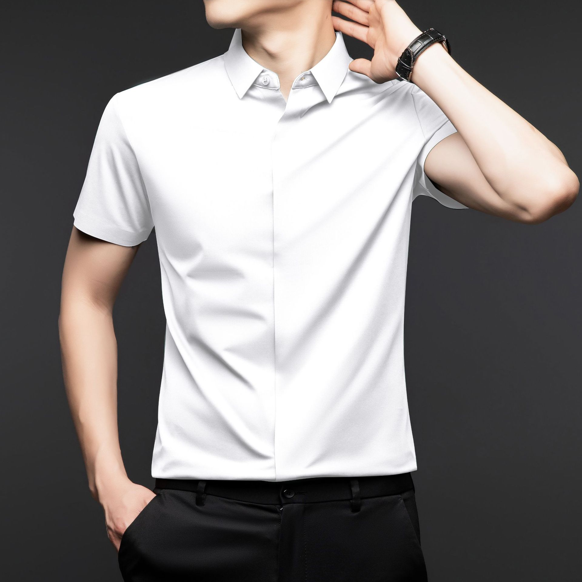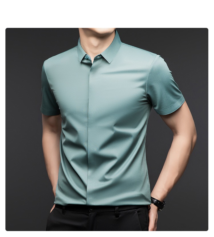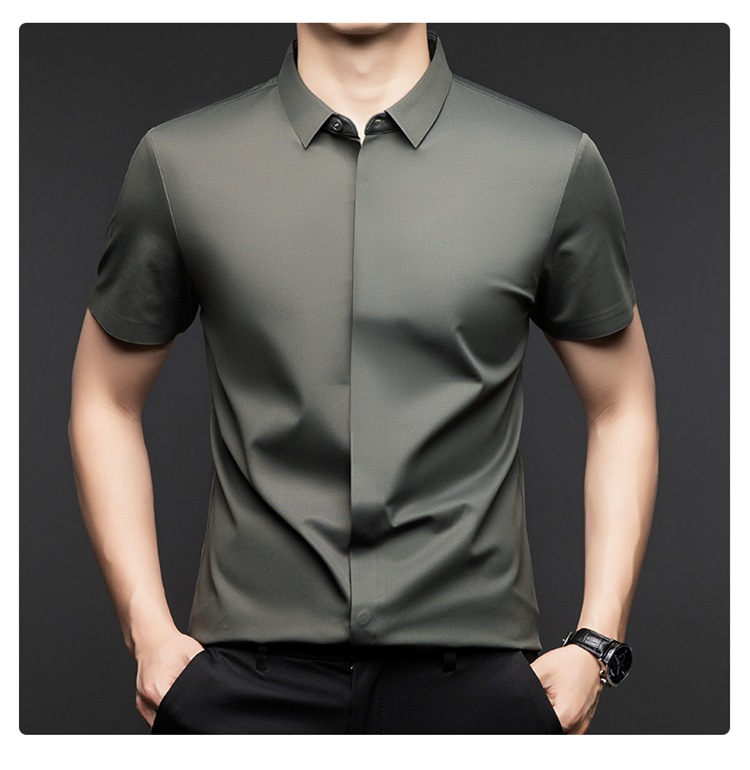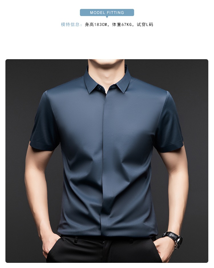 하이 엔드 아이스 실크 뽕나무 실크 반팔 셔츠 남자 여름 플러스 사이즈 추적없는 숨겨진 버튼 캐주얼 비즈니스 올 매치 남자 셔츠스토어 가기