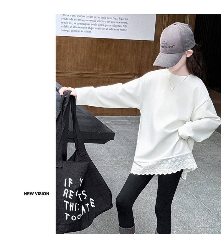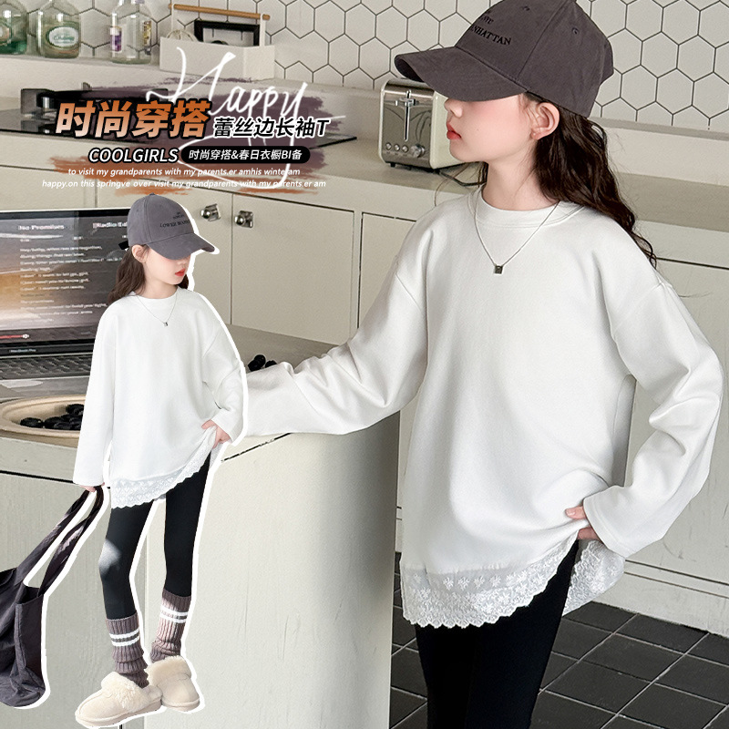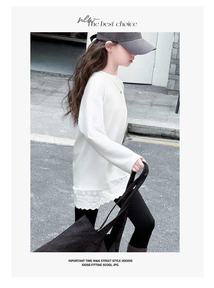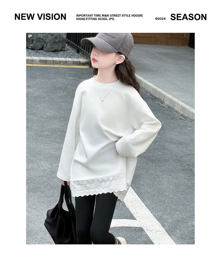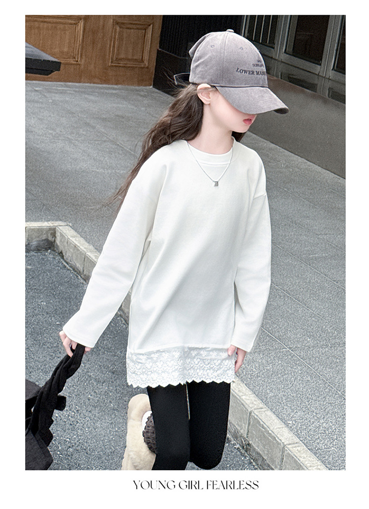 여자 봄, 가을 순수 코튼 바닥 셔츠 인터넷 연예인 레이스 티셔츠 여자 가을 흰색 중간 길이 스웨트 스커트스토어 가기