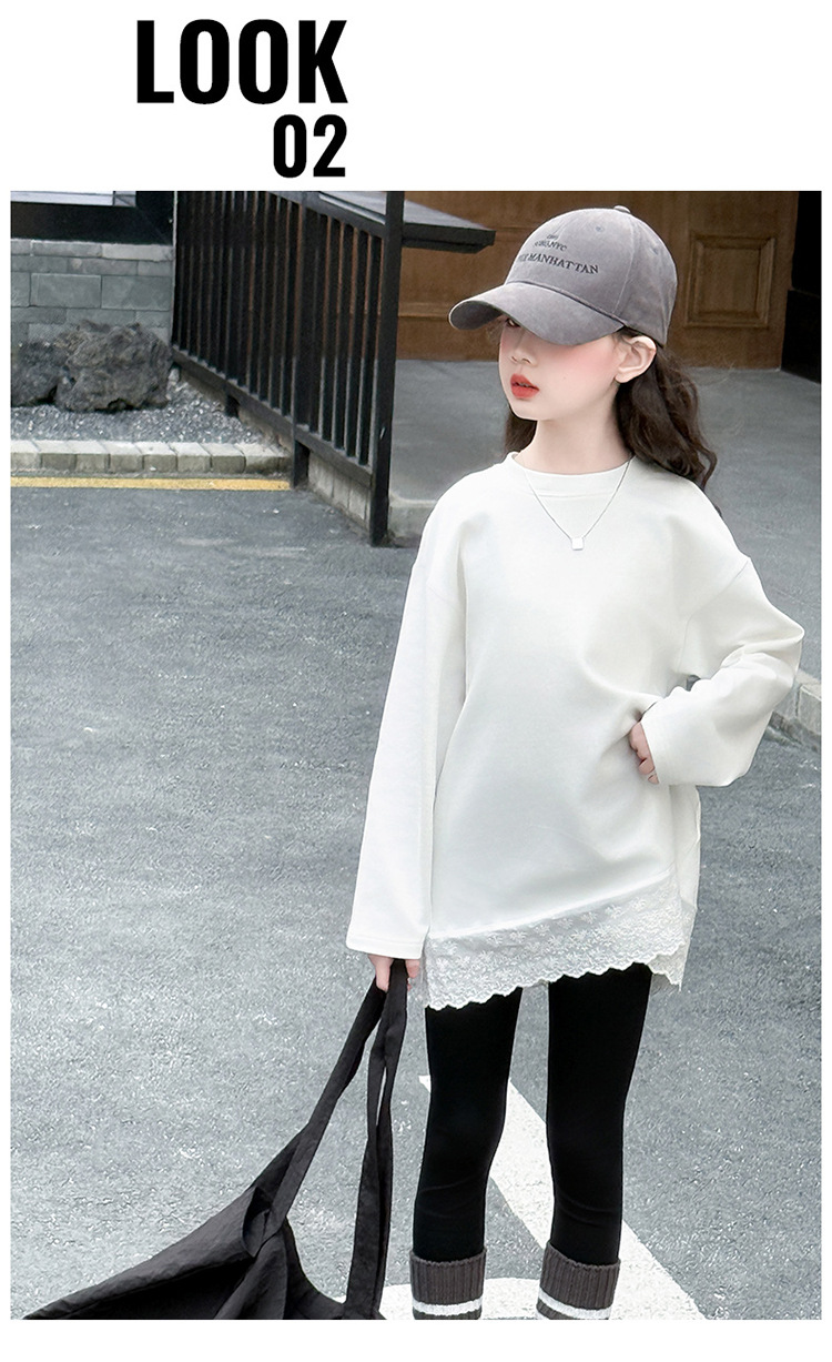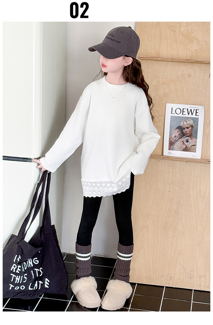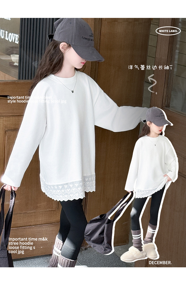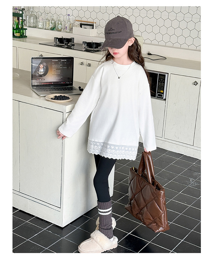 여자 봄, 가을 순수 코튼 바닥 셔츠 인터넷 연예인 레이스 티셔츠 여자 가을 흰색 중간 길이 스웨트 스커트스토어 가기