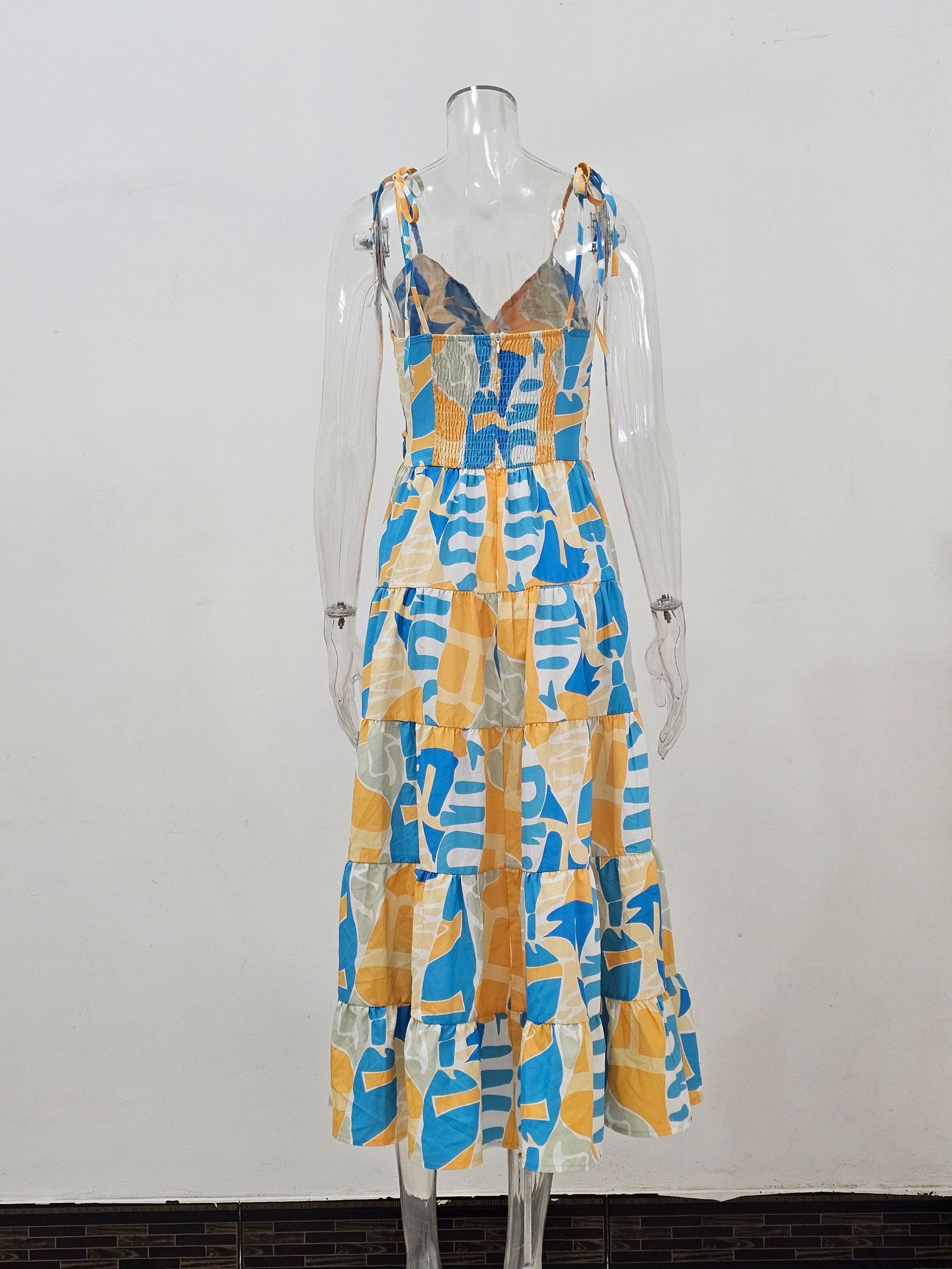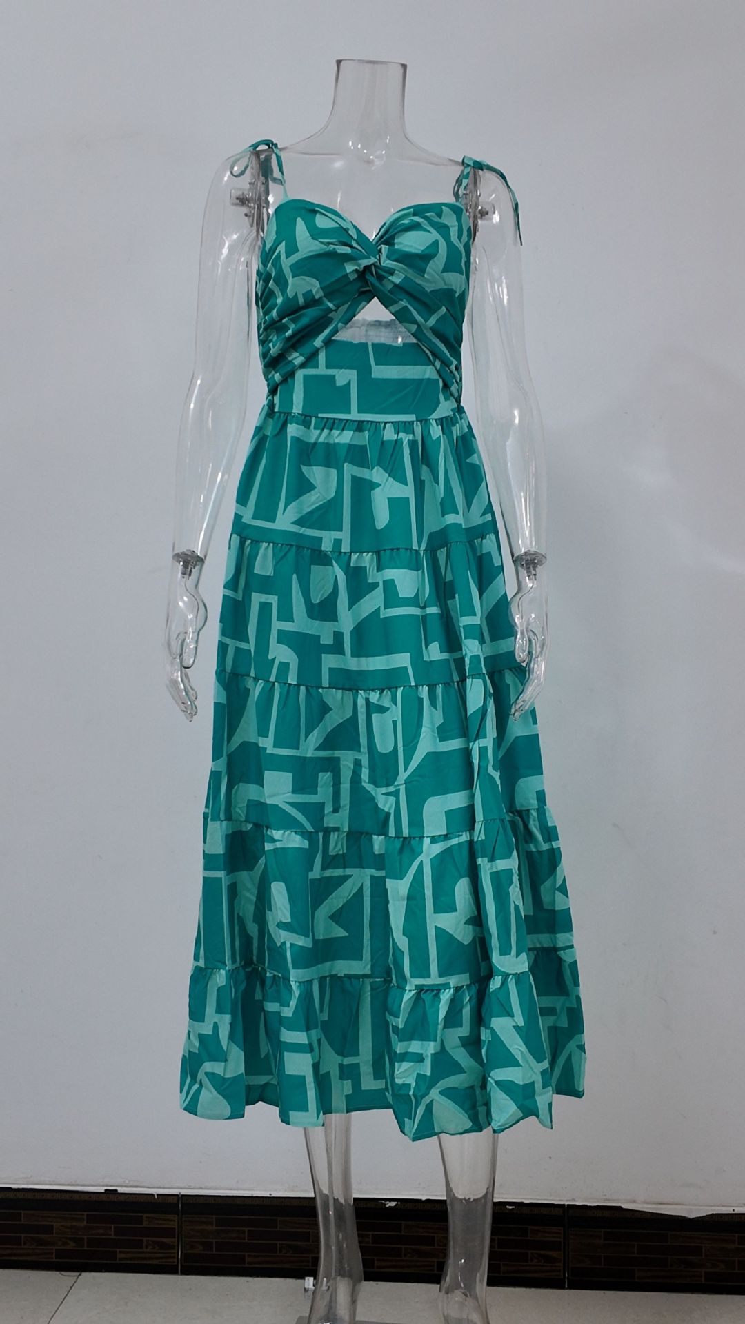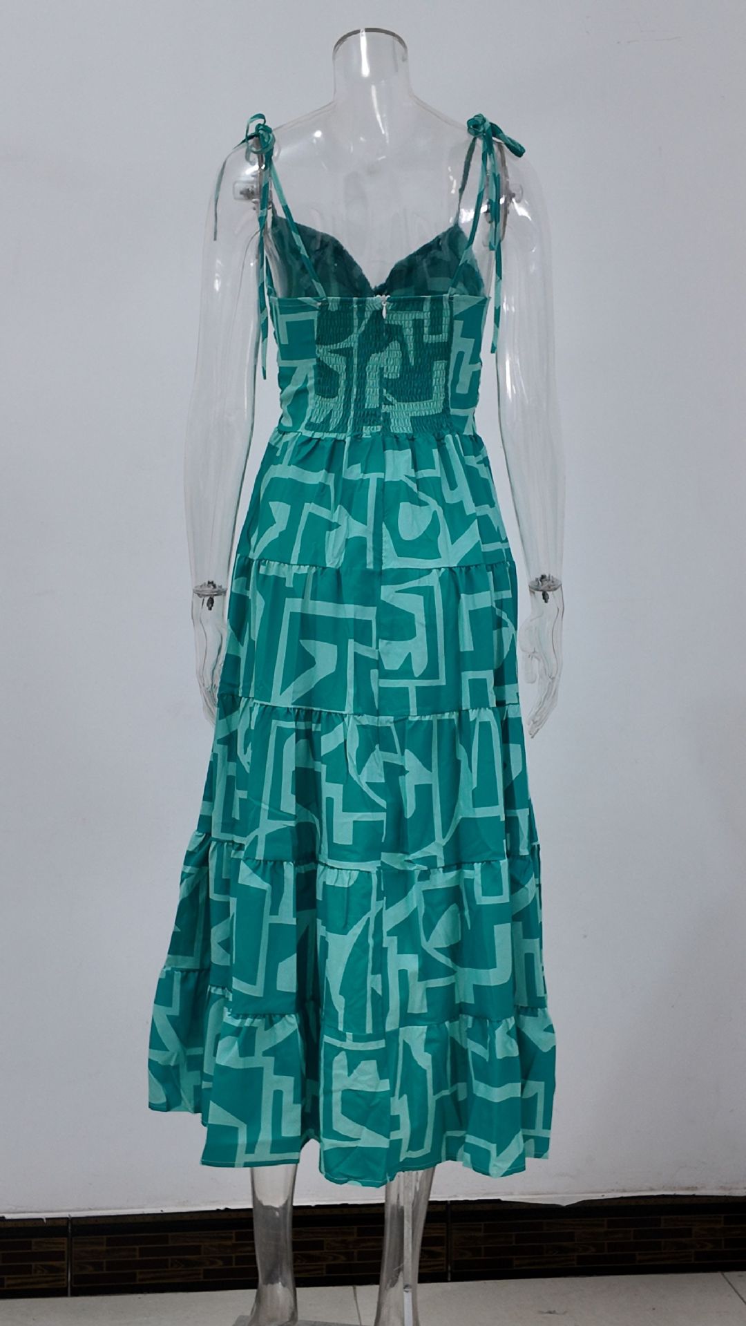 재고 2025 년 국경을 넘는 유럽과 미국 여성 의류 여름 아마존 해변 휴가 긴 원피스 섹시한 스파이스 슬링 원피스