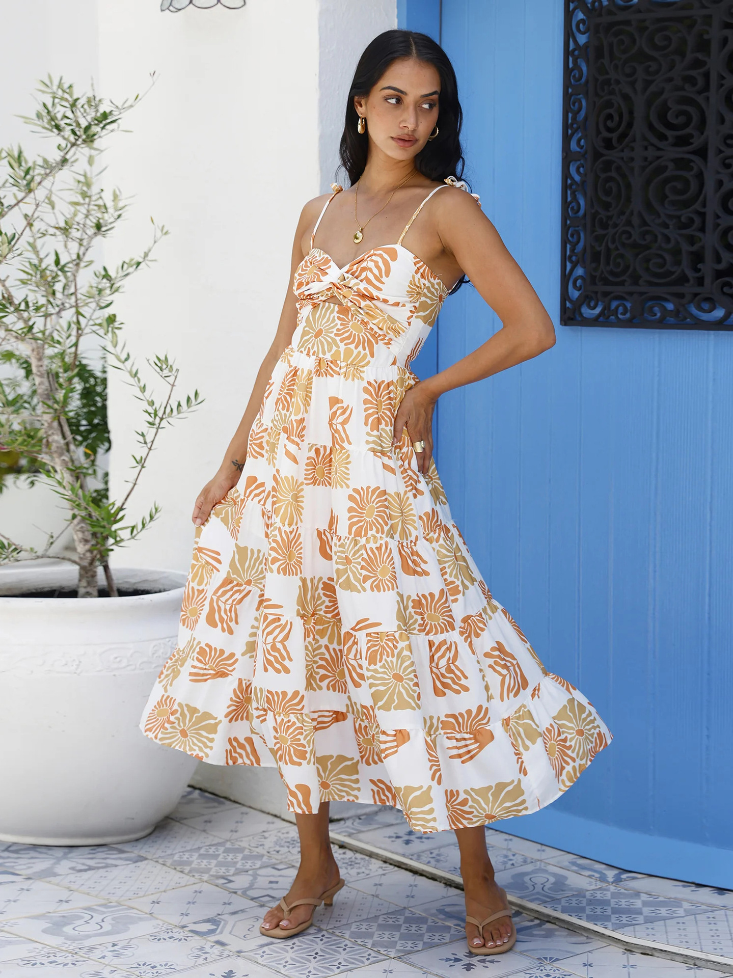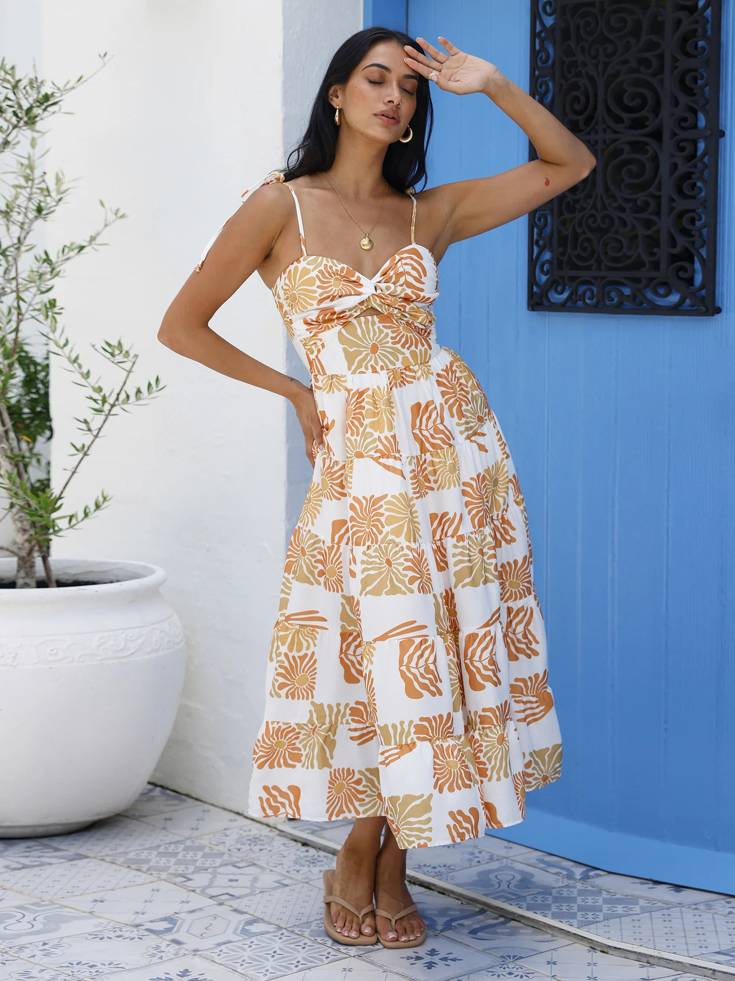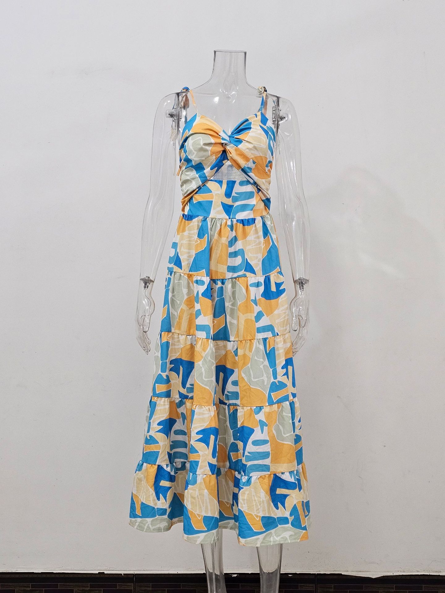 재고 2025 년 국경을 넘는 유럽과 미국 여성 의류 여름 아마존 해변 휴가 긴 원피스 섹시한 스파이스 슬링 원피스