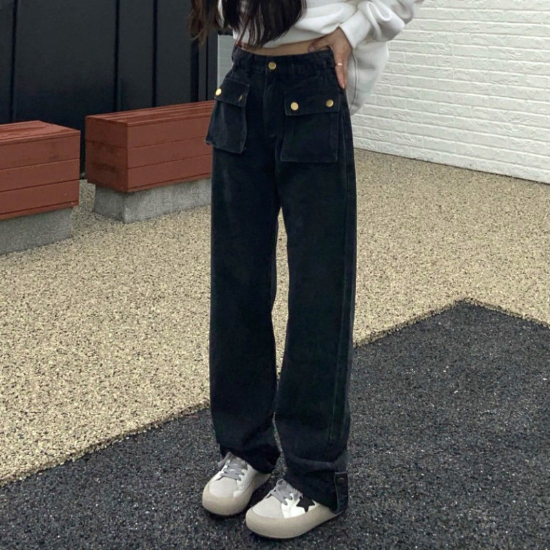 빅 포켓 입체 디자인 여성 하이웨이스트 청바지 2026 봄 신상 롱 팬츠 독특한 디자인스토어 가기