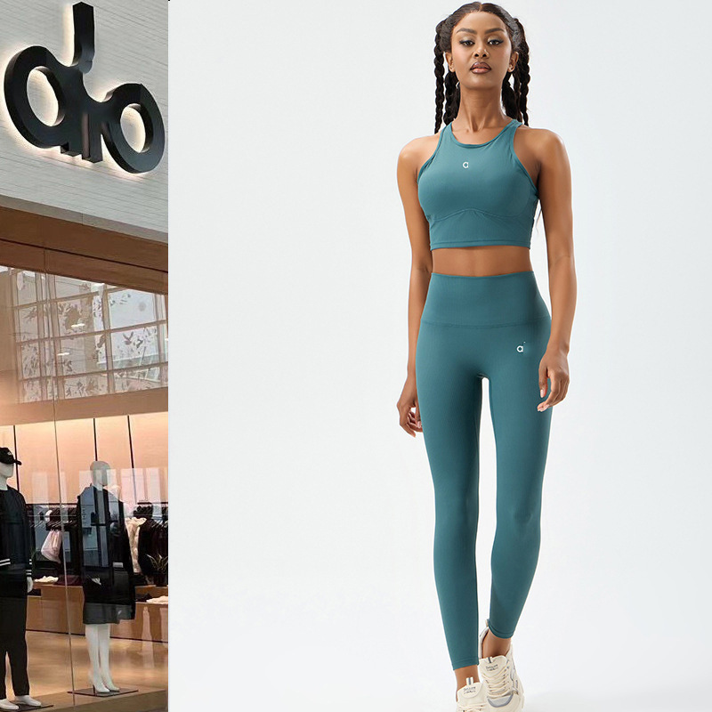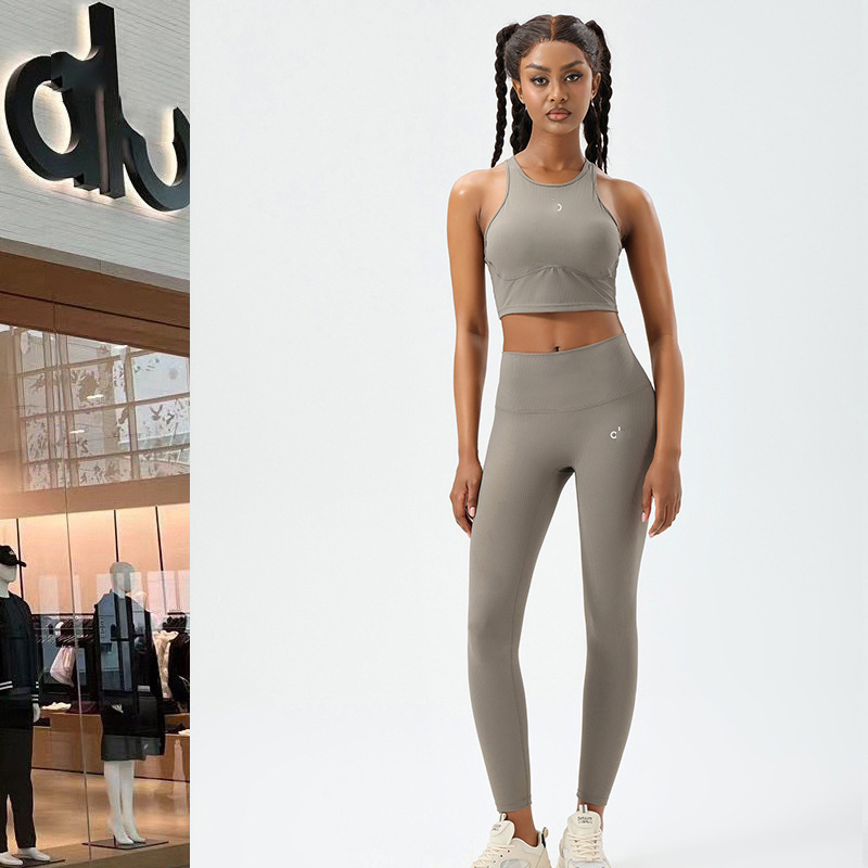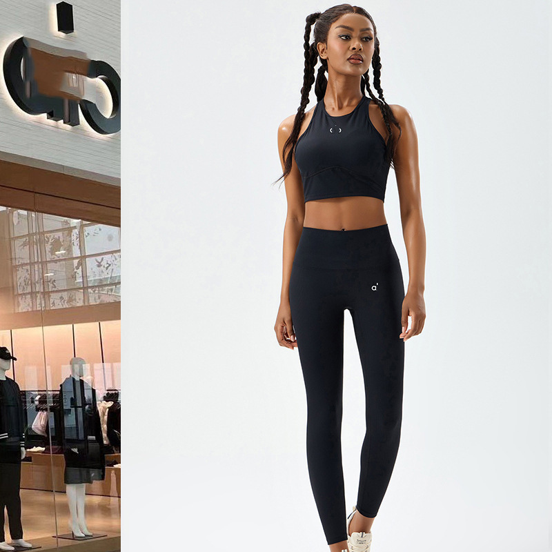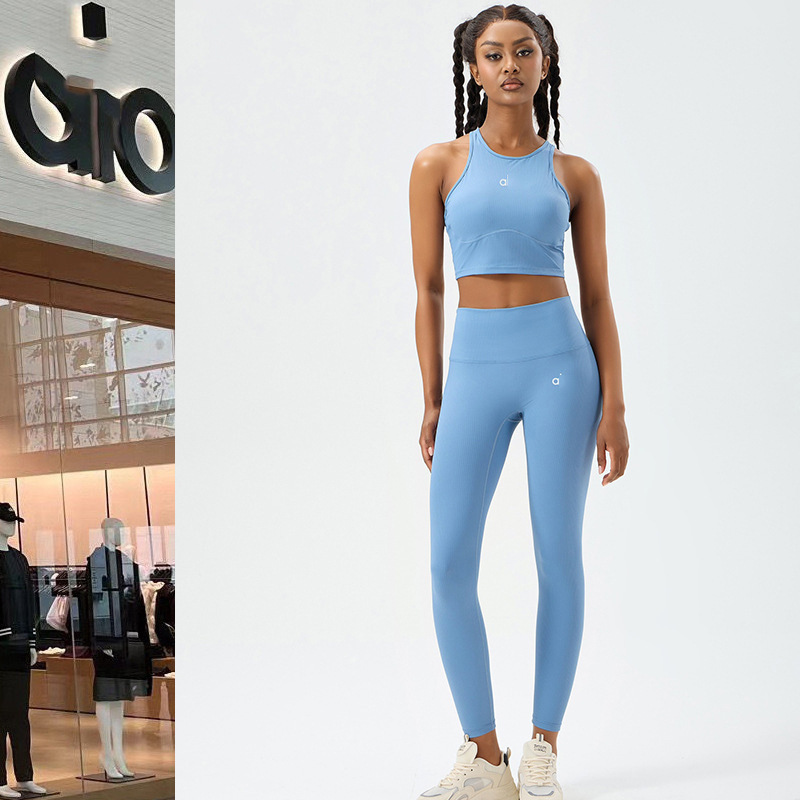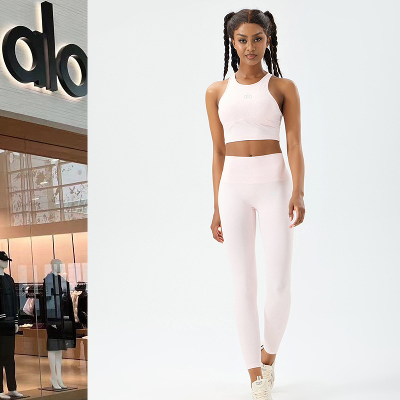 Allo 요가 의류 세트 스포츠 바지 여성용 고탄성 스레드 러닝 바지 필라테스 스포츠 조끼 허리 슬리밍