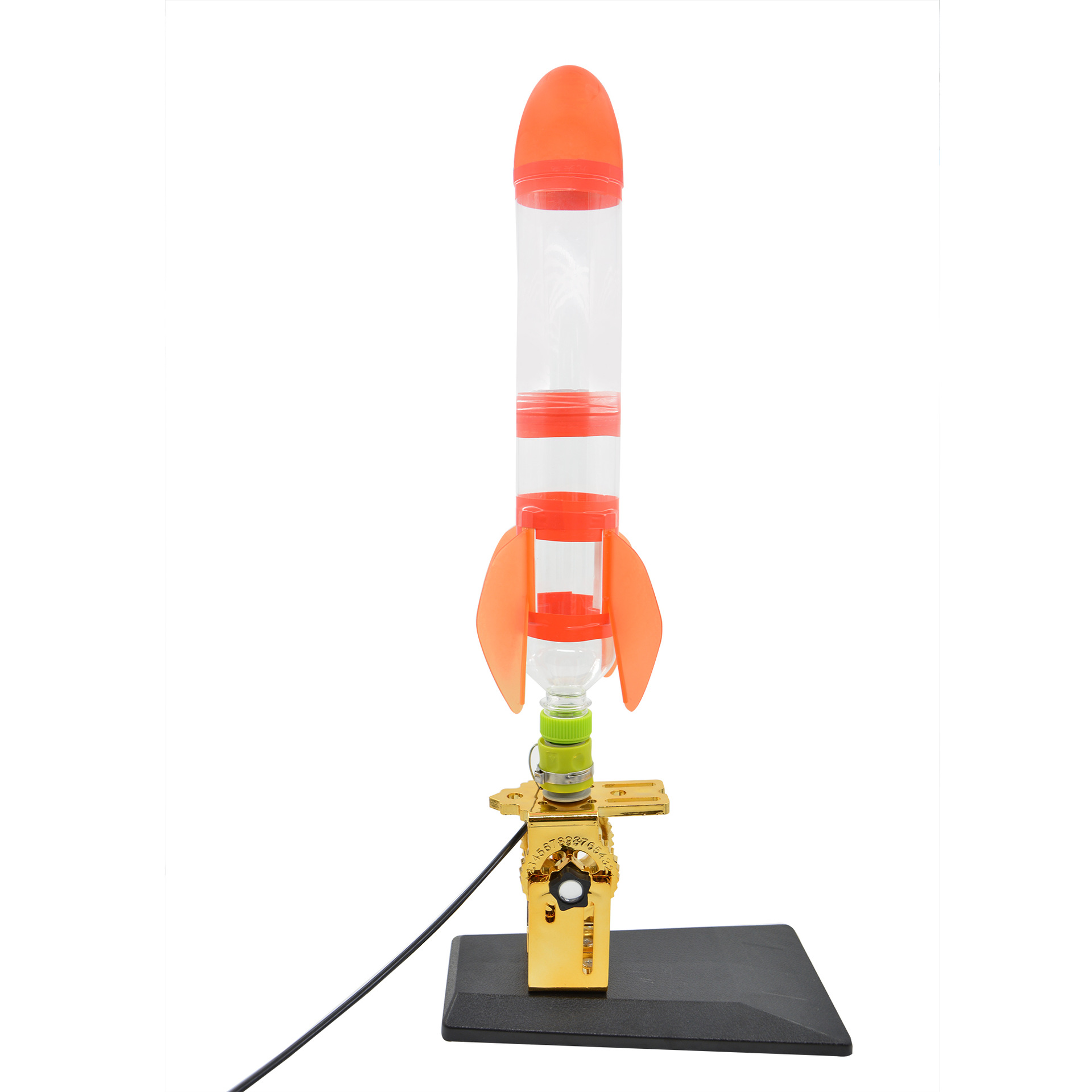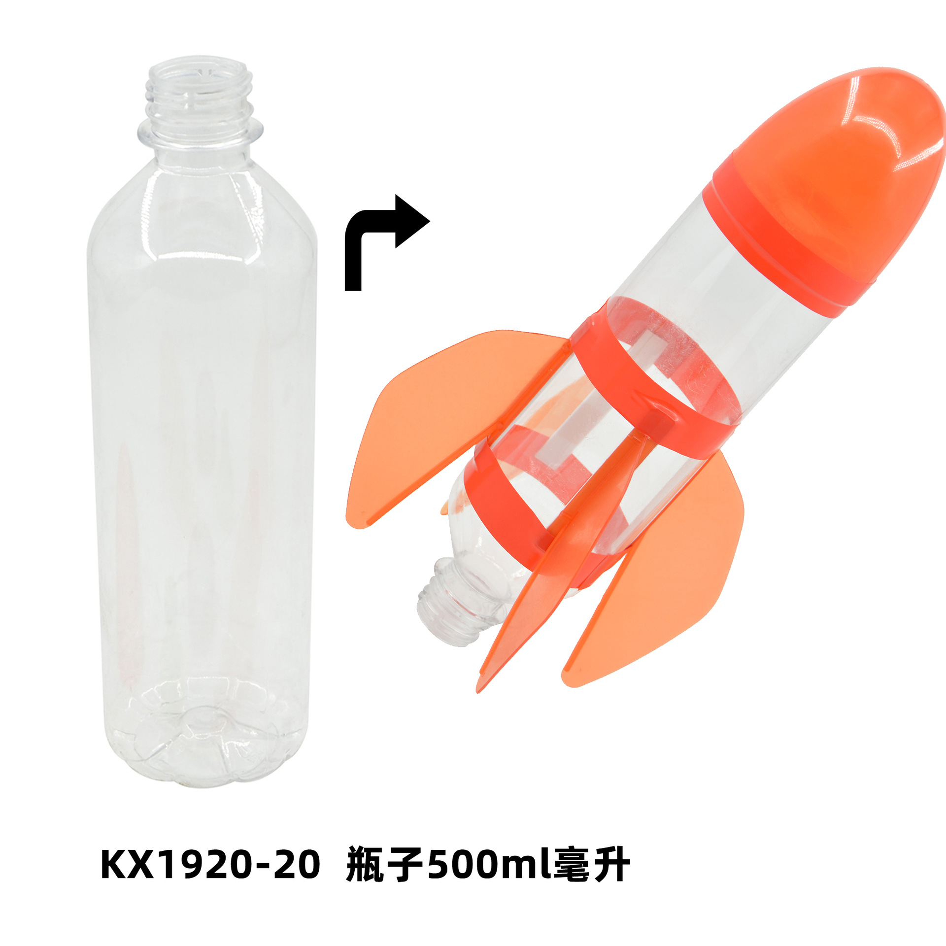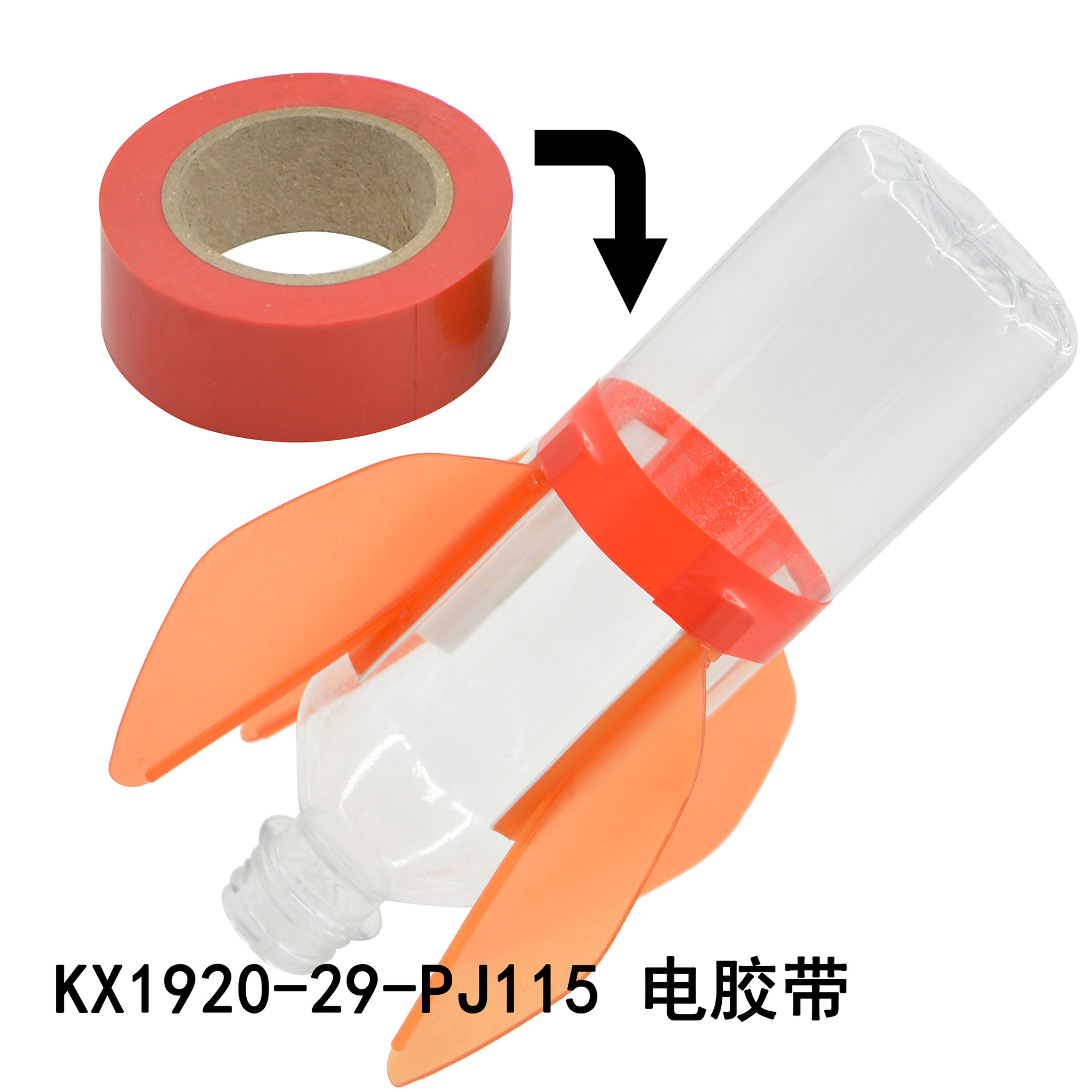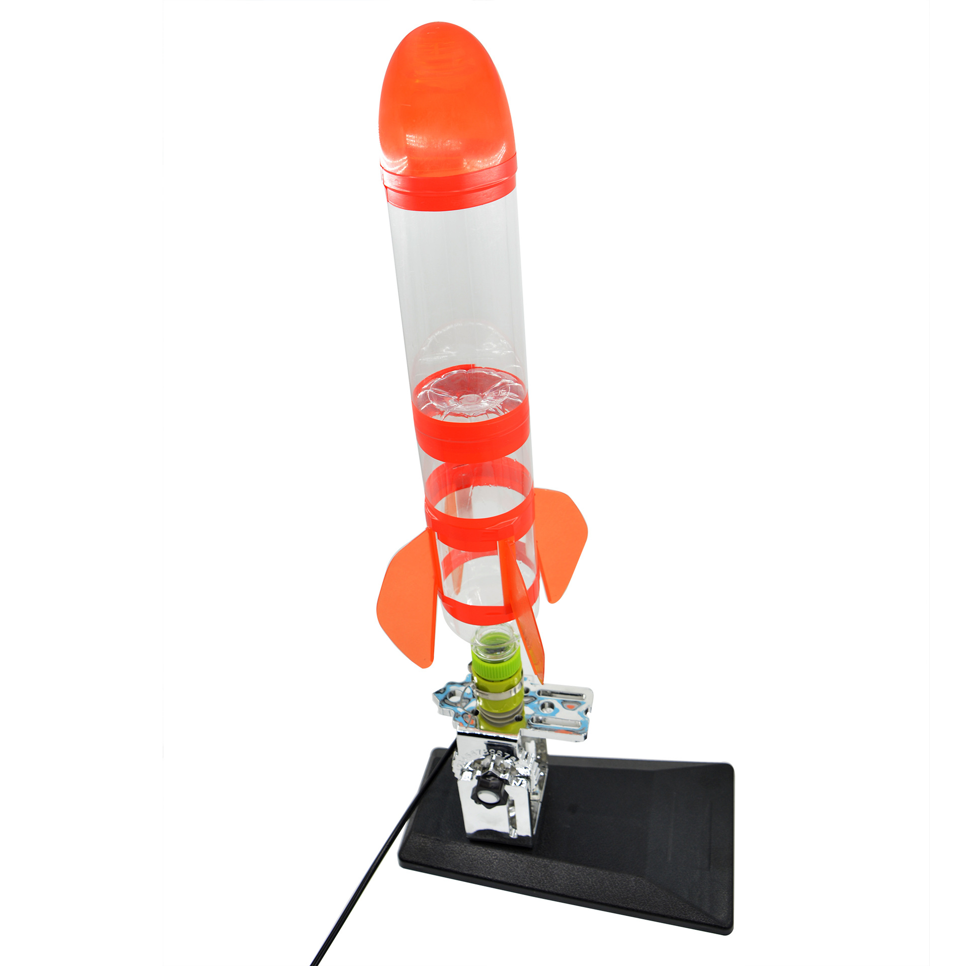 发射架、喷嘴、可口可乐瓶、头锥尾翼、自行车打气筒