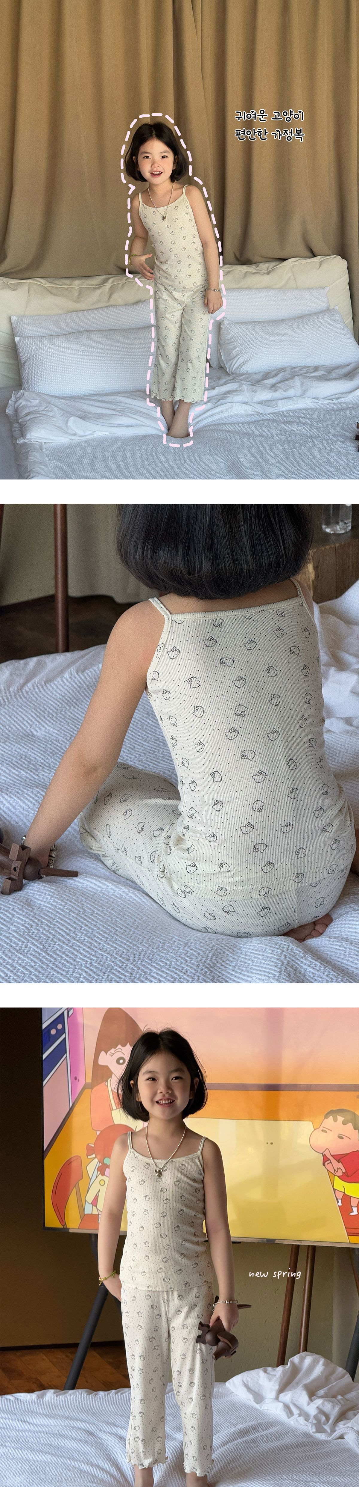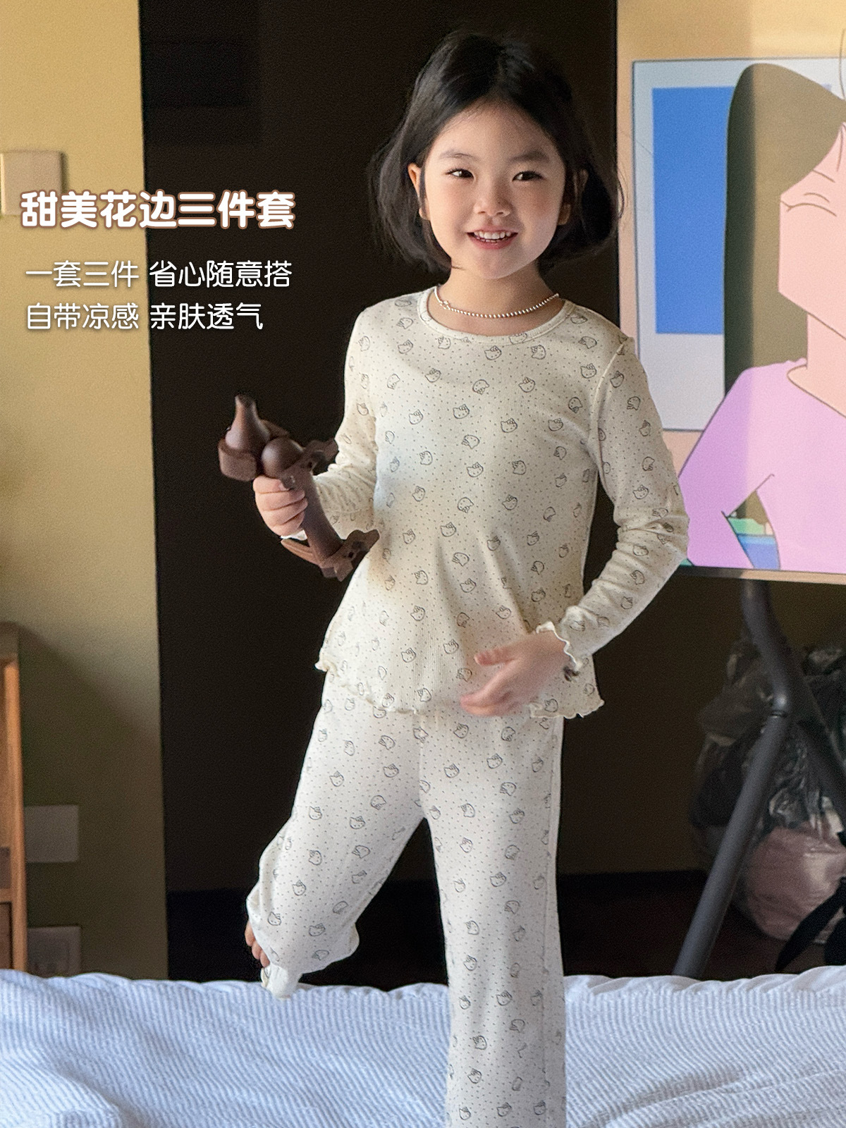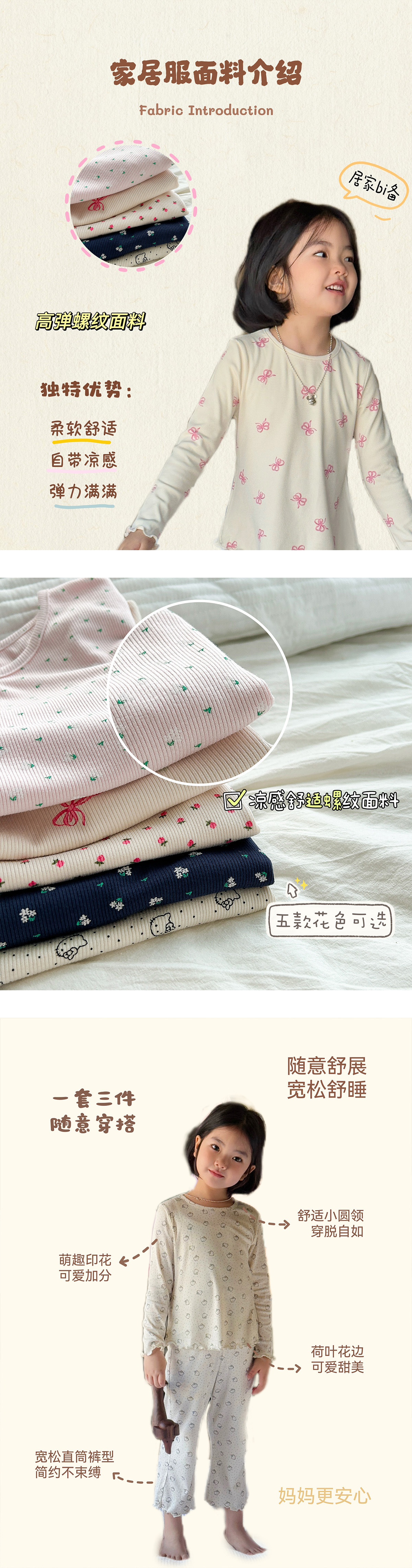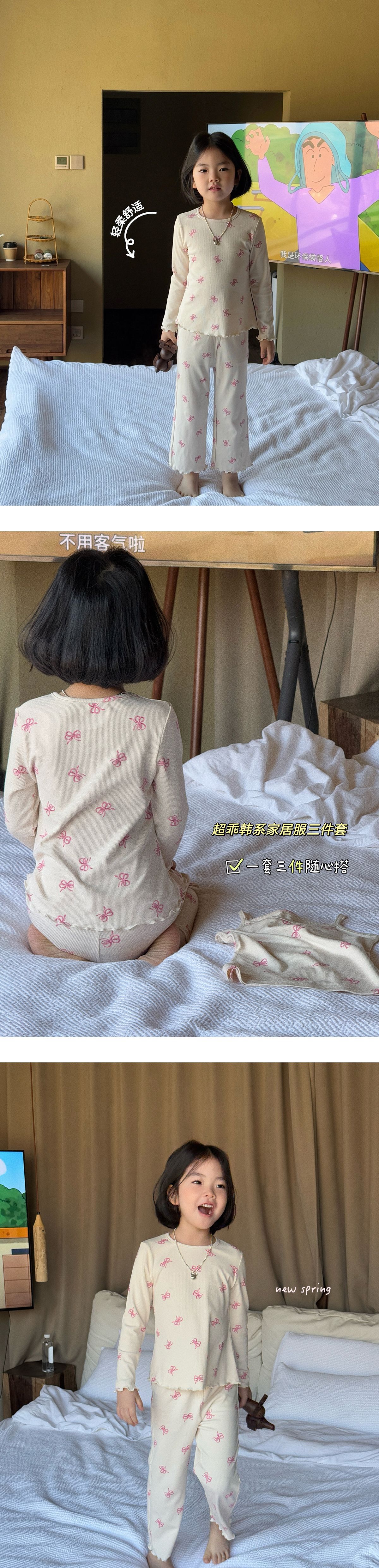 한국 가을 아동복 세트, 큰 아이들을 위한 잠옷, 여자 아기들을 위한 부드러운 가을옷과 가을바지, 세련된 3종 세트스토어 가기