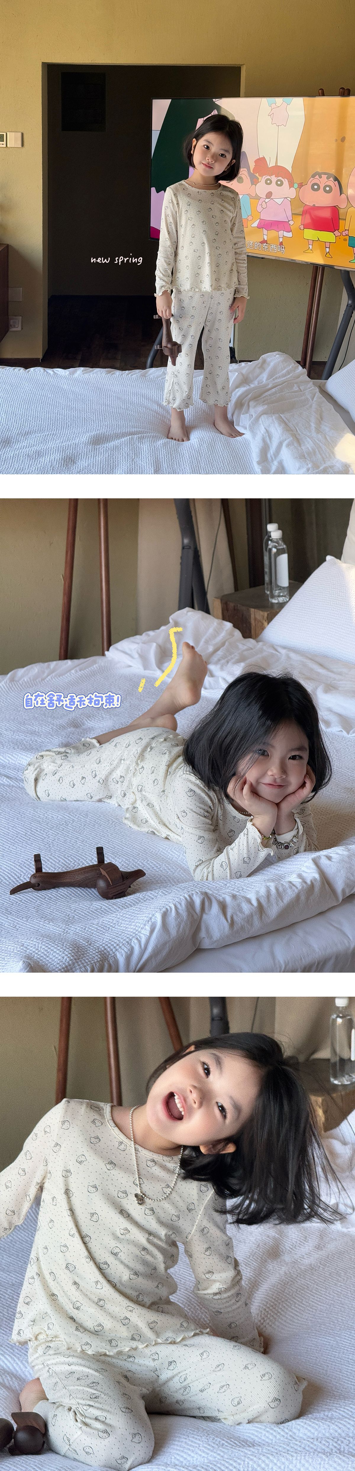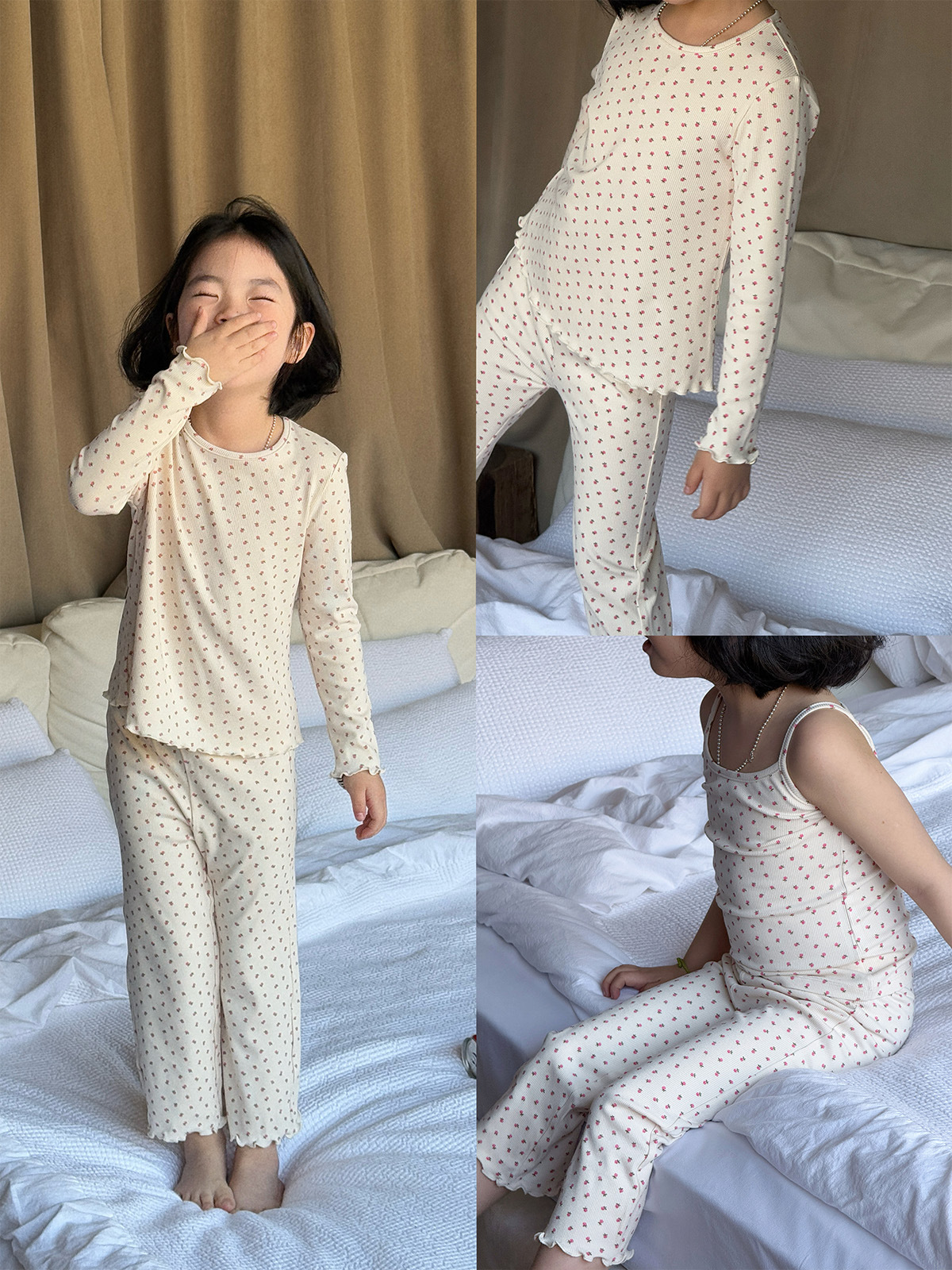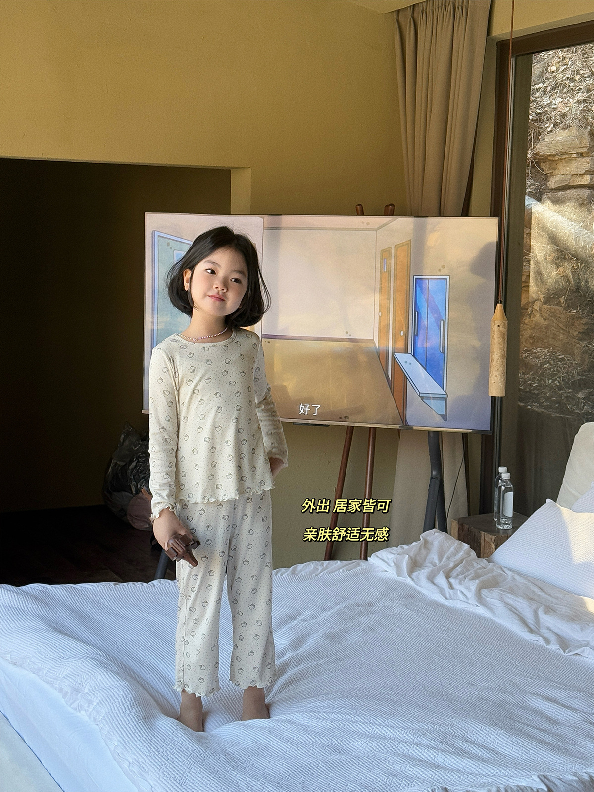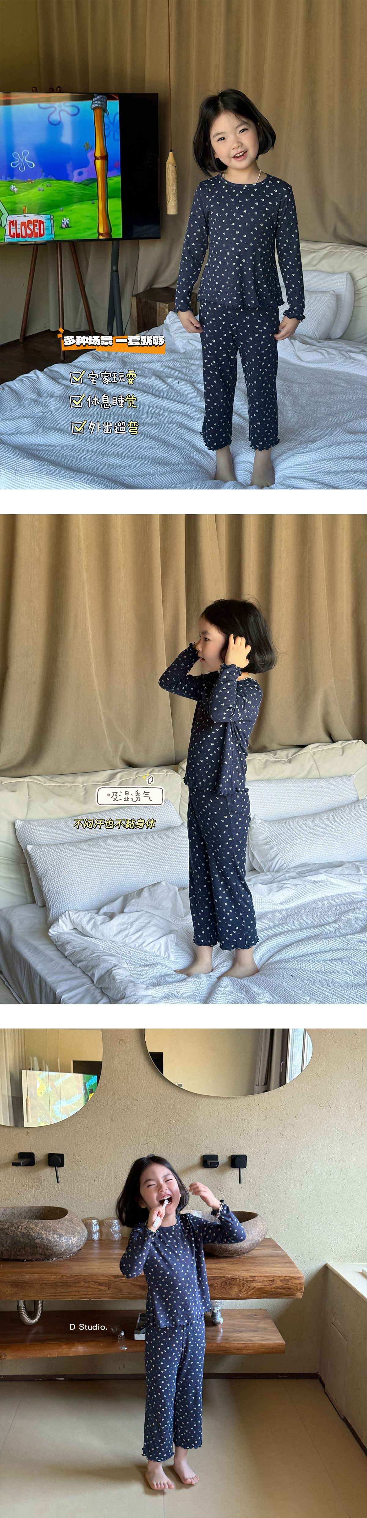 한국 가을 아동복 세트, 큰 아이들을 위한 잠옷, 여자 아기들을 위한 부드러운 가을옷과 가을바지, 세련된 3종 세트스토어 가기