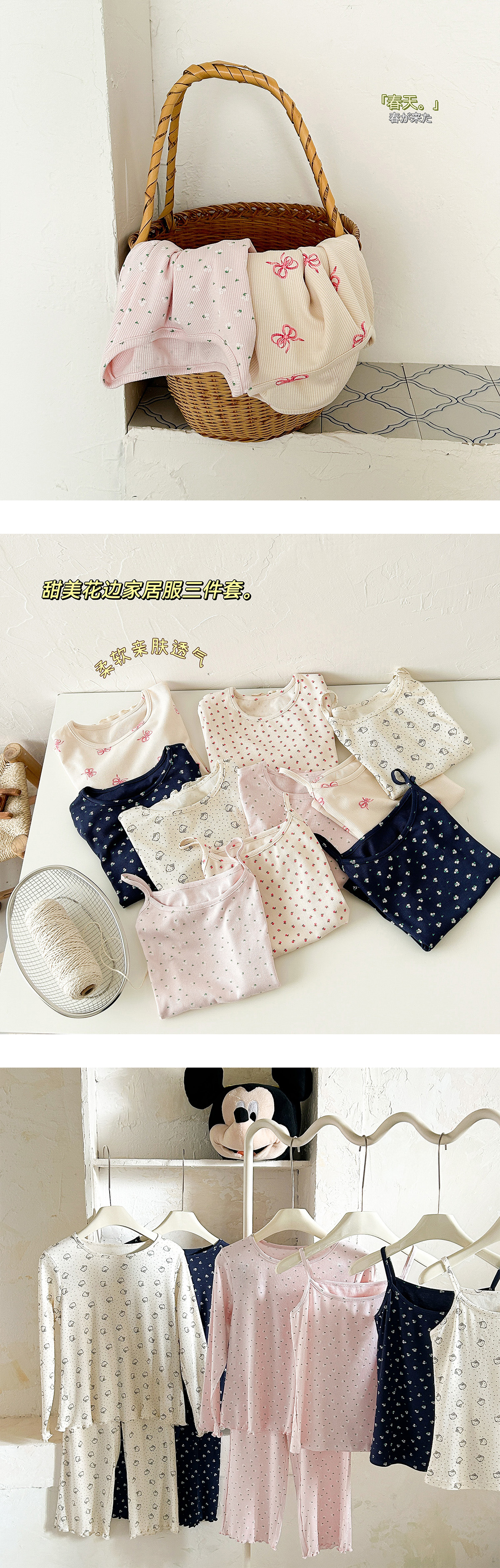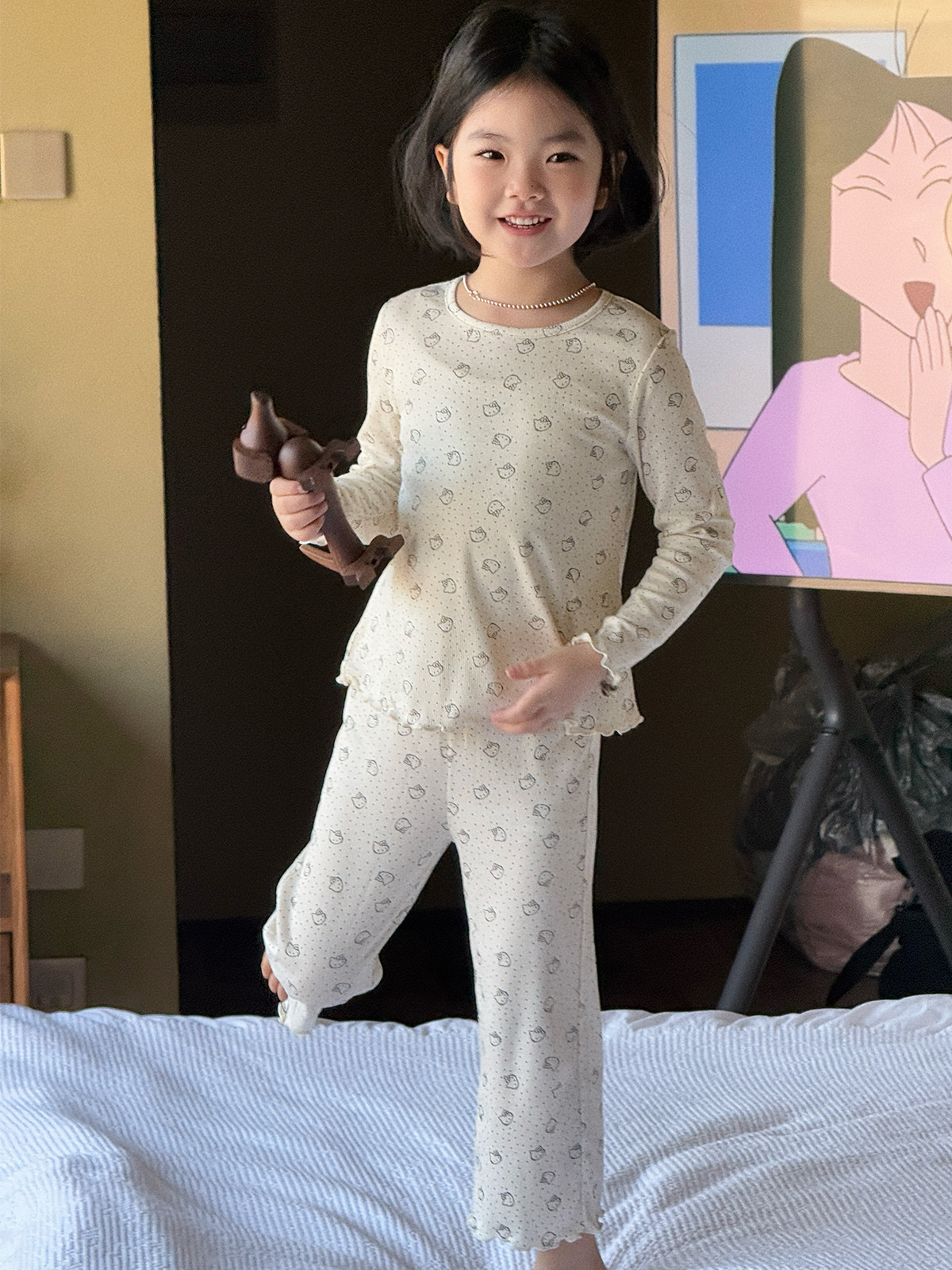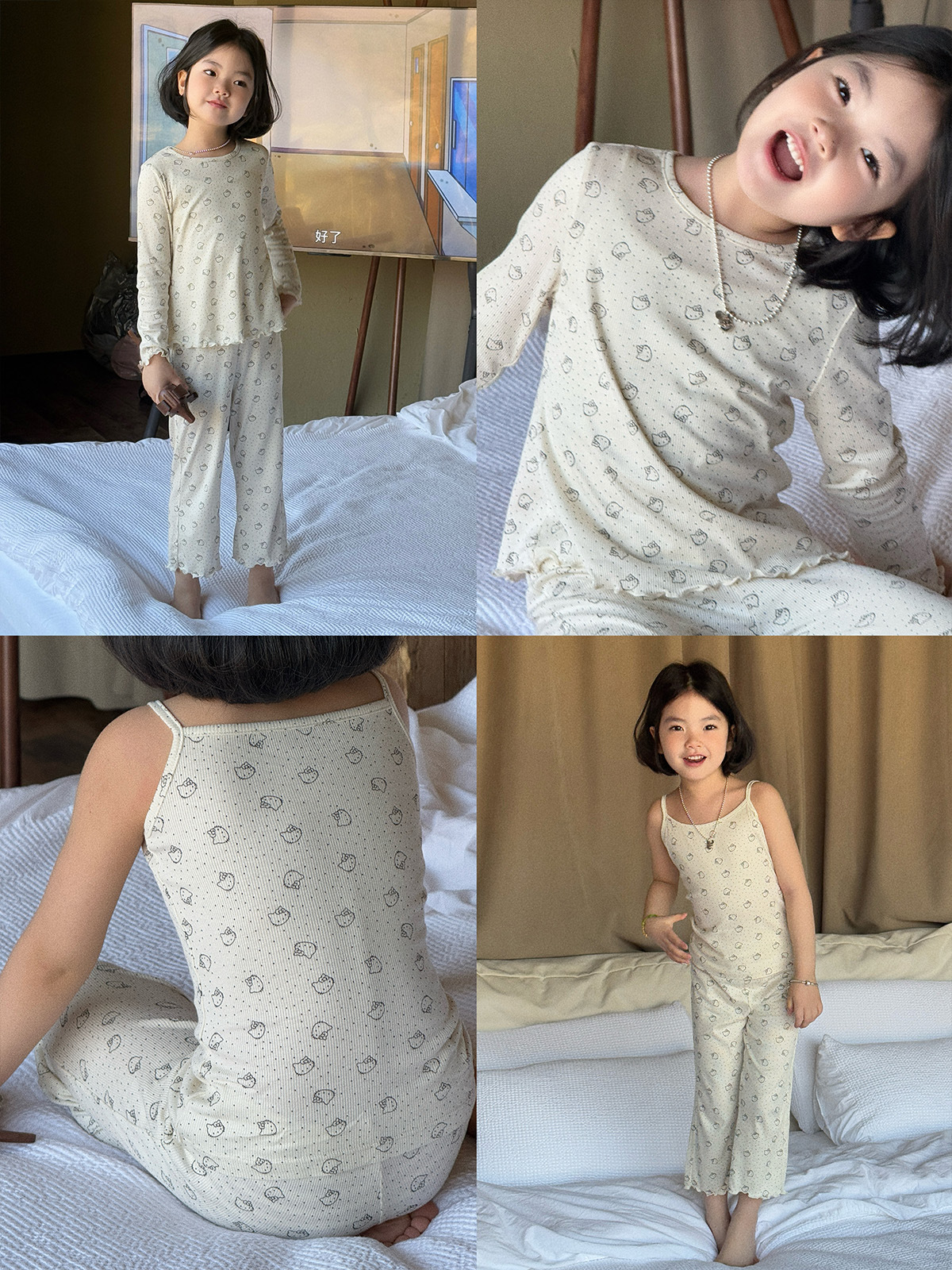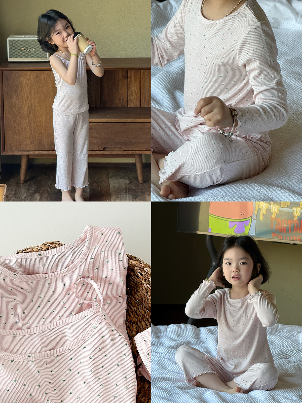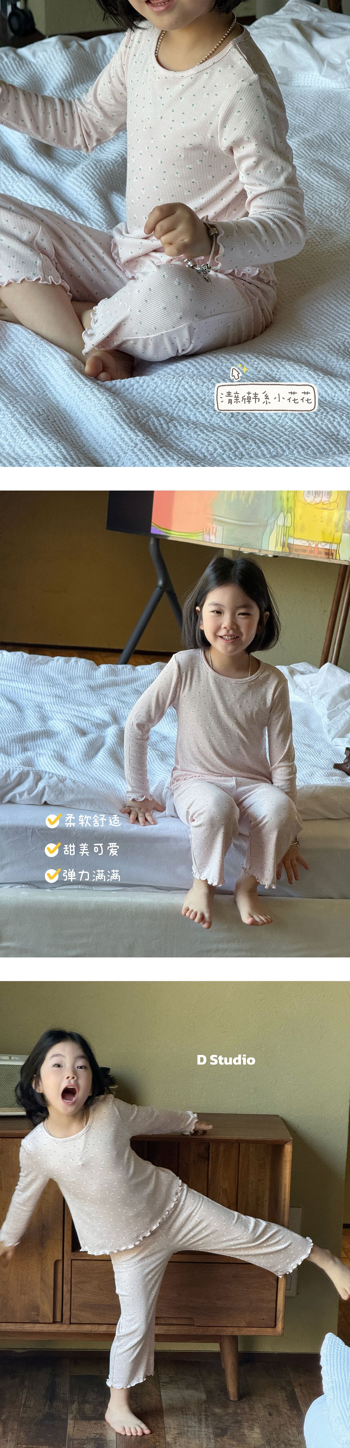 한국 가을 아동복 세트, 큰 아이들을 위한 잠옷, 여자 아기들을 위한 부드러운 가을옷과 가을바지, 세련된 3종 세트스토어 가기