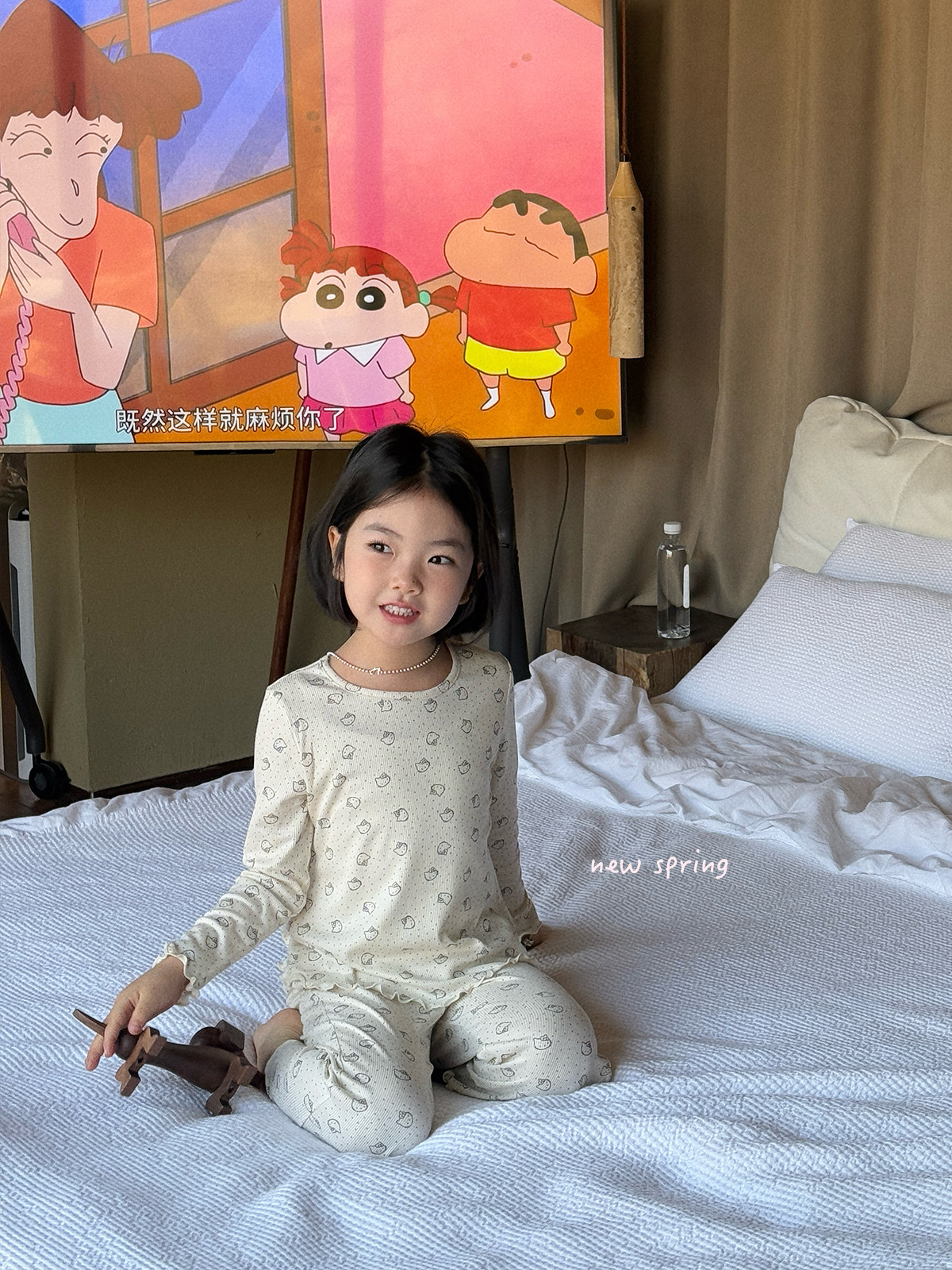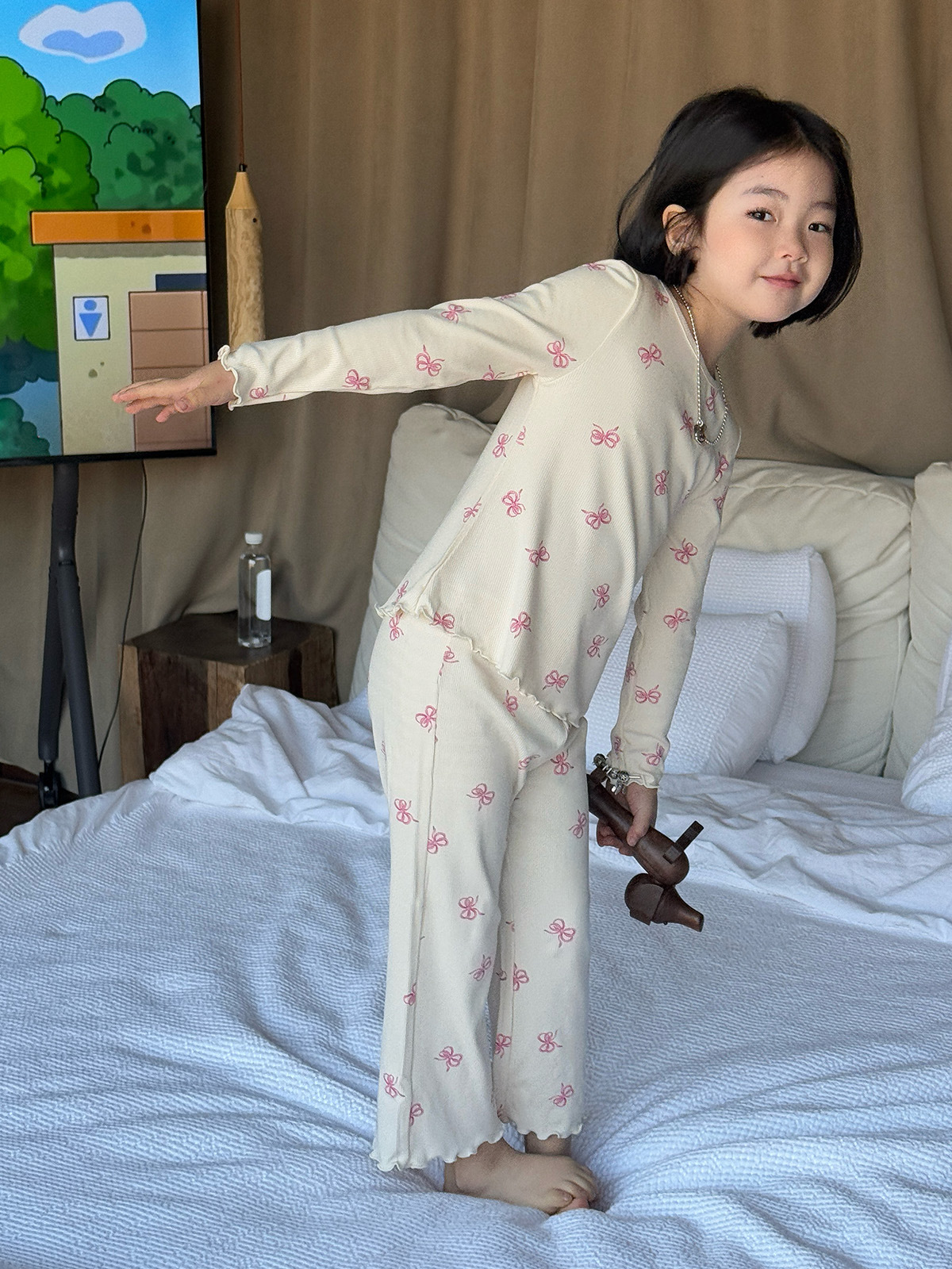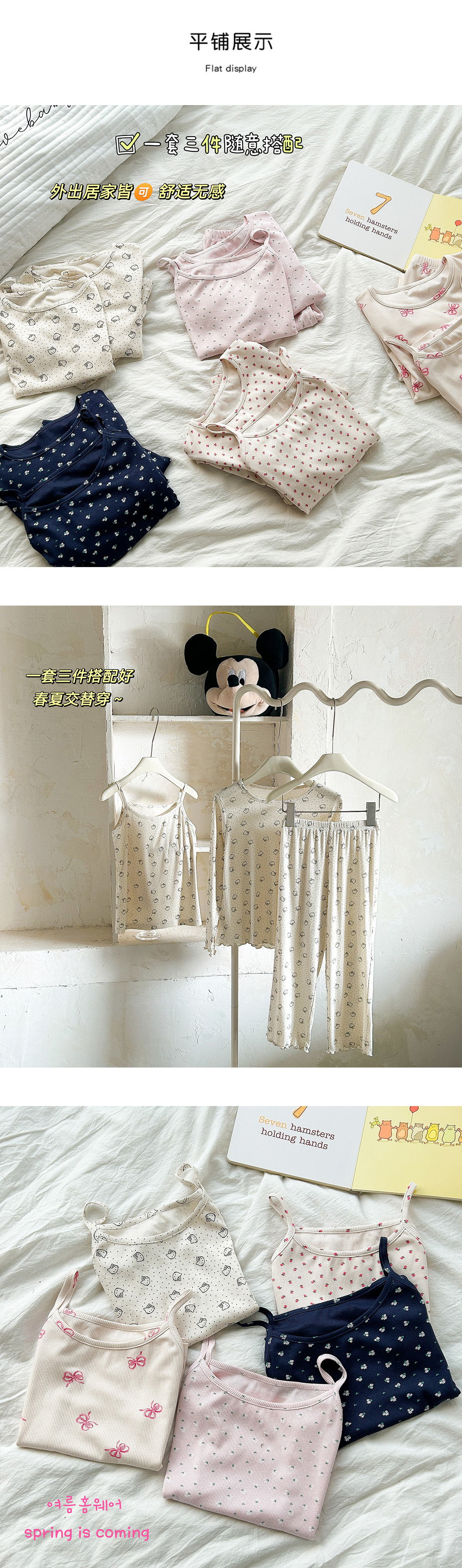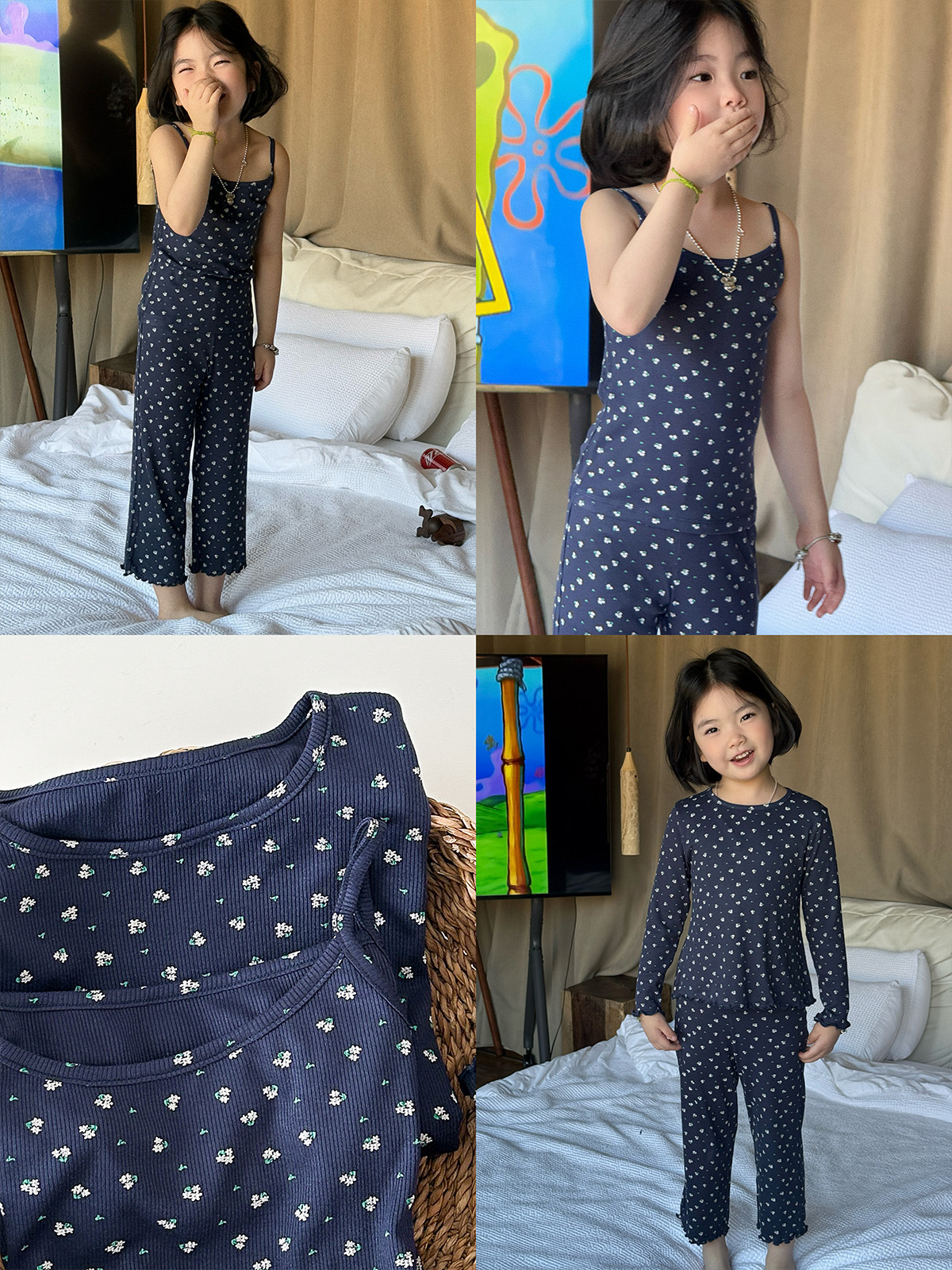 한국 가을 아동복 세트, 큰 아이들을 위한 잠옷, 여자 아기들을 위한 부드러운 가을옷과 가을바지, 세련된 3종 세트스토어 가기