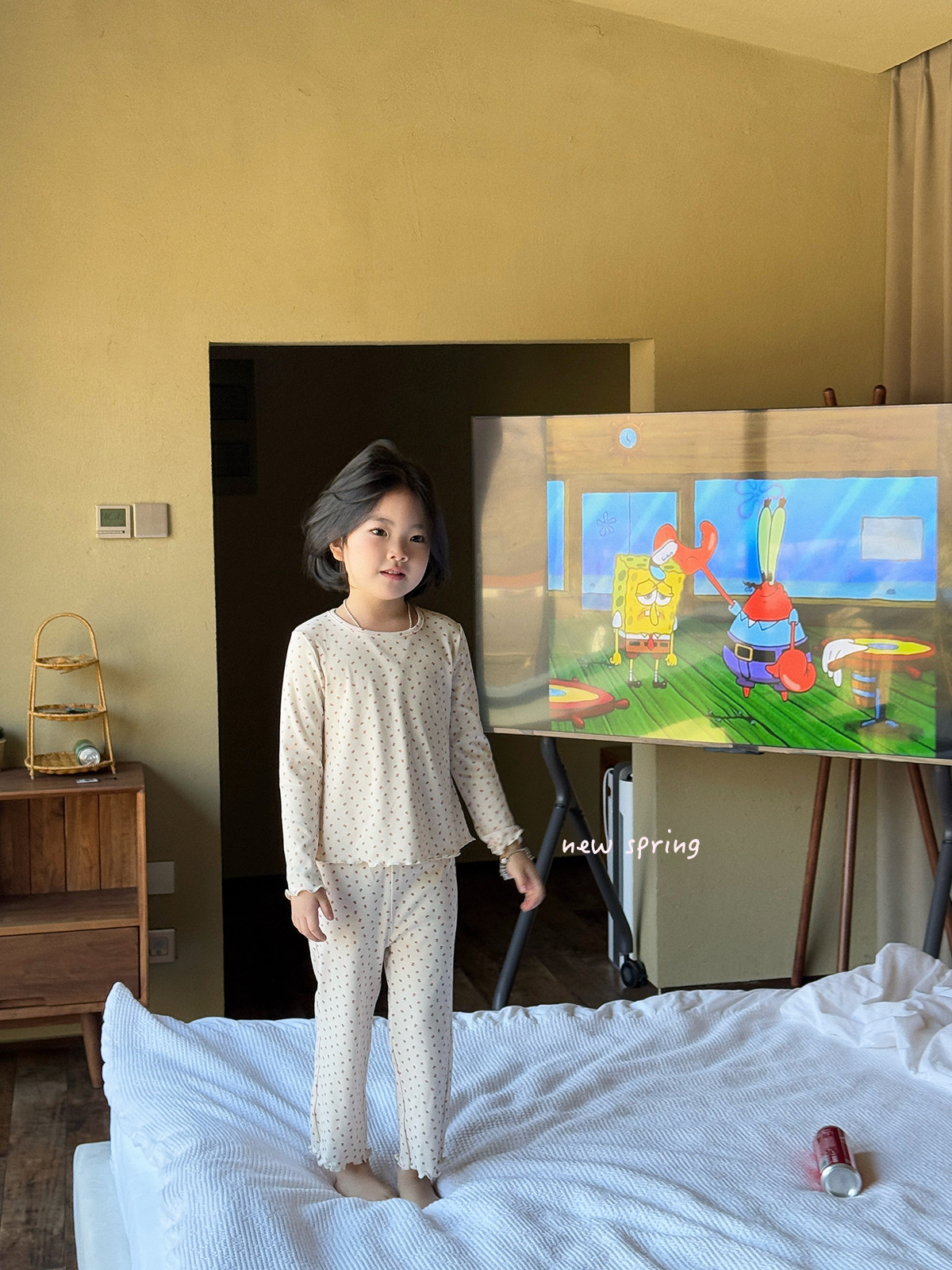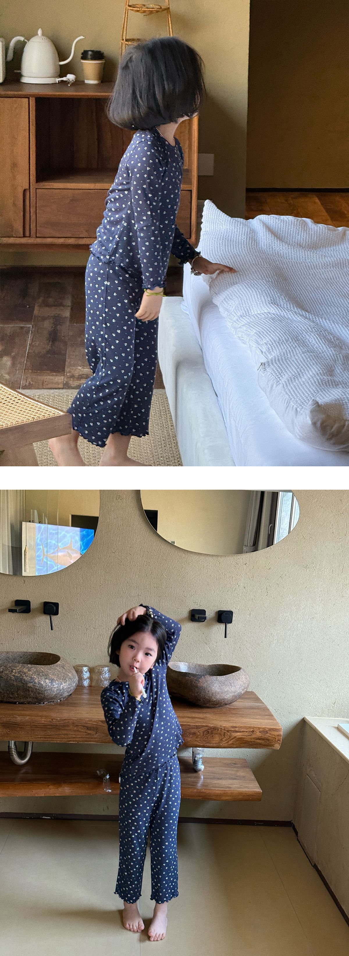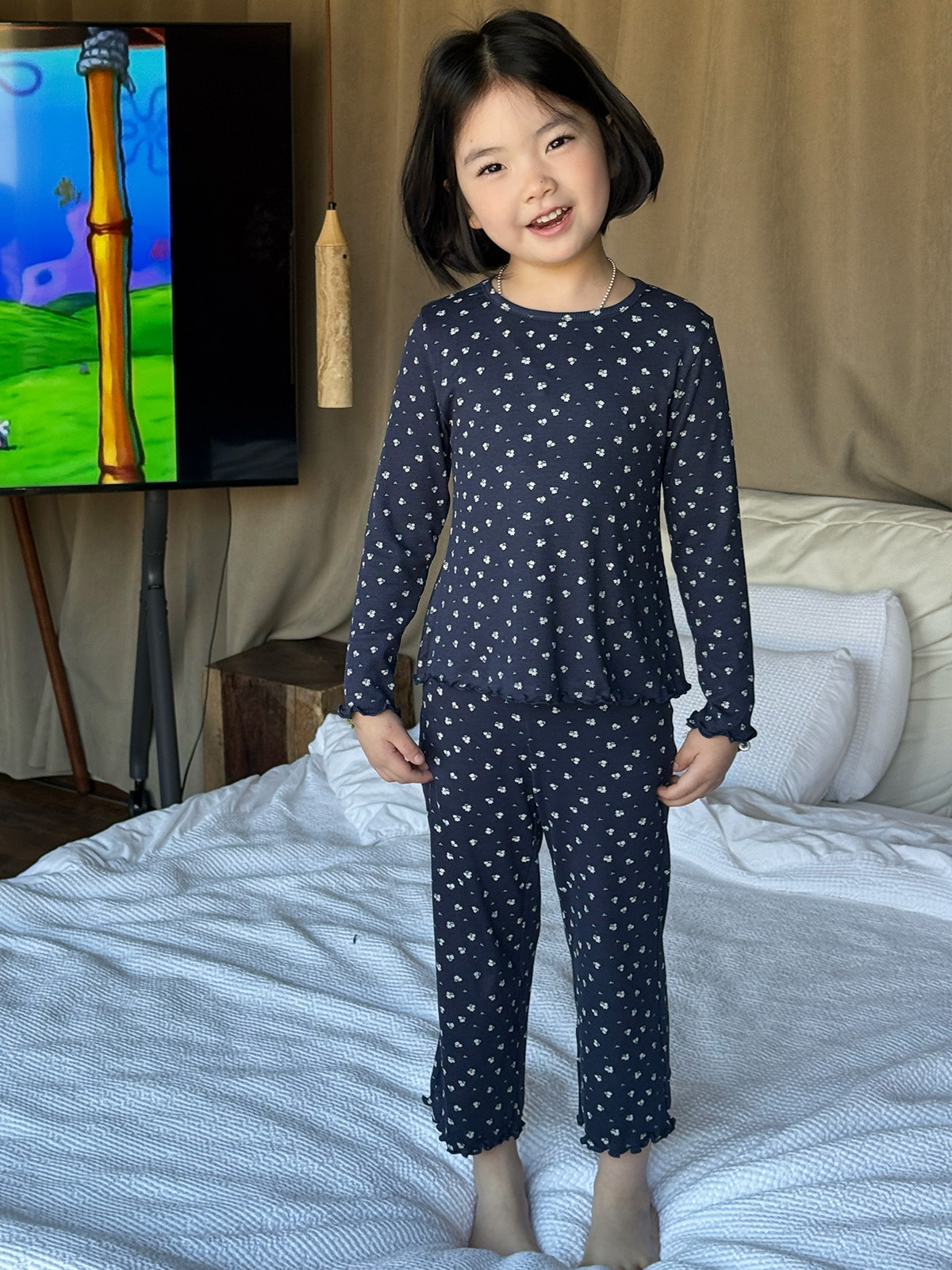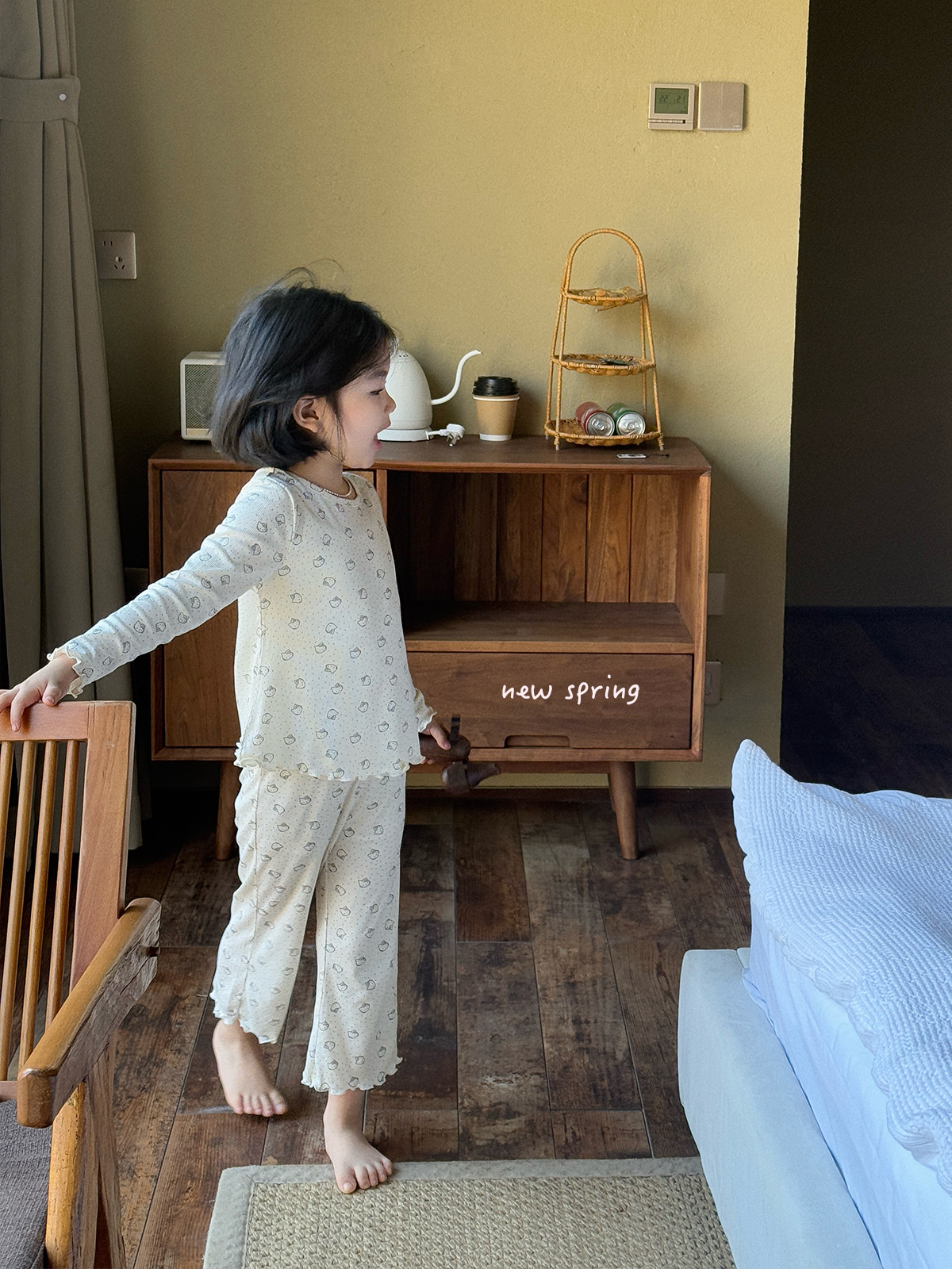 한국 가을 아동복 세트, 큰 아이들을 위한 잠옷, 여자 아기들을 위한 부드러운 가을옷과 가을바지, 세련된 3종 세트스토어 가기