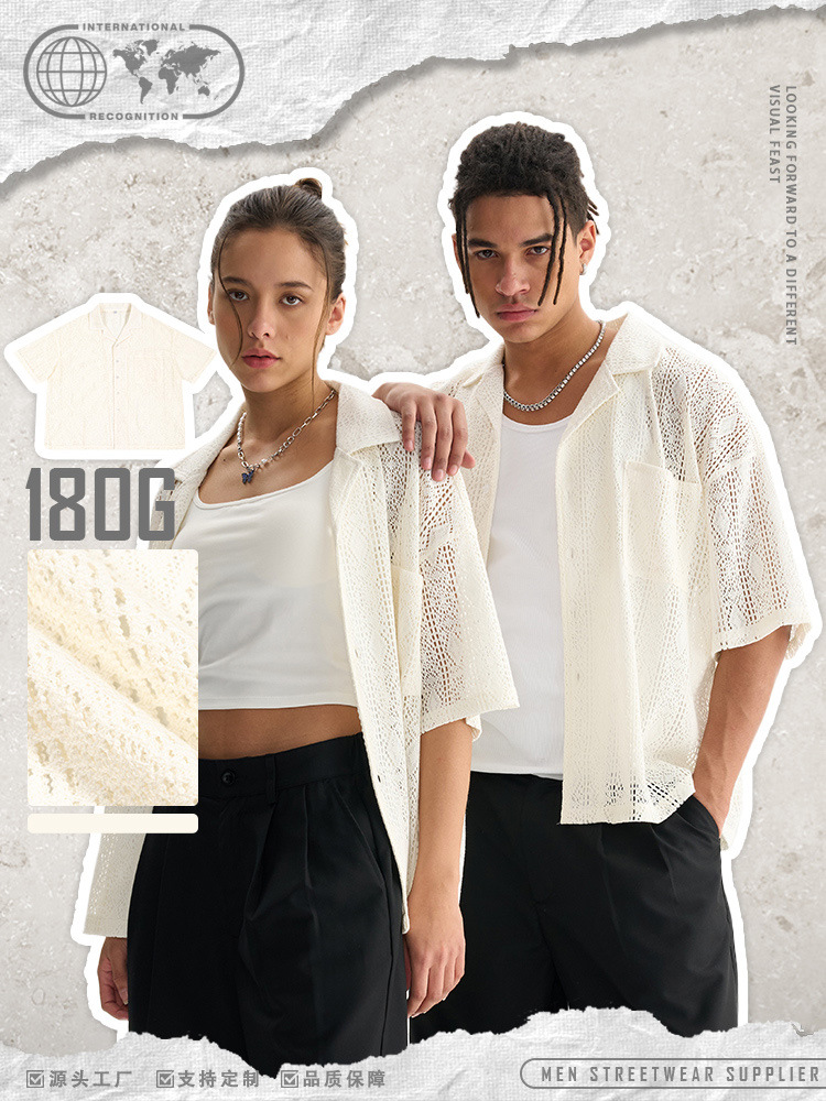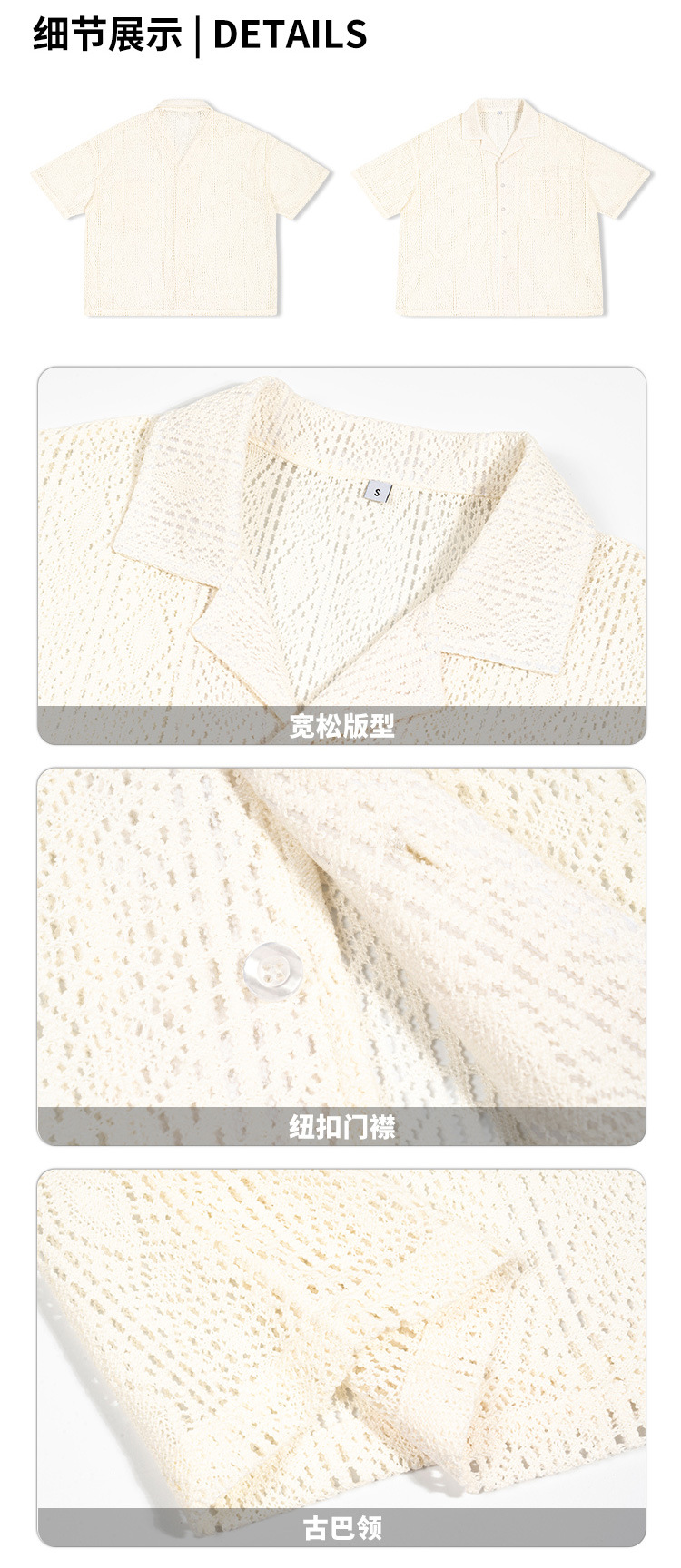 ETAI 남성 | 패션 할로우 메쉬 크로 셰 뜨개질 셔츠 여름 캐주얼 시스루 레이스 셔츠