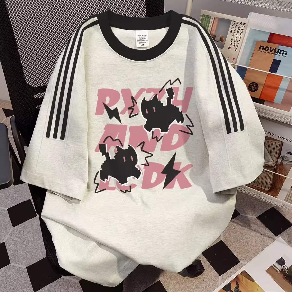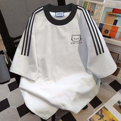 반팔 남성 유행 브랜드 여름 느슨한 5 점 소매 2025 3 바 새로운 인터넷 트렌디 티셔츠스토어 가기