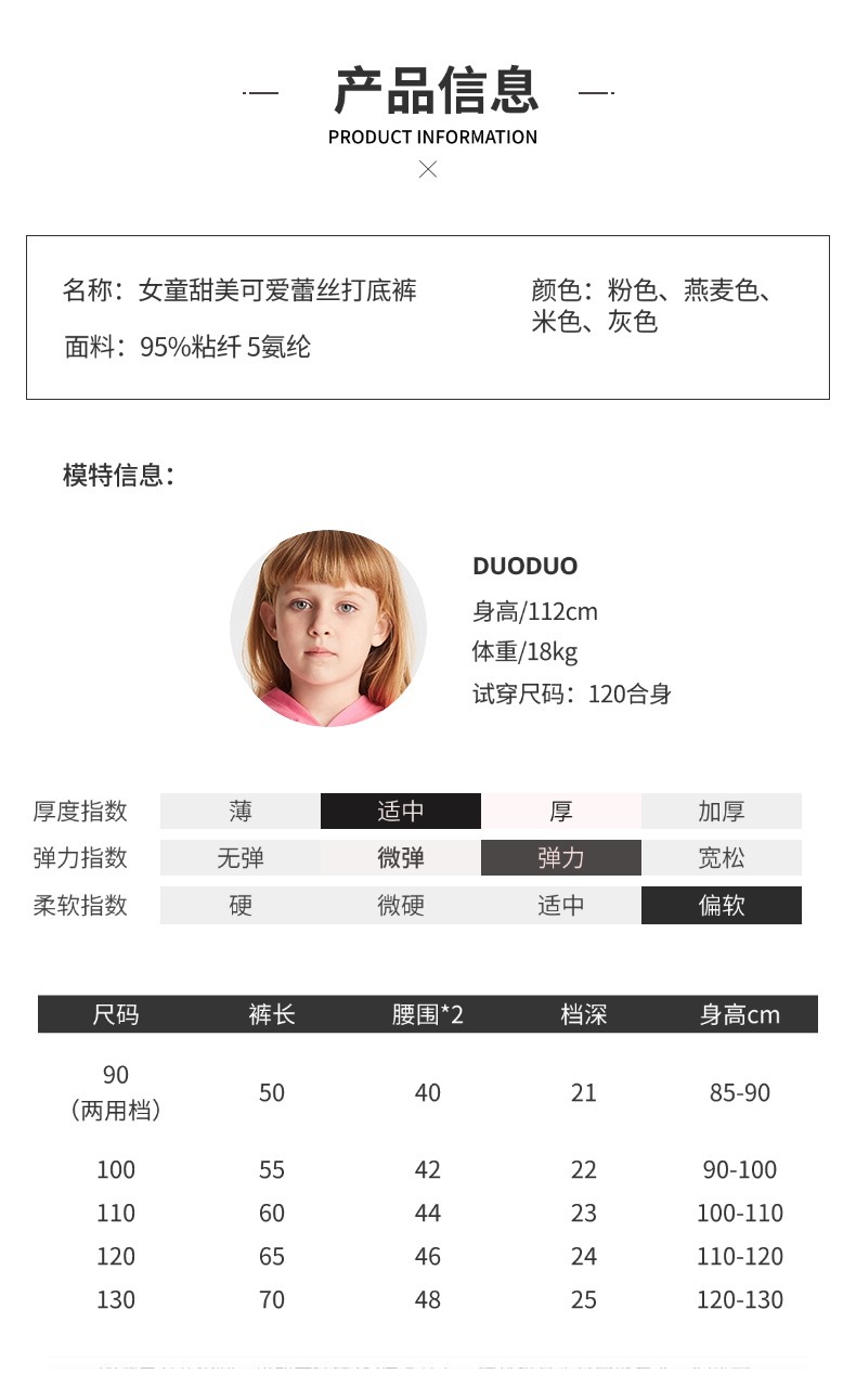 여아 레깅스 A형 2025 봄 신상 베이비 달콤하고 귀여운 만능 레깅스 (레이스 발목)