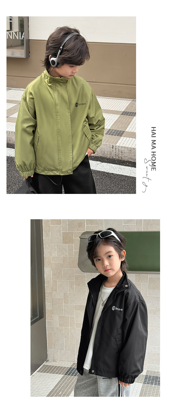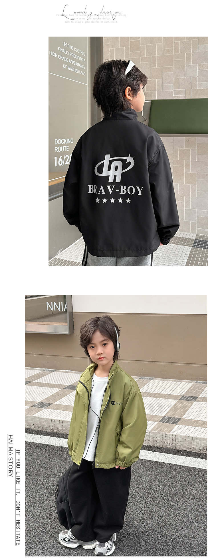 Haima의 2025 년 봄과 가을 새로운 어린이 옷 소년 유행 재킷 한국식 서양식 봄 코트 빅 보이스토어 가기