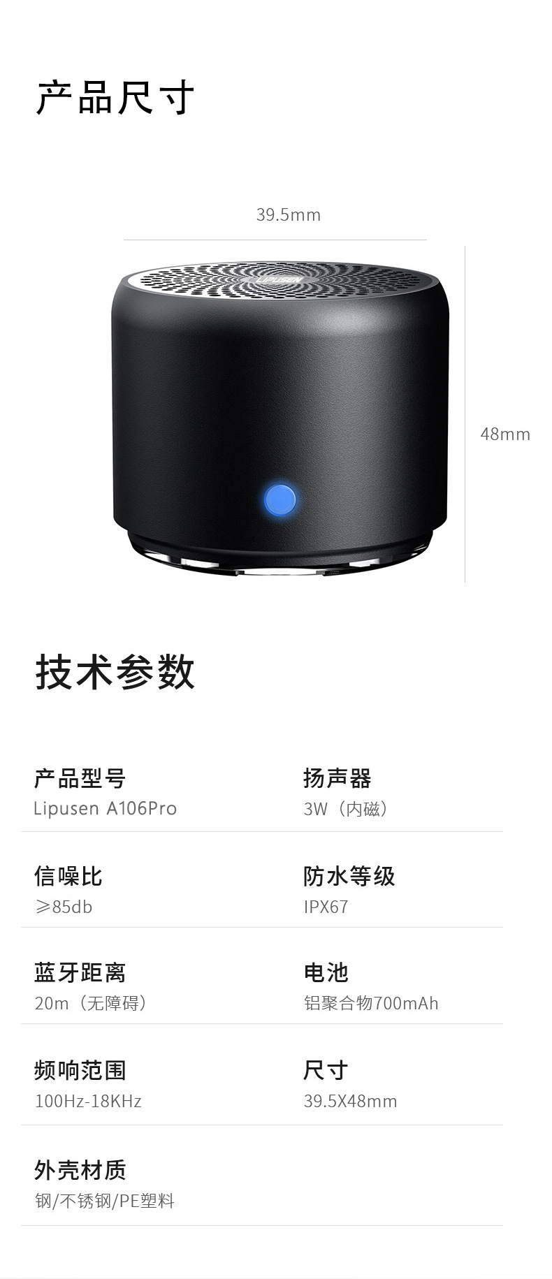 LPS-A106pro 슈퍼 미니 블루투스 스피커 야외 자동차 서브 우퍼 방수 스마트 휴대용 블루투스 오디오