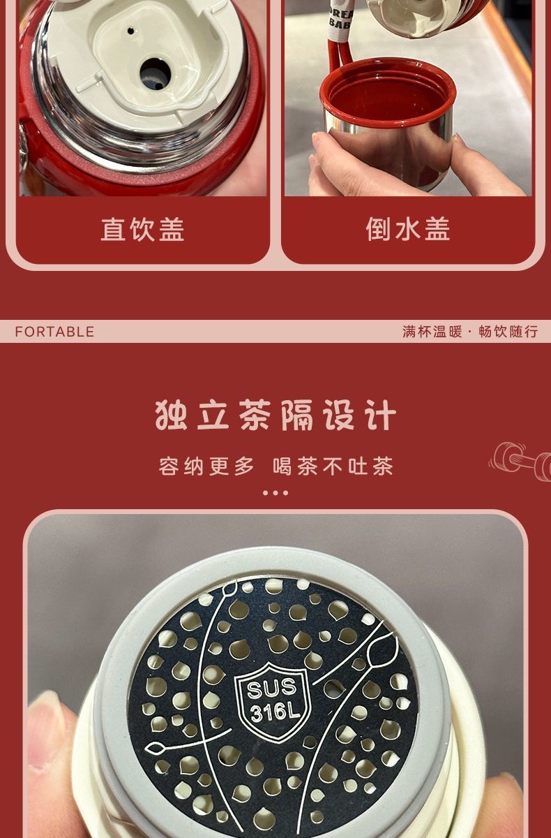 새로운 간단한 316 스테인레스 스틸 보온병 컵 휴대용 차 분리 물 컵 학생 더블 음주 핸드 헬드 컵