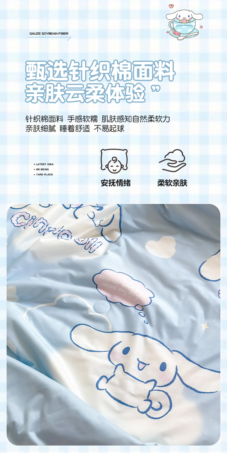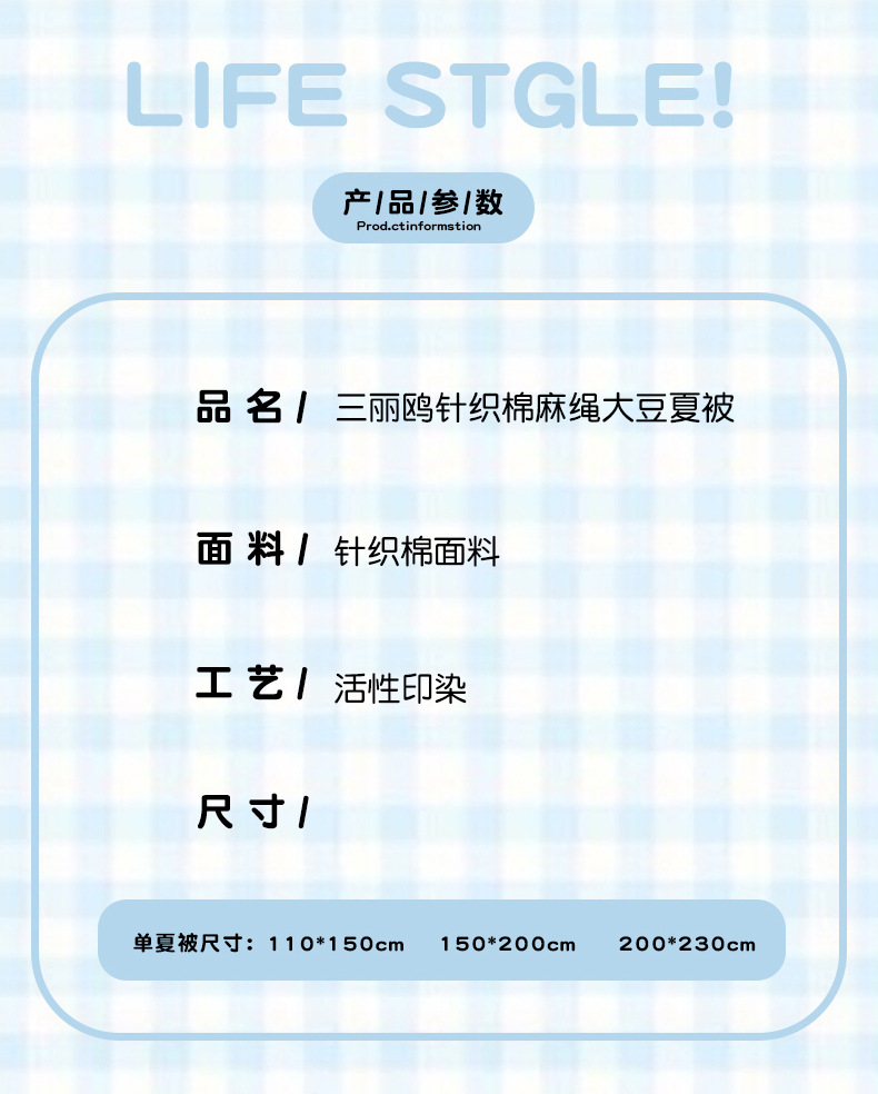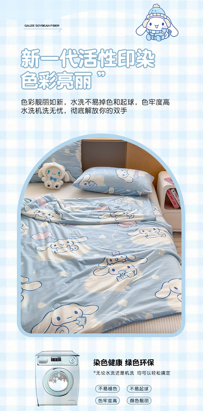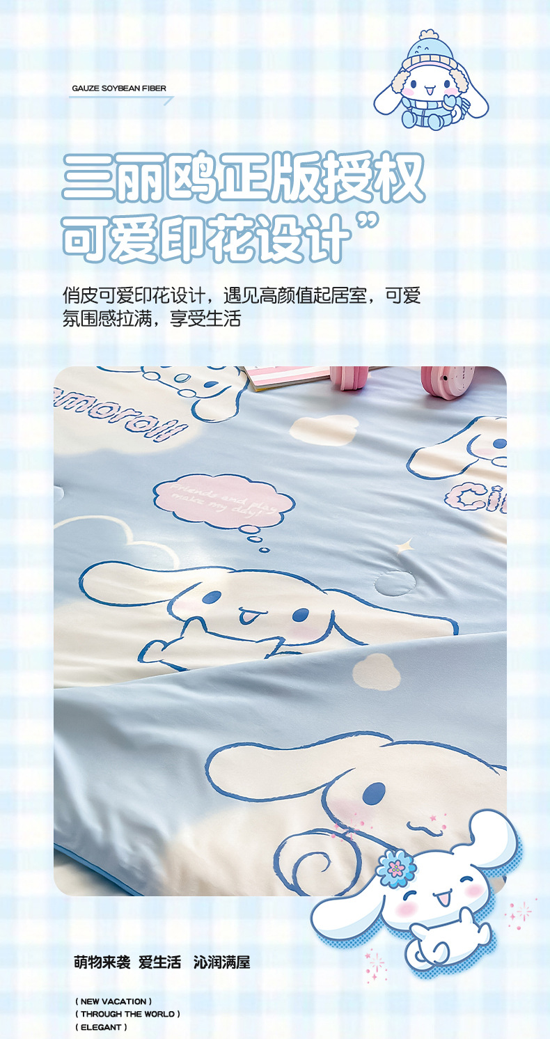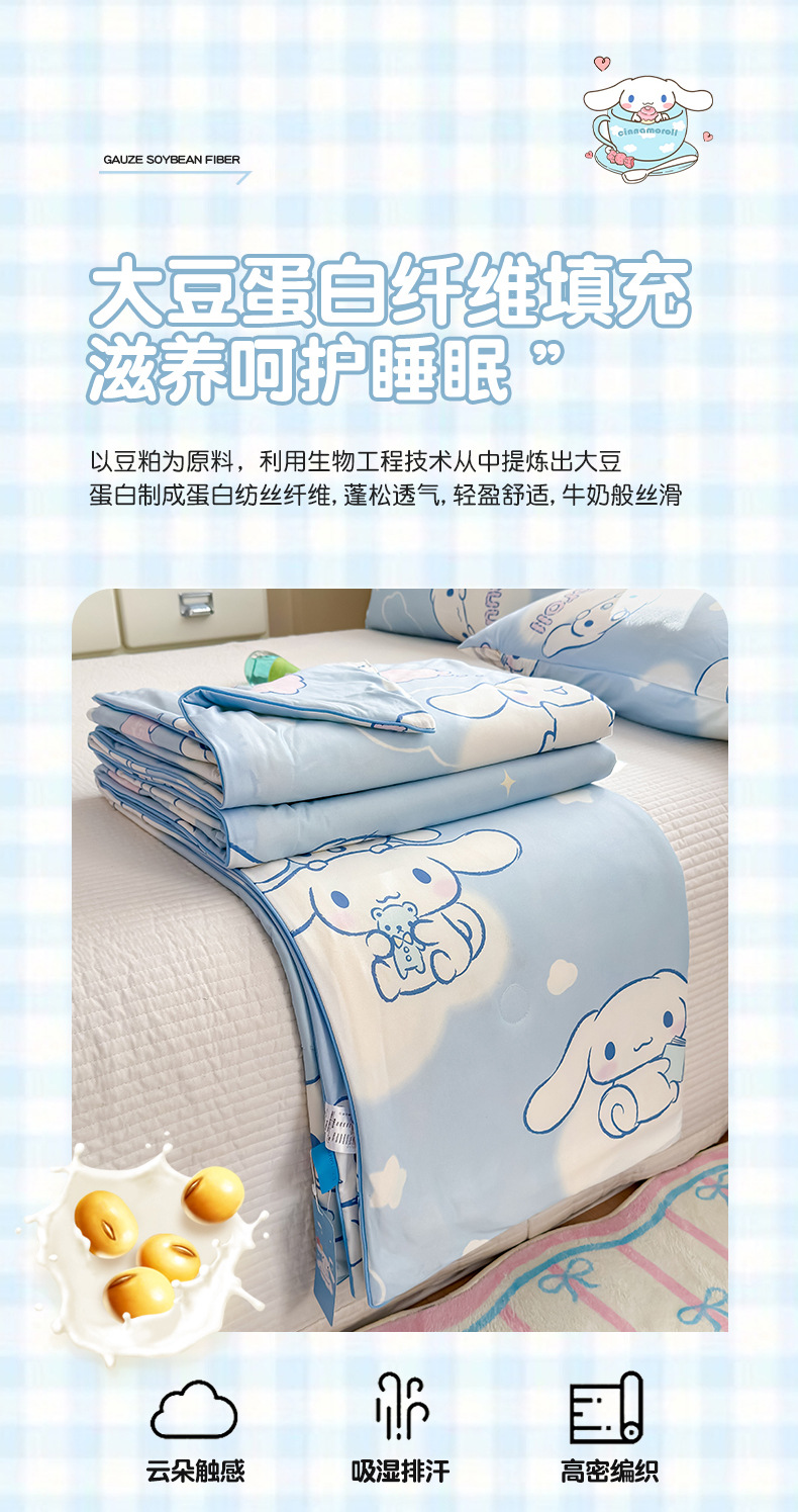 산리오 A 니트 면 10% 콩 섬유 주입 로프 여름 퀼트 부드러운 왁스 만화 여름 시원한 이불