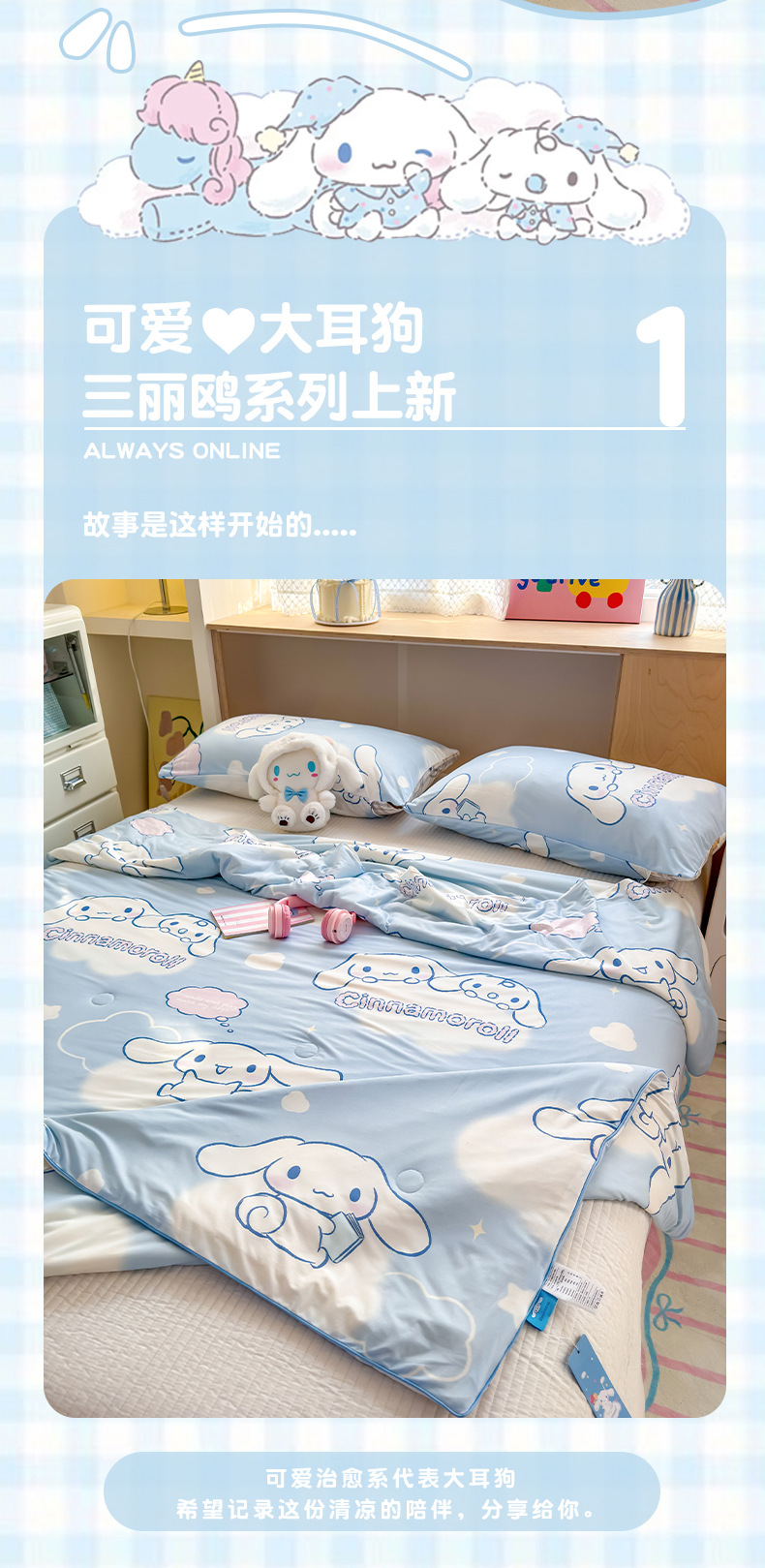 산리오 A 니트 면 10% 콩 섬유 주입 로프 여름 퀼트 부드러운 왁스 만화 여름 시원한 이불스토어 가기