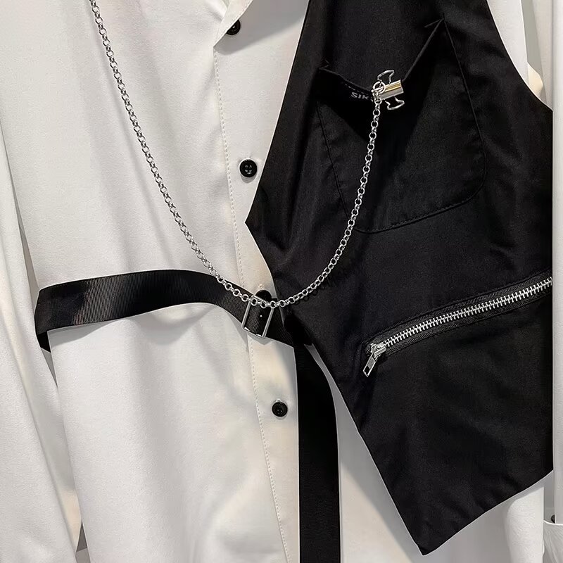2025 년 대외 무역 하이 스트리트 조끼 셔츠 남성 패션 개성 스태킹 웨이스트 코트 외부 셔츠 조끼 착용 투피스 세트 핸섬스토어 가기