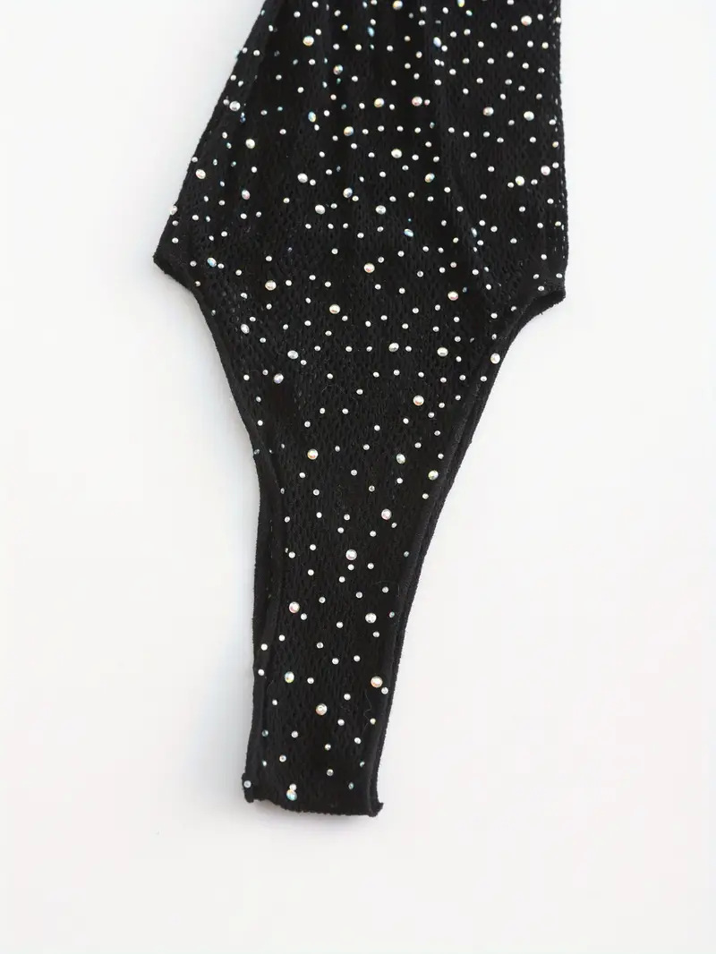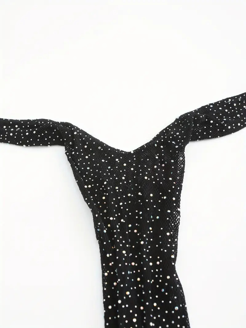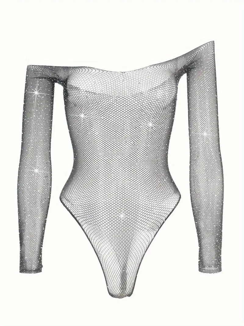 유럽과 미국의 폭발 플러스 사이즈 여성 섹시한 점프 수트 낚시 그물 라인 스톤 반 투과성 비키니 하이 탄성 란제리