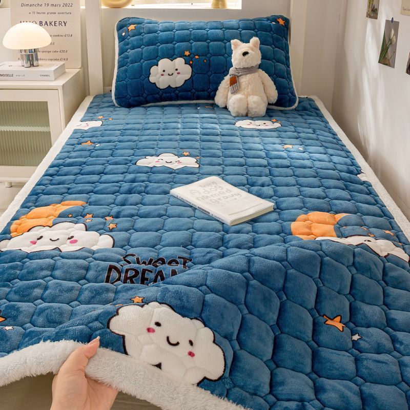 겨울 새로운 우유 벨벳 매트리스 쿠션 겨울 산호 벨벳 기숙사 따뜻한 두꺼운 단일 매트리스 얇은 쿠션스토어 가기