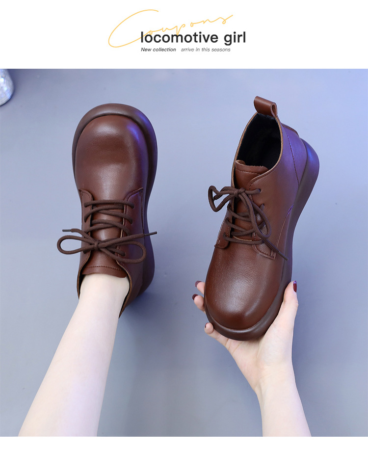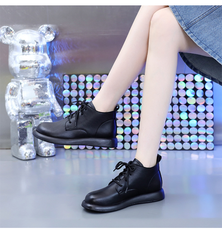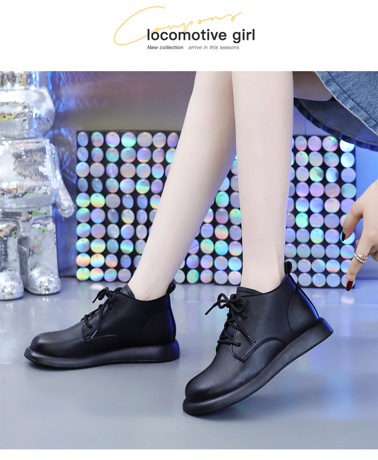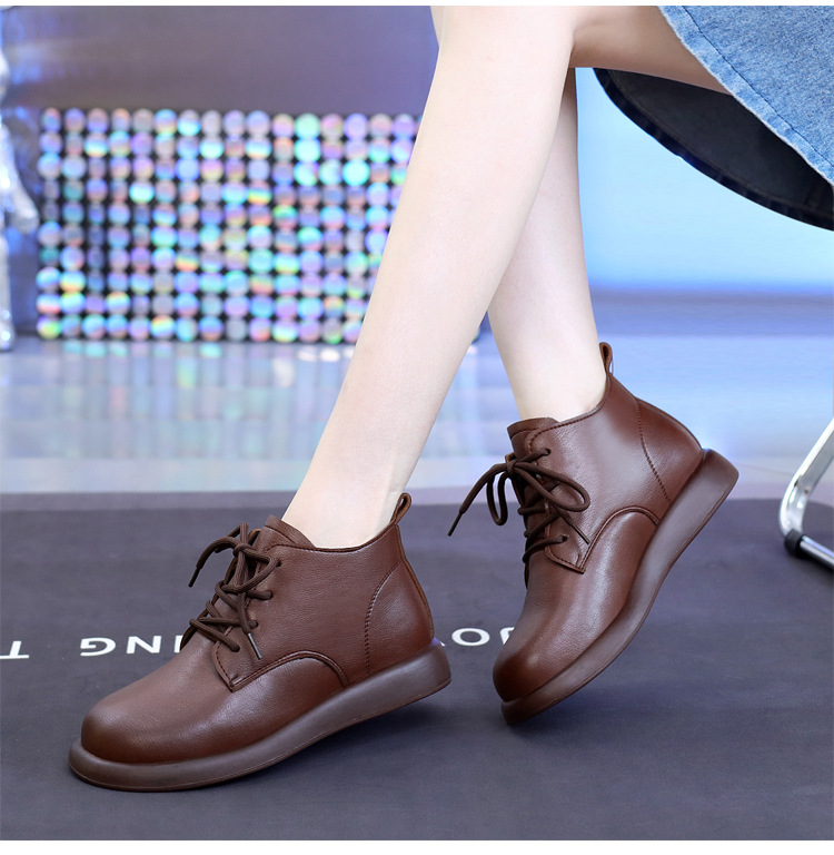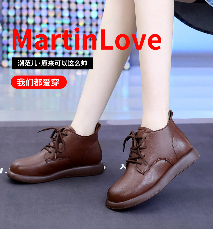 정품 가죽 마틴 부츠 여성 영국 스타일 2025 봄과 가을 새로운 로우 탑 소프트 하단 짧은 부츠 플랫 작은 가죽 신발 스몰 사이즈 34