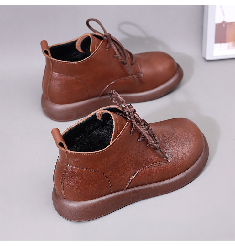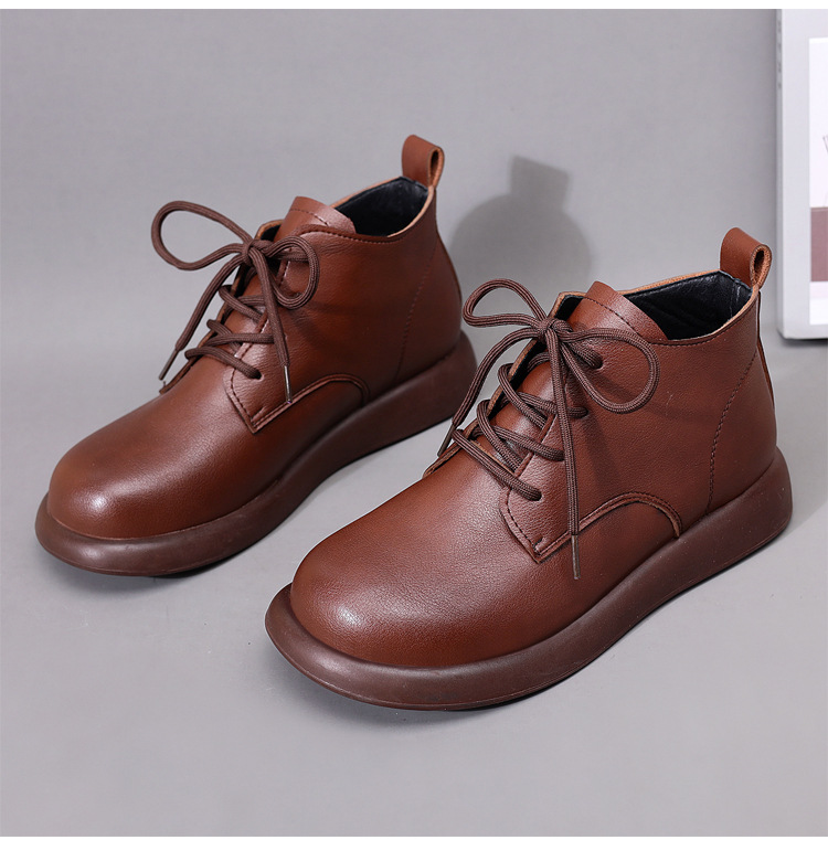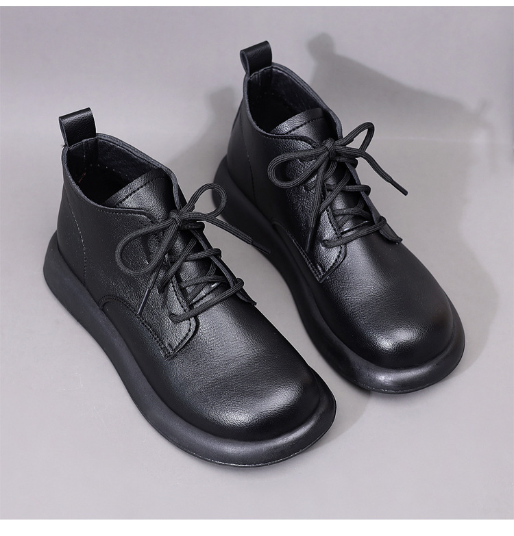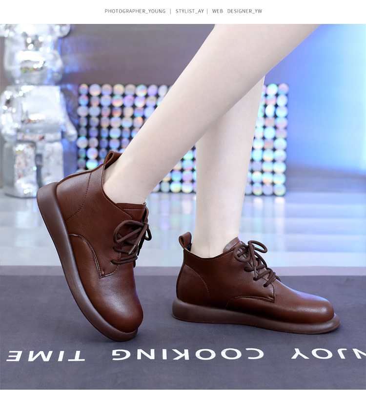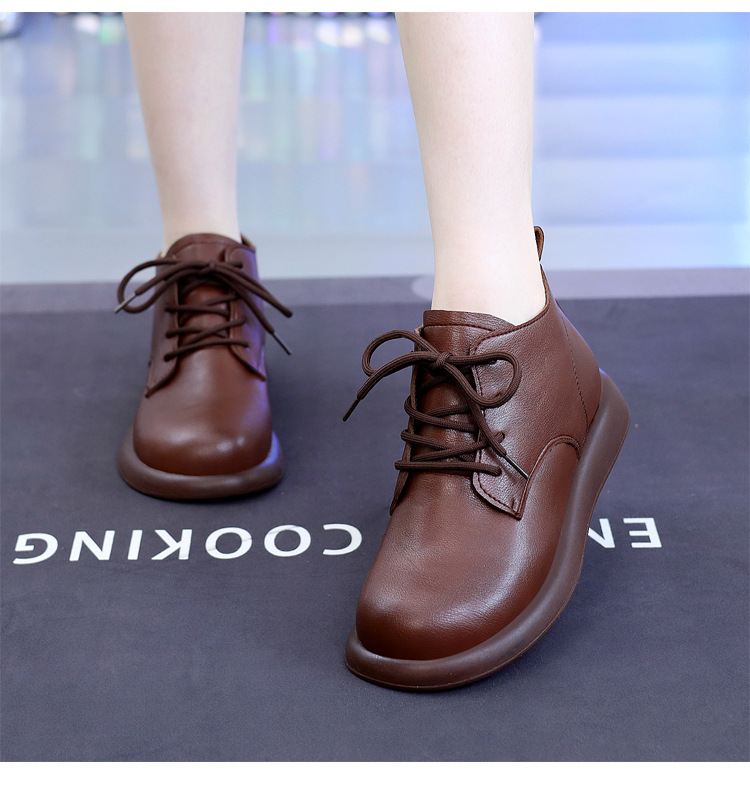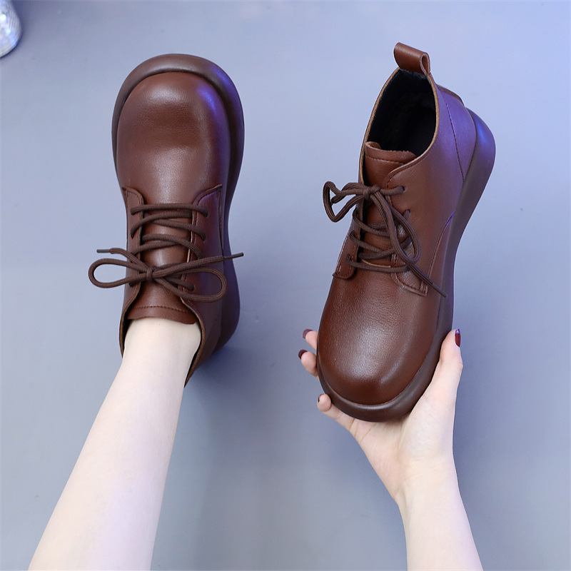 정품 가죽 마틴 부츠 여성 영국 스타일 2025 봄과 가을 새로운 로우 탑 소프트 하단 짧은 부츠 플랫 작은 가죽 신발 스몰 사이즈 34