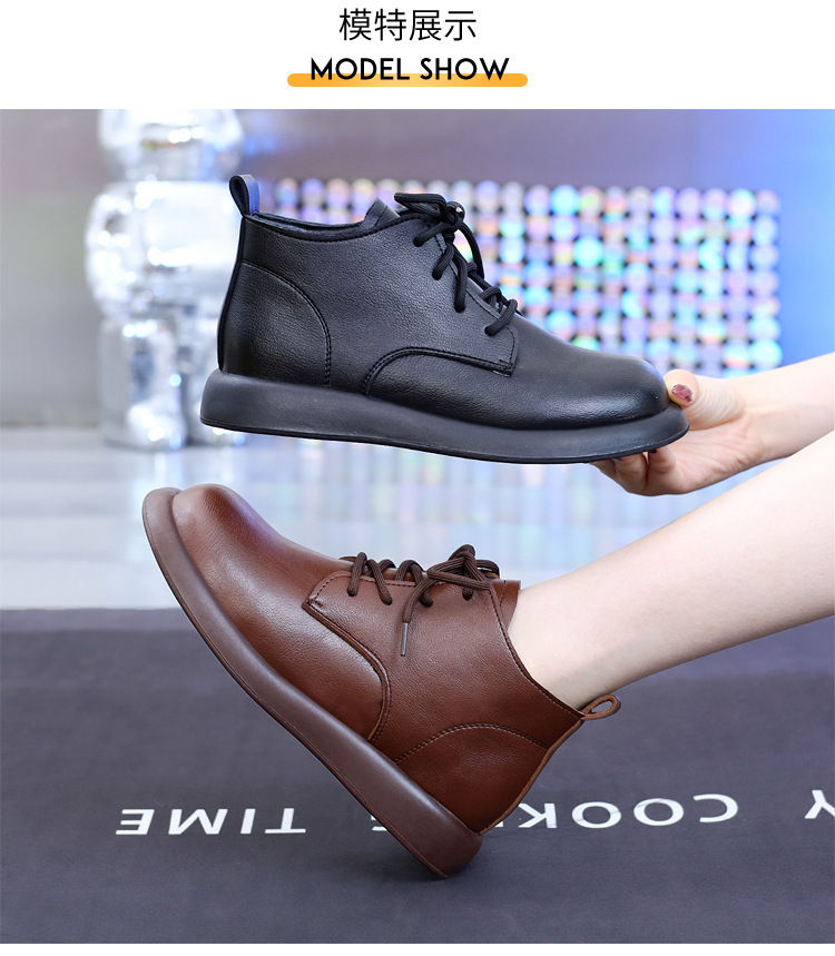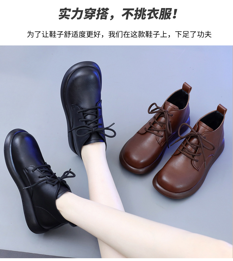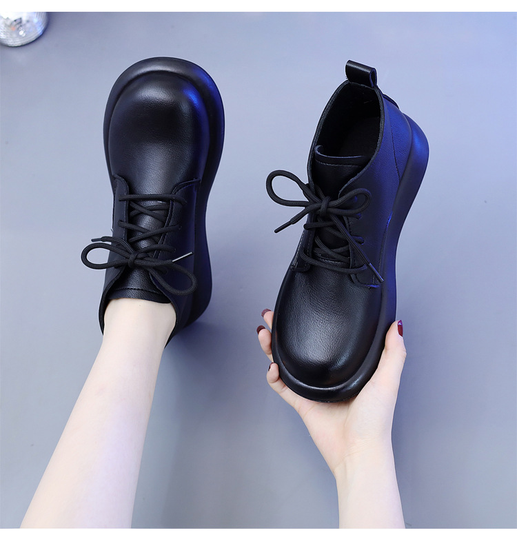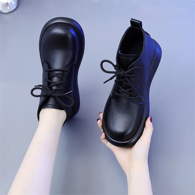 정품 가죽 마틴 부츠 여성 영국 스타일 2025 봄과 가을 새로운 로우 탑 소프트 하단 짧은 부츠 플랫 작은 가죽 신발 스몰 사이즈 34스토어 가기