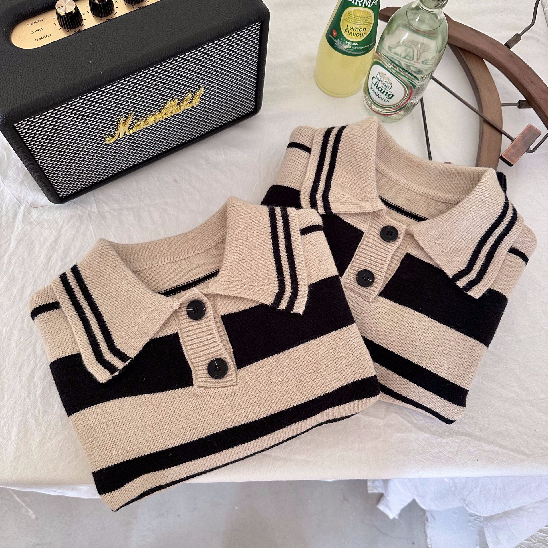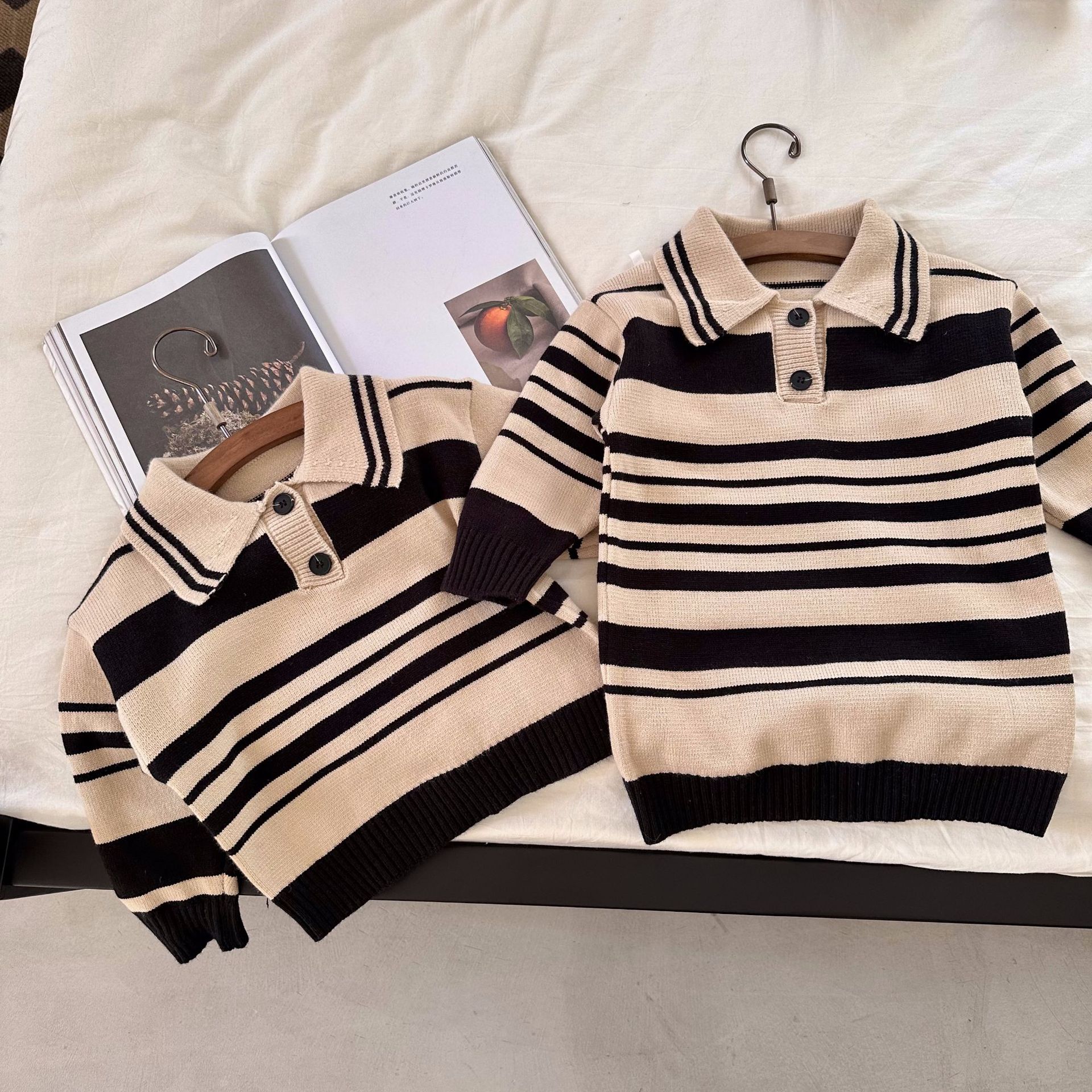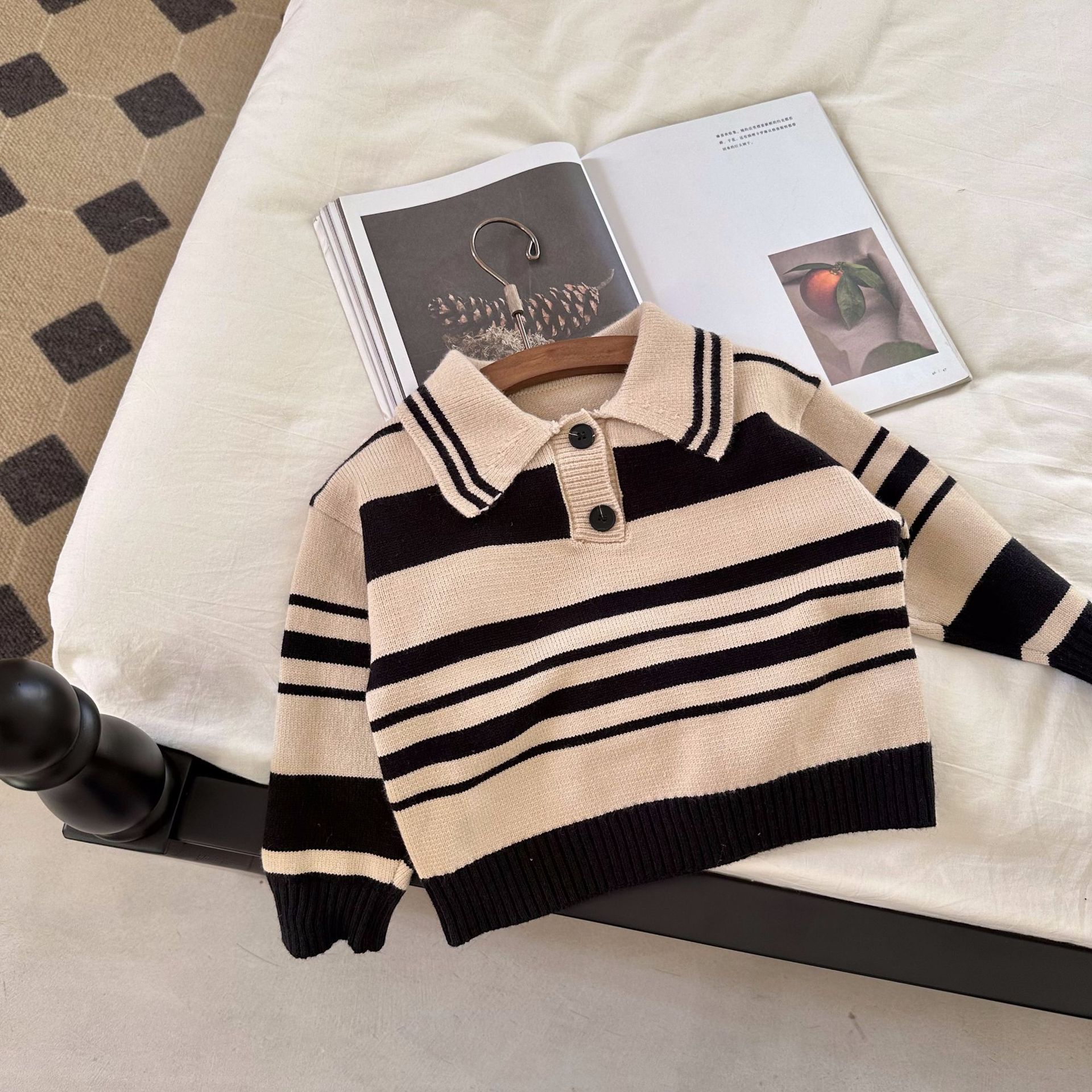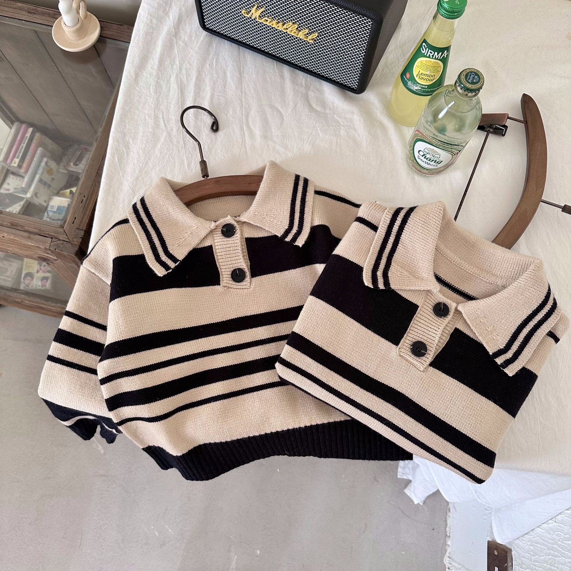 [맞춤형 독점] 아동용 스웨터 봄, 가을 새로운 아동복 소년 소녀 스트라이프 캐주얼 탑 트렌디하고 멋집니다.