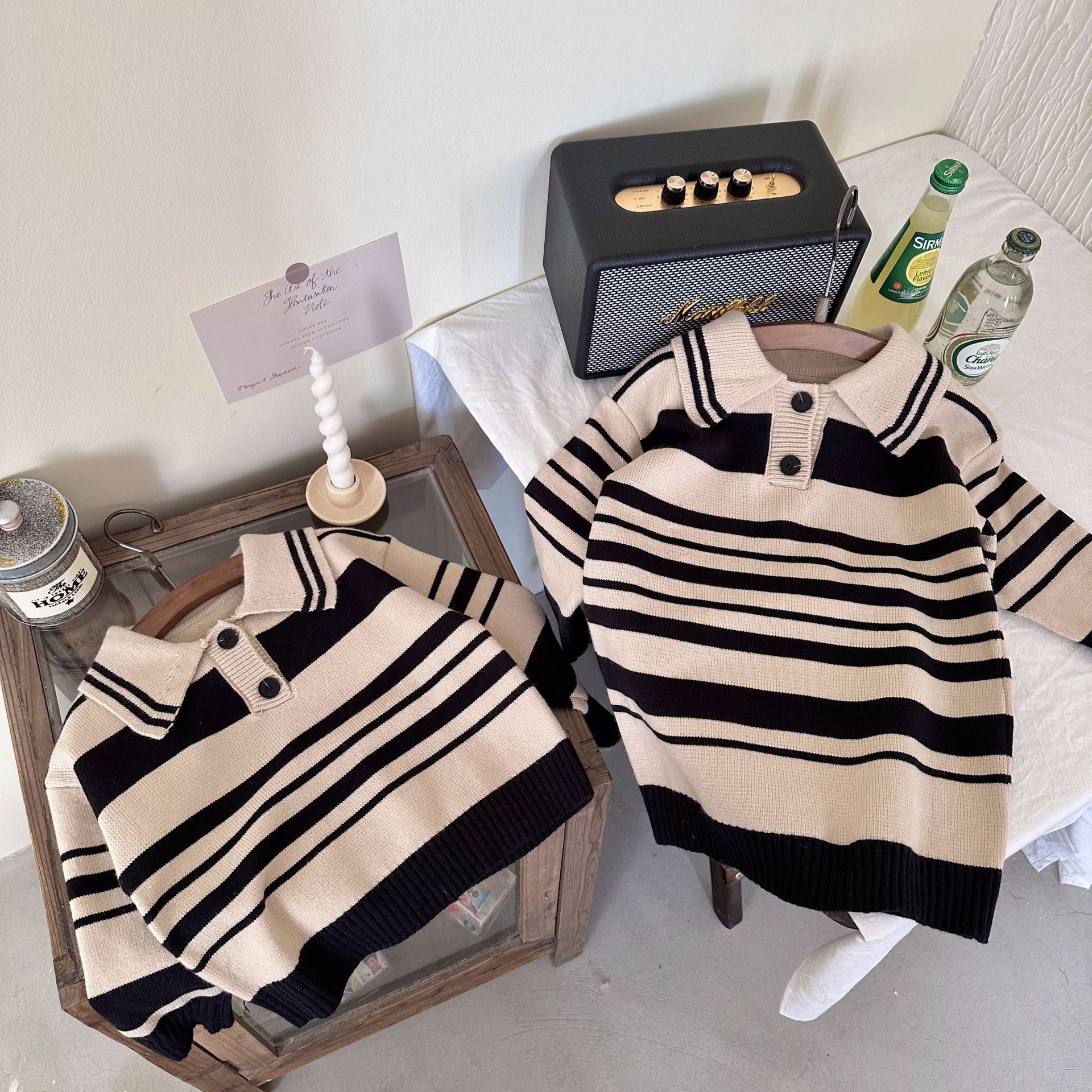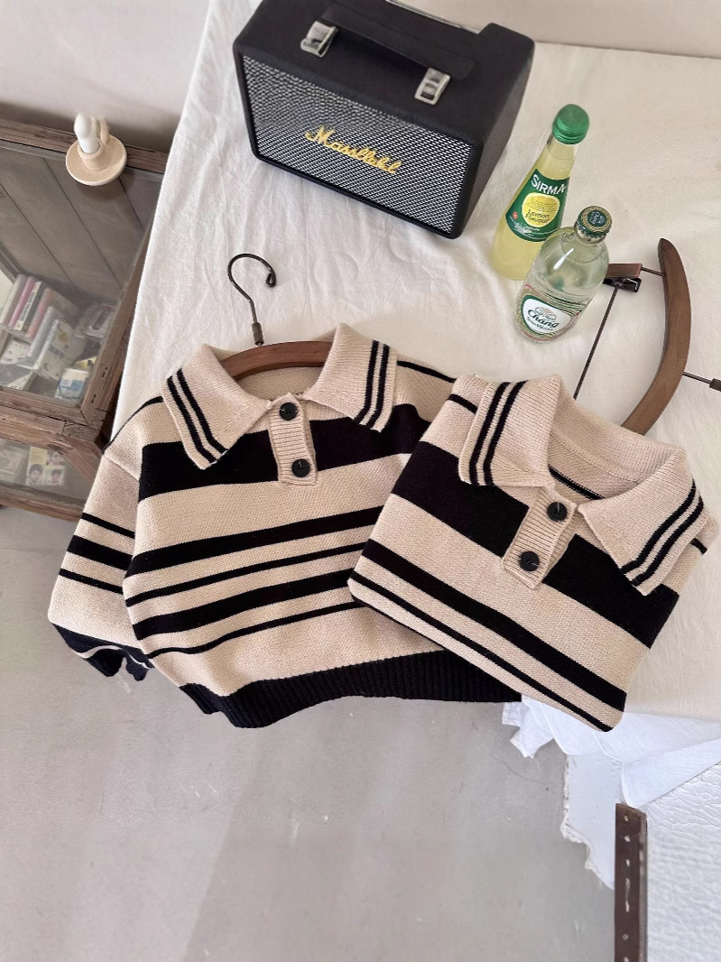 [맞춤형 독점] 아동용 스웨터 봄, 가을 새로운 아동복 소년 소녀 스트라이프 캐주얼 탑 트렌디하고 멋집니다.스토어 가기