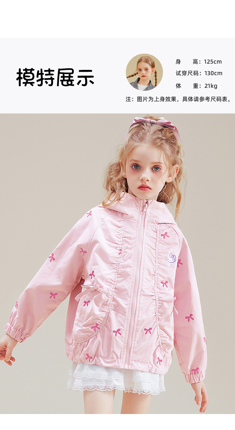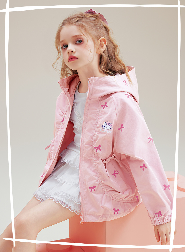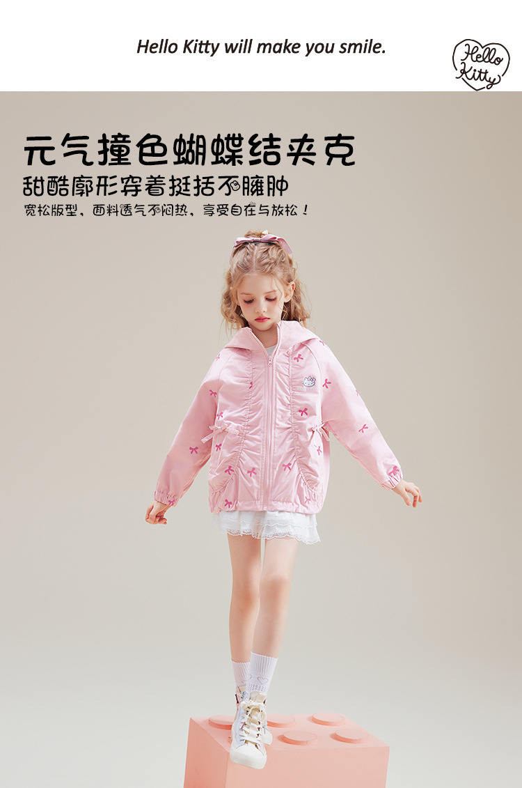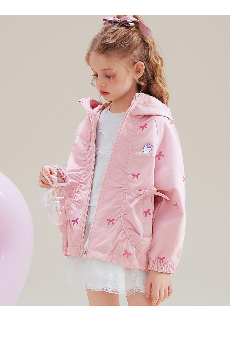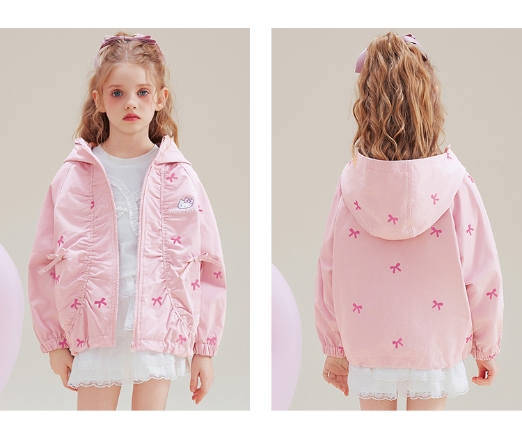 헬로 키티 헬로 키티 소녀 봄 코트 2025 새로운 활 핑크 만화 중형 및 대형 아동복 봄스토어 가기