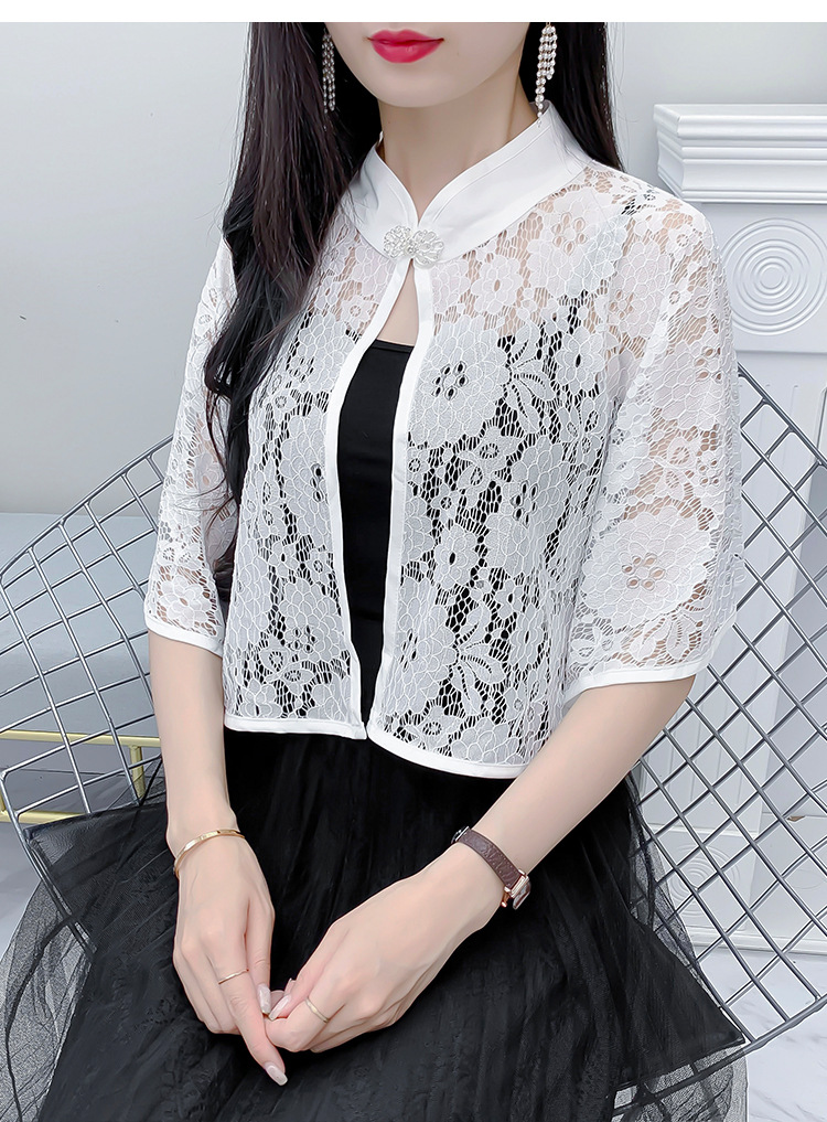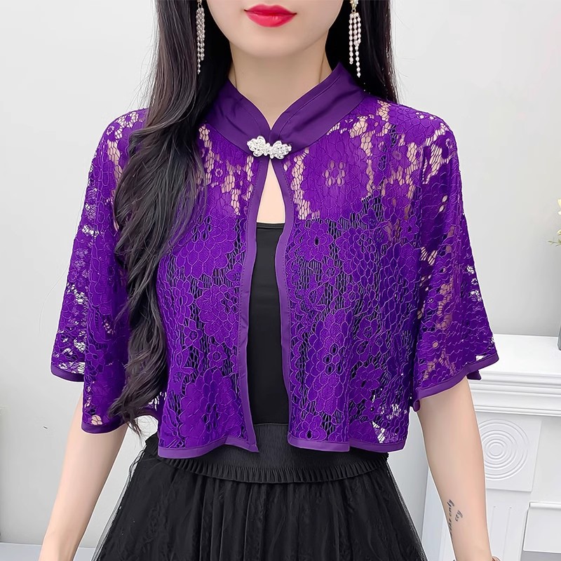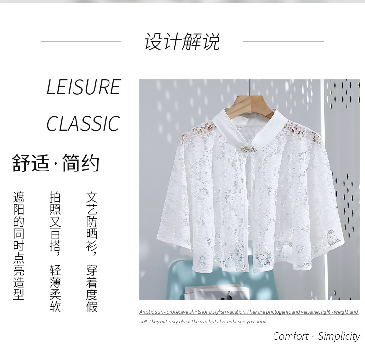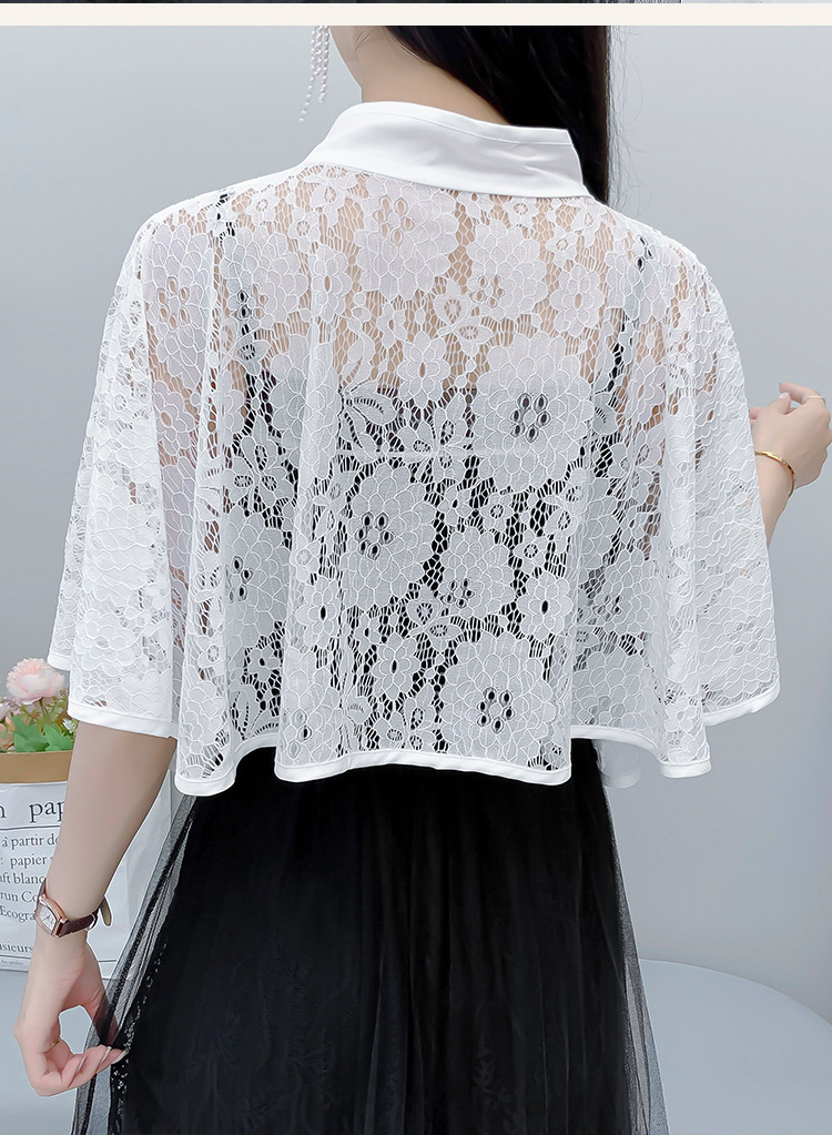 여름 레이스 선스크린 목도리 한국 스타일 달콤한 카디건 짧은 경량 통기성 에어컨이 설치된 방 목도리 옷을 나들기에 적합