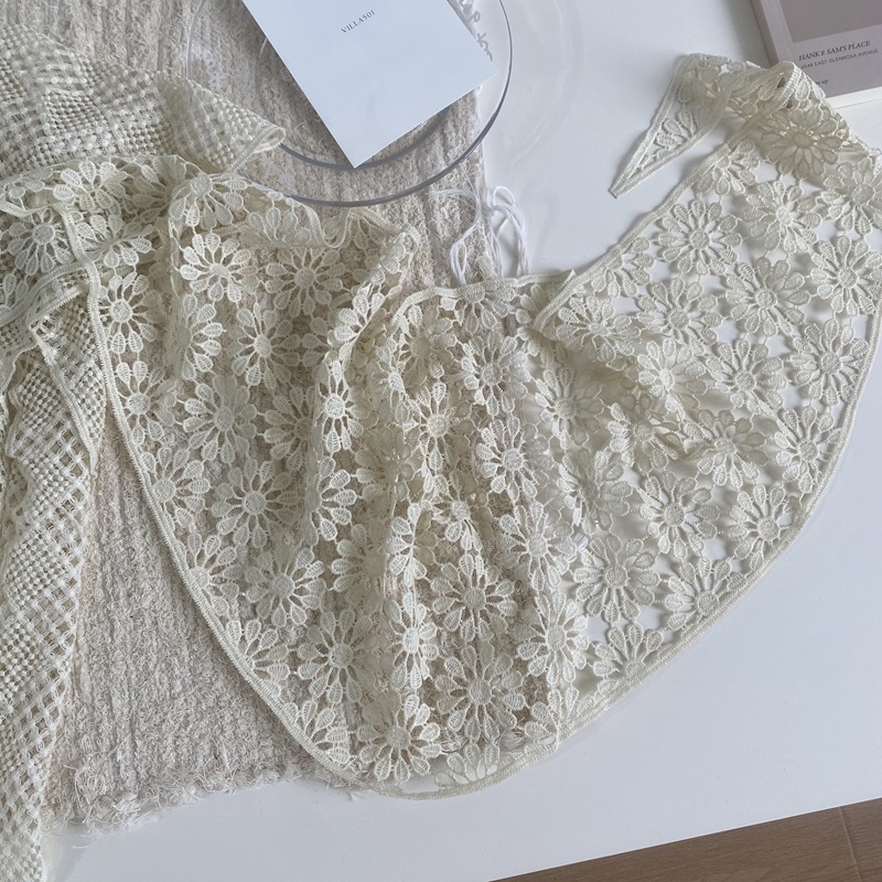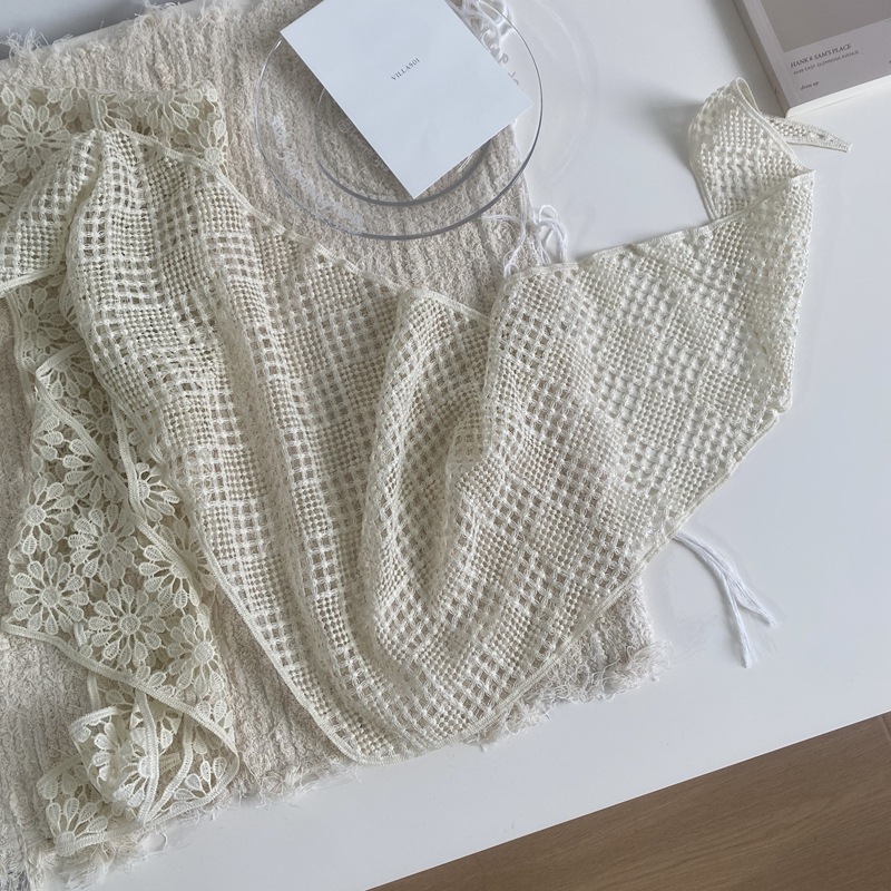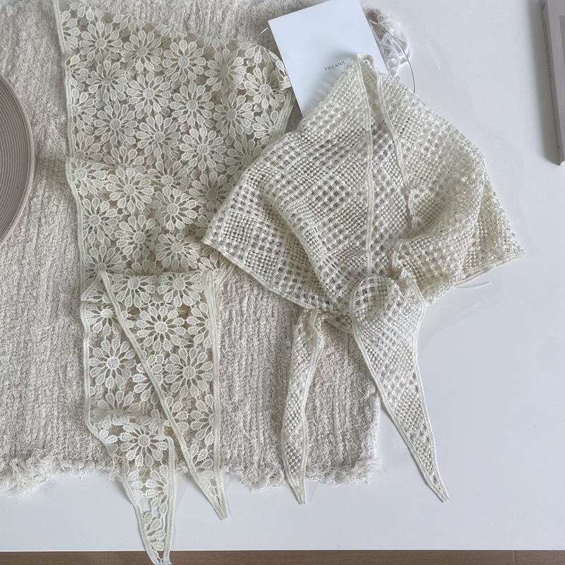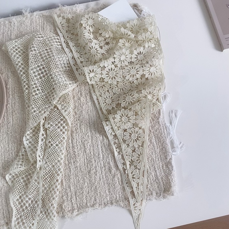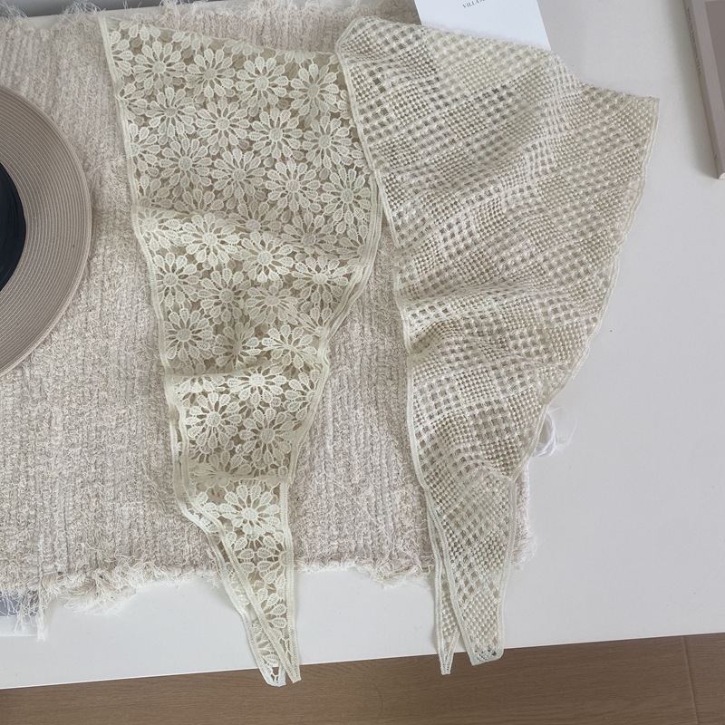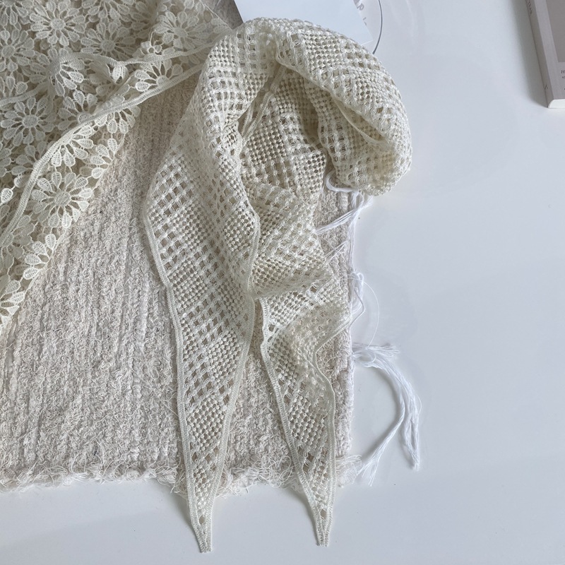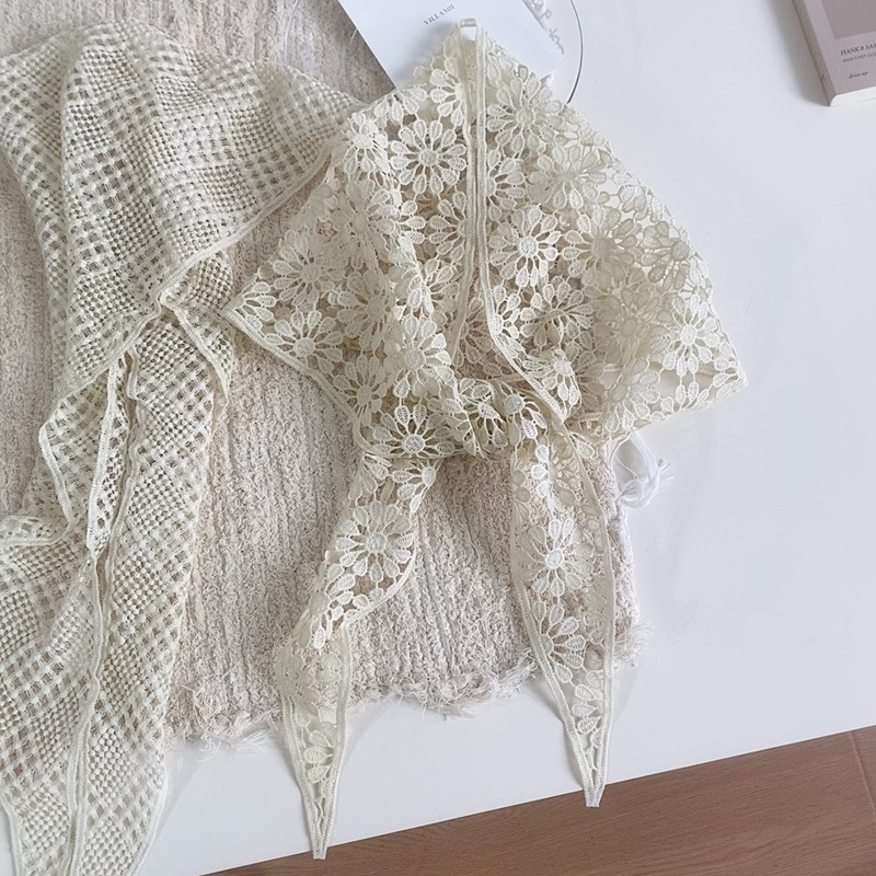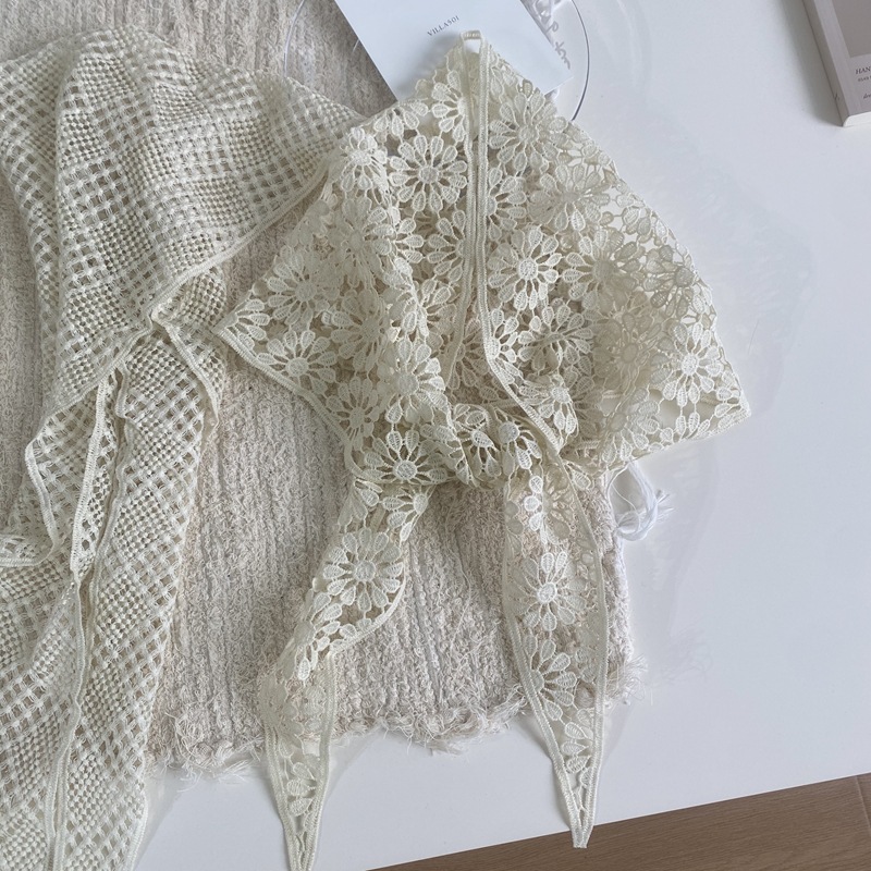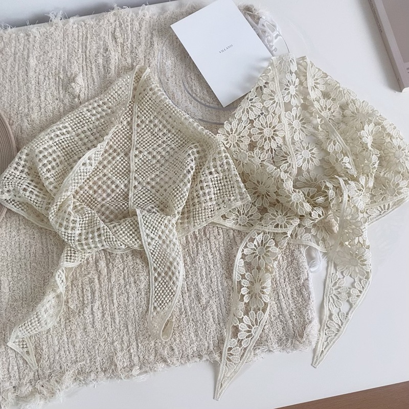 한국 스타일 중공 크로 셰 트라이앵글 스카프 여성의 새로운 올 매치 레이스 작은 목도리 장식 힙 스카프 작은 허리 코트