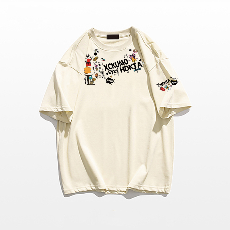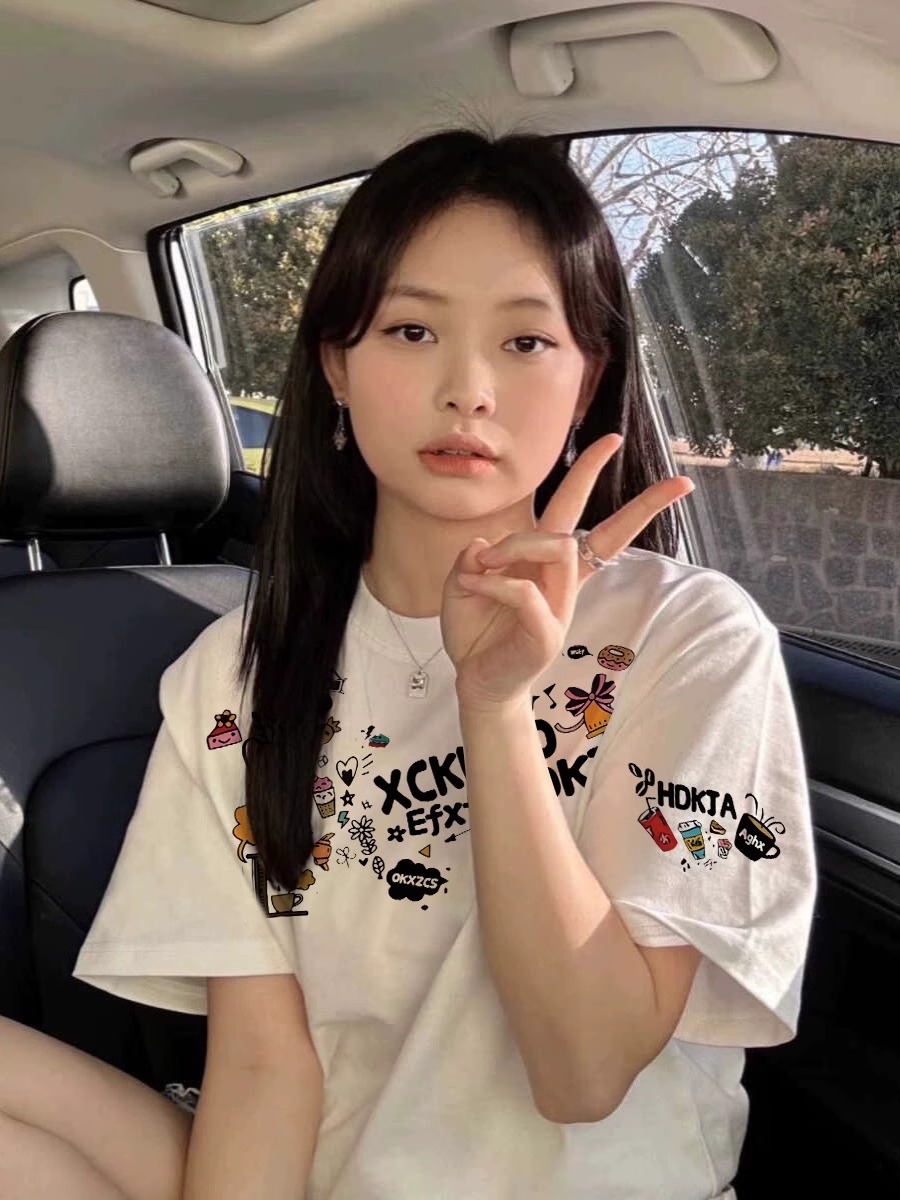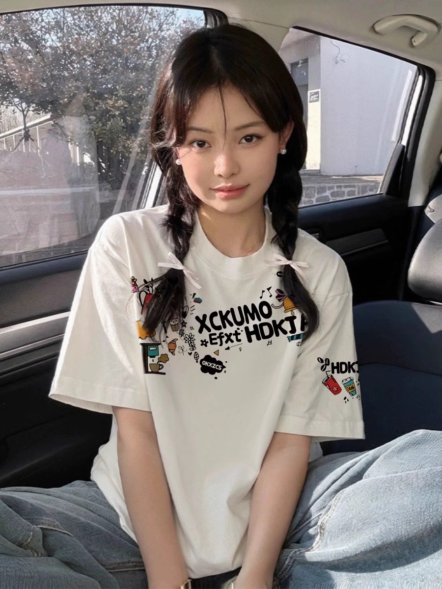 헤비 코튼 화이트 숄더 반팔 티셔츠 여성 2025 년 새 여름 느슨한 디자인 센스 아메리칸 반소매 탑스토어 가기