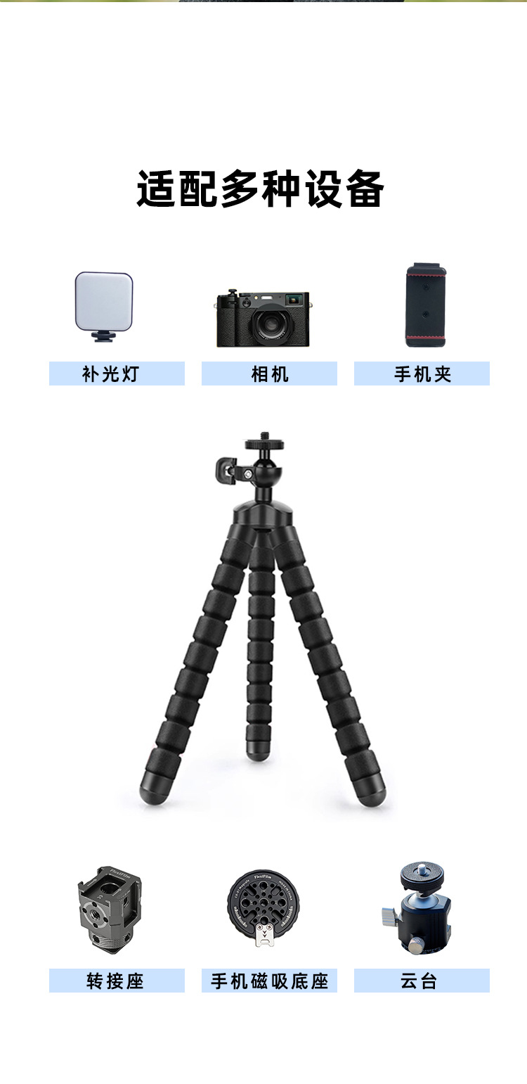 다용도 휴대폰 거치대, 다기능 휴대용 문어 삼각대, 미러리스/DSLR 셀카 데스크탑 스탠드 도매
