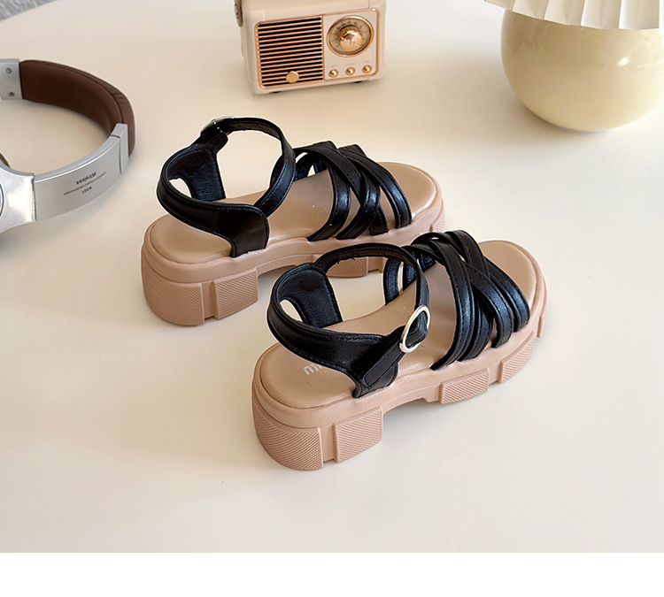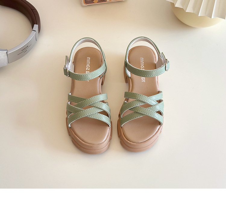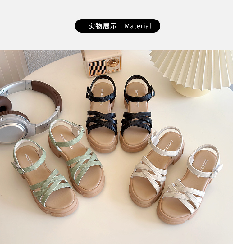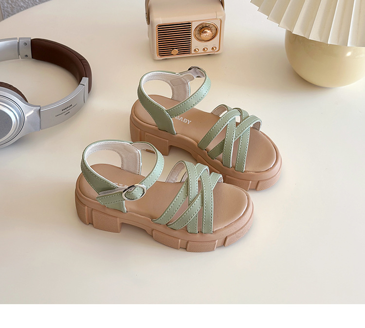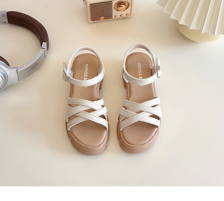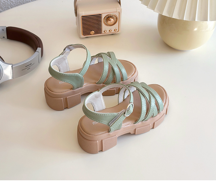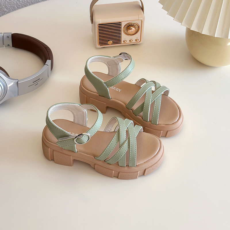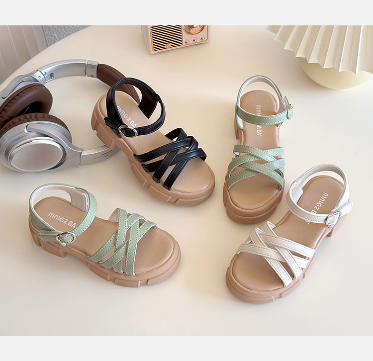 어린이 신발 2025 새로운 여름 작은 소녀 달콤한 세련된 공주 스타일 로마 샌들 소녀 벨크로 샌들