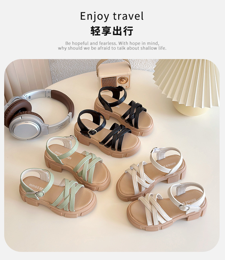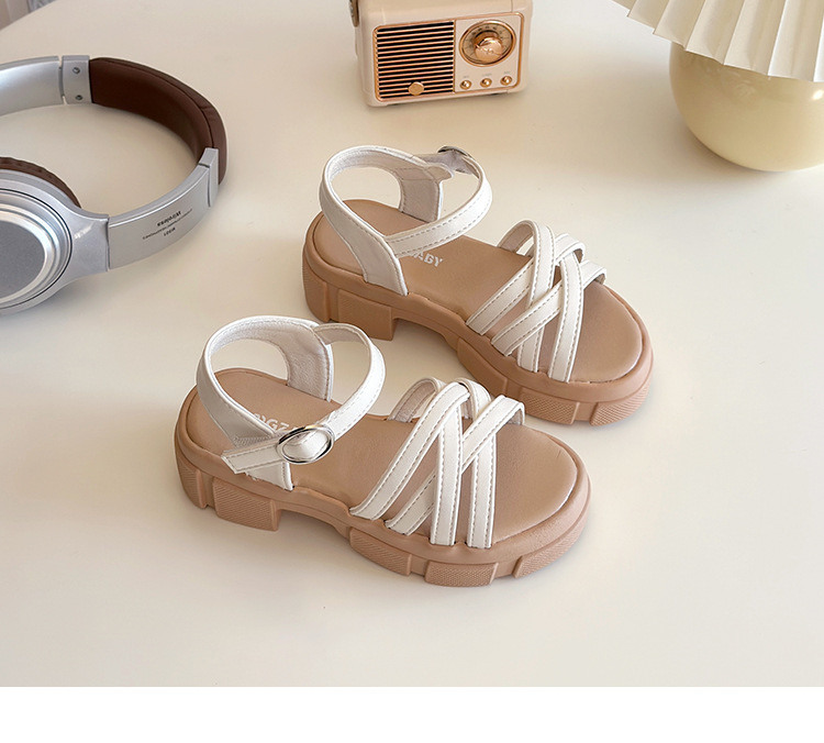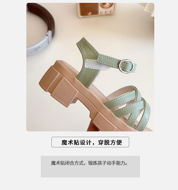 어린이 신발 2025 새로운 여름 작은 소녀 달콤한 세련된 공주 스타일 로마 샌들 소녀 벨크로 샌들스토어 가기