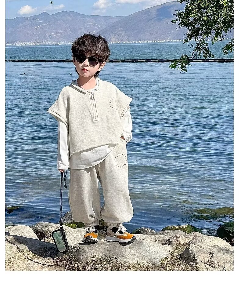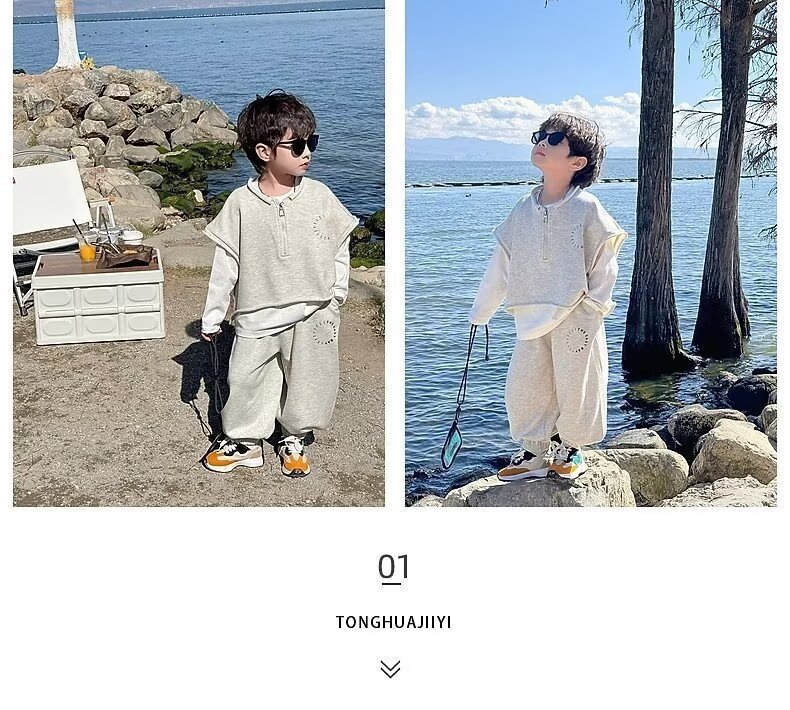 소년 세트 가을 2025 새로운 어린이 가을 서양 스타일 땀 투피스 소년 봄과 가을 유행 멋진 옷스토어 가기