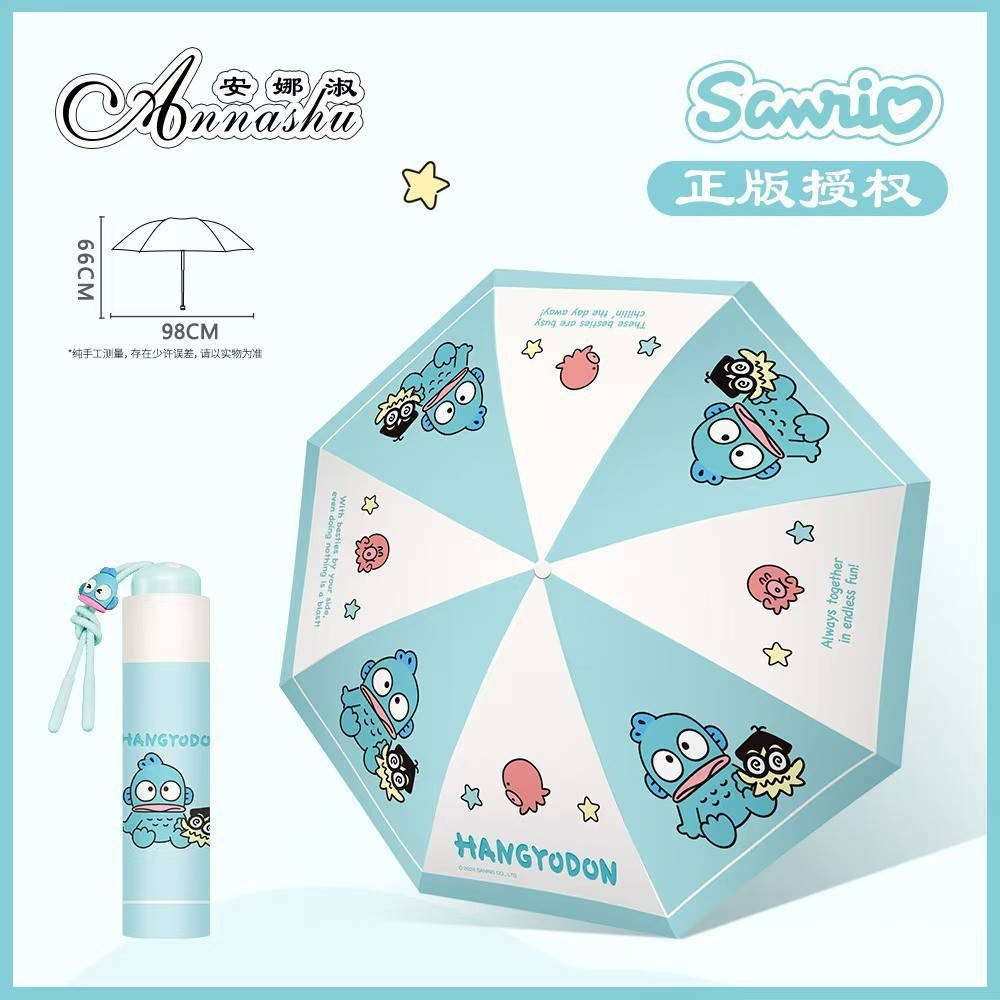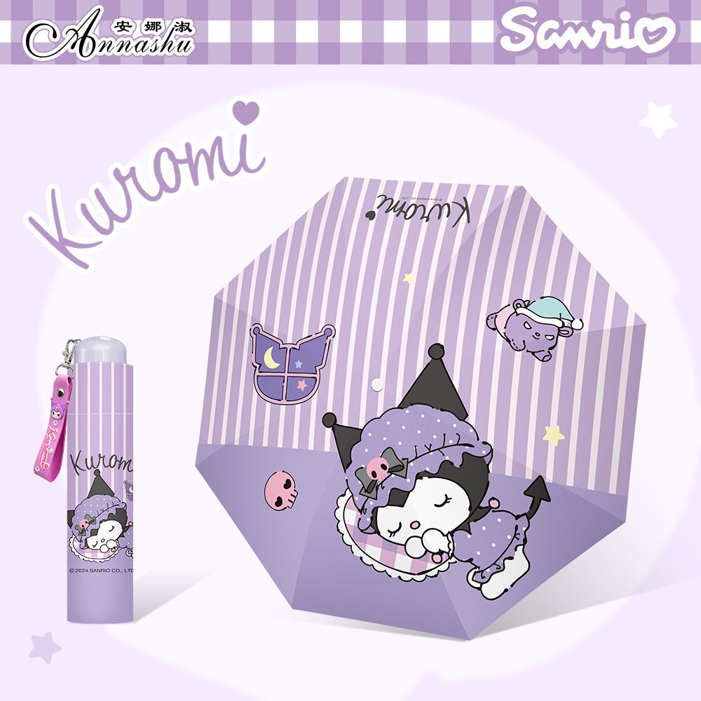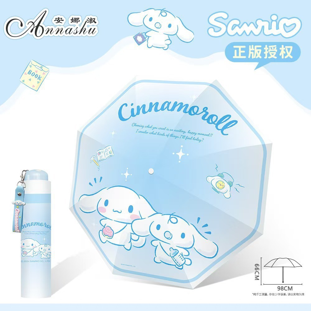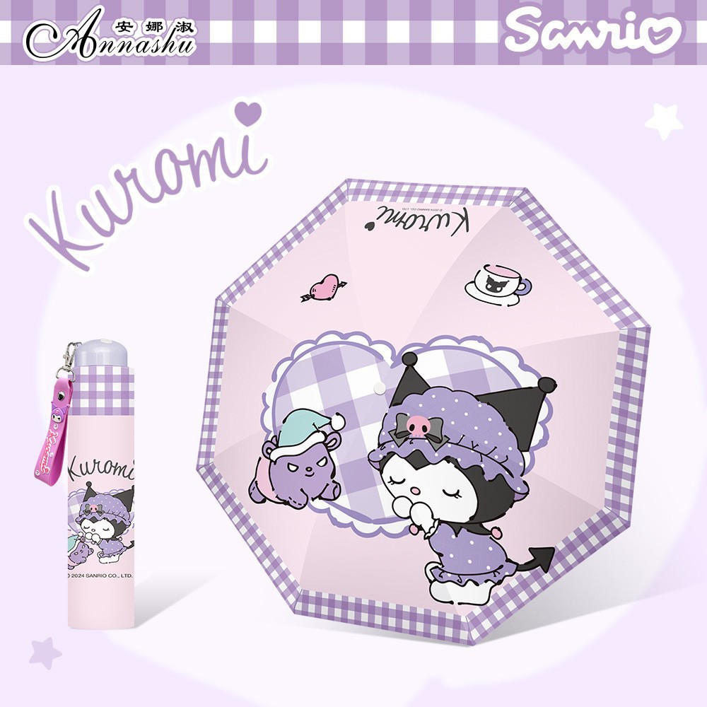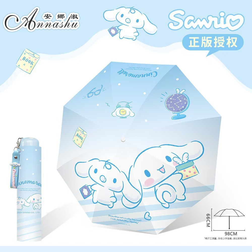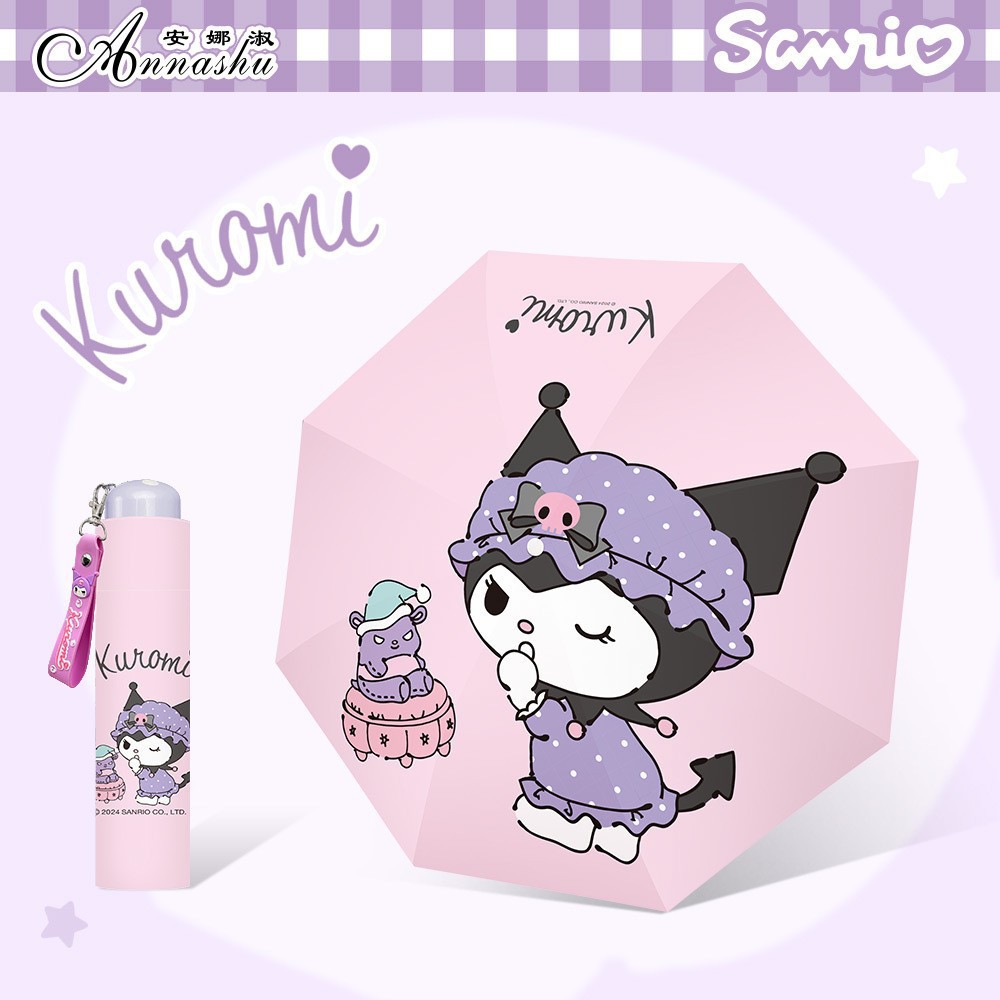 정품 산리오 우산 검은 고무 햇살 우산 맑고 비오는 이중 용도 선 스크린 및 UV 보호 휴대용 만화 3 배 우산스토어 가기