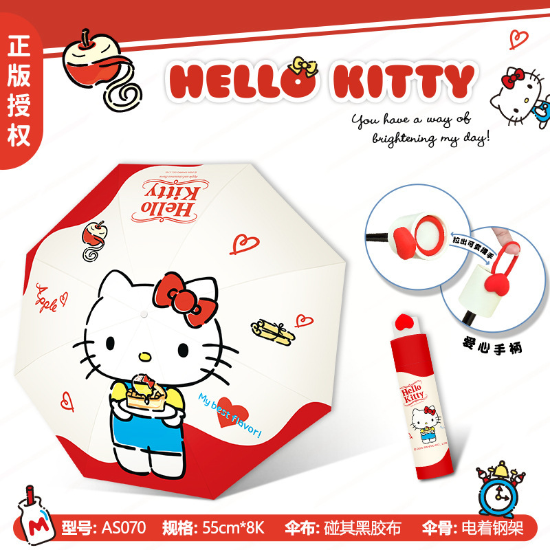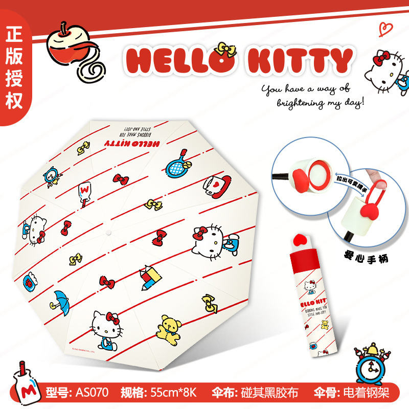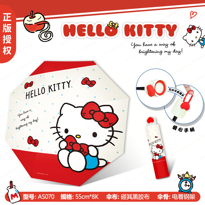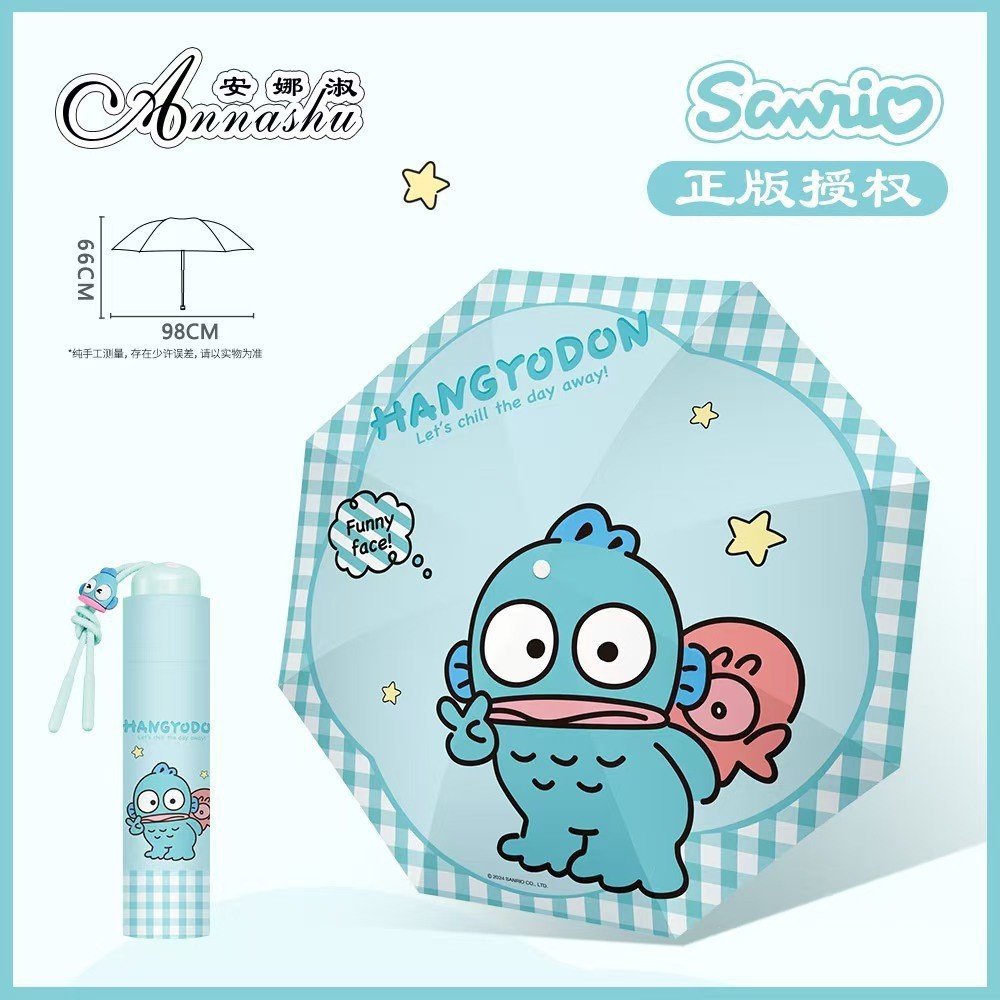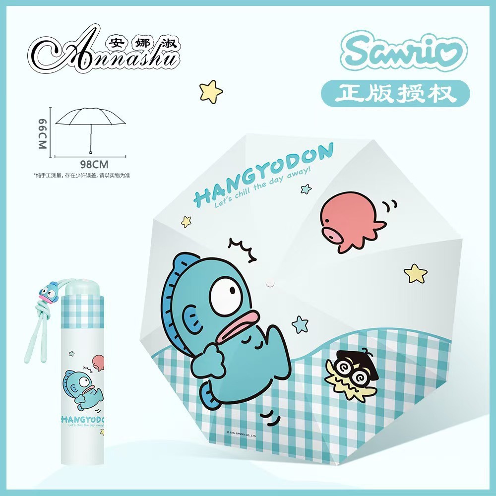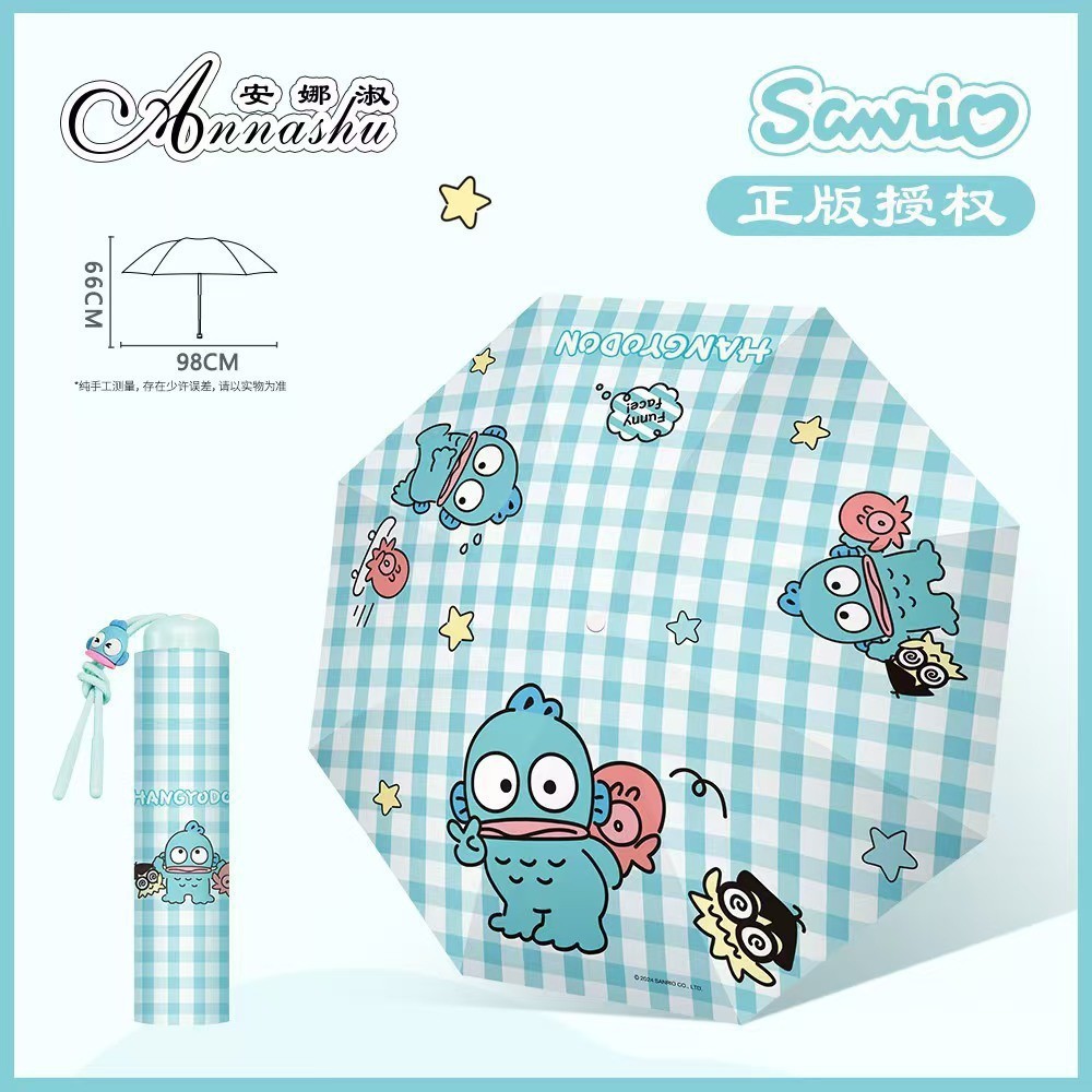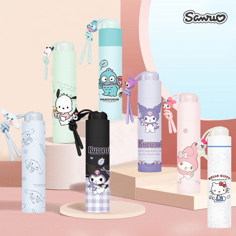 정품 산리오 우산 검은 고무 햇살 우산 맑고 비오는 이중 용도 선 스크린 및 UV 보호 휴대용 만화 3 배 우산스토어 가기