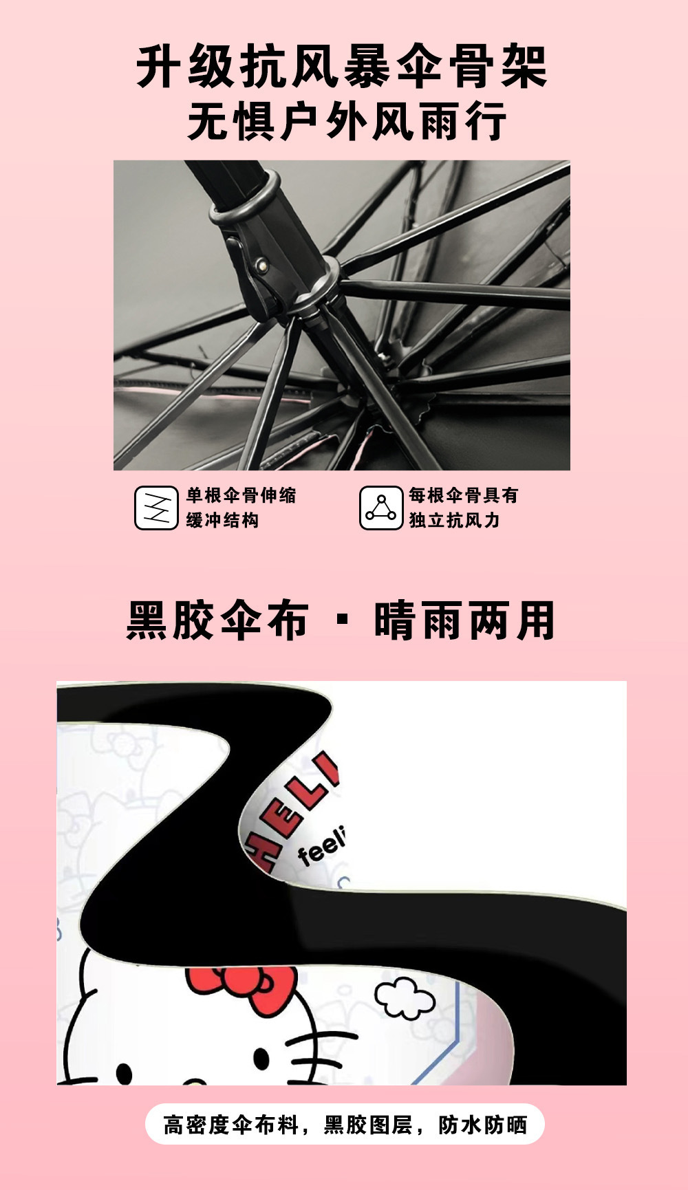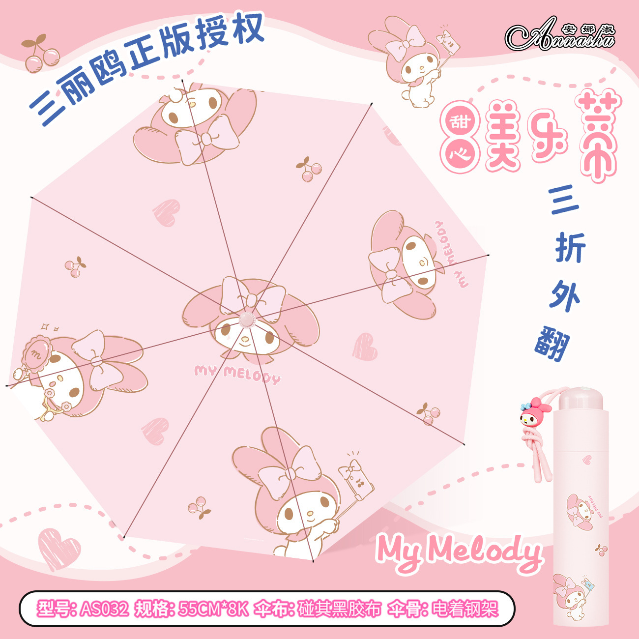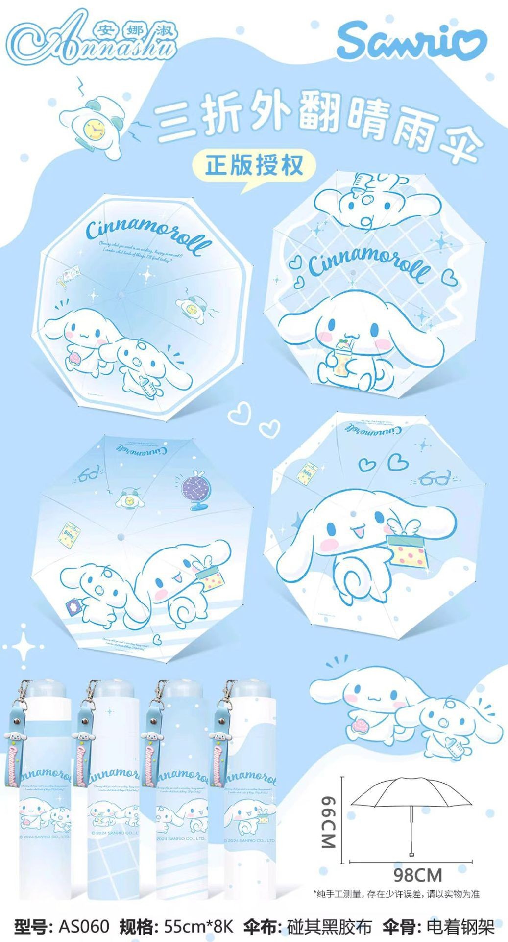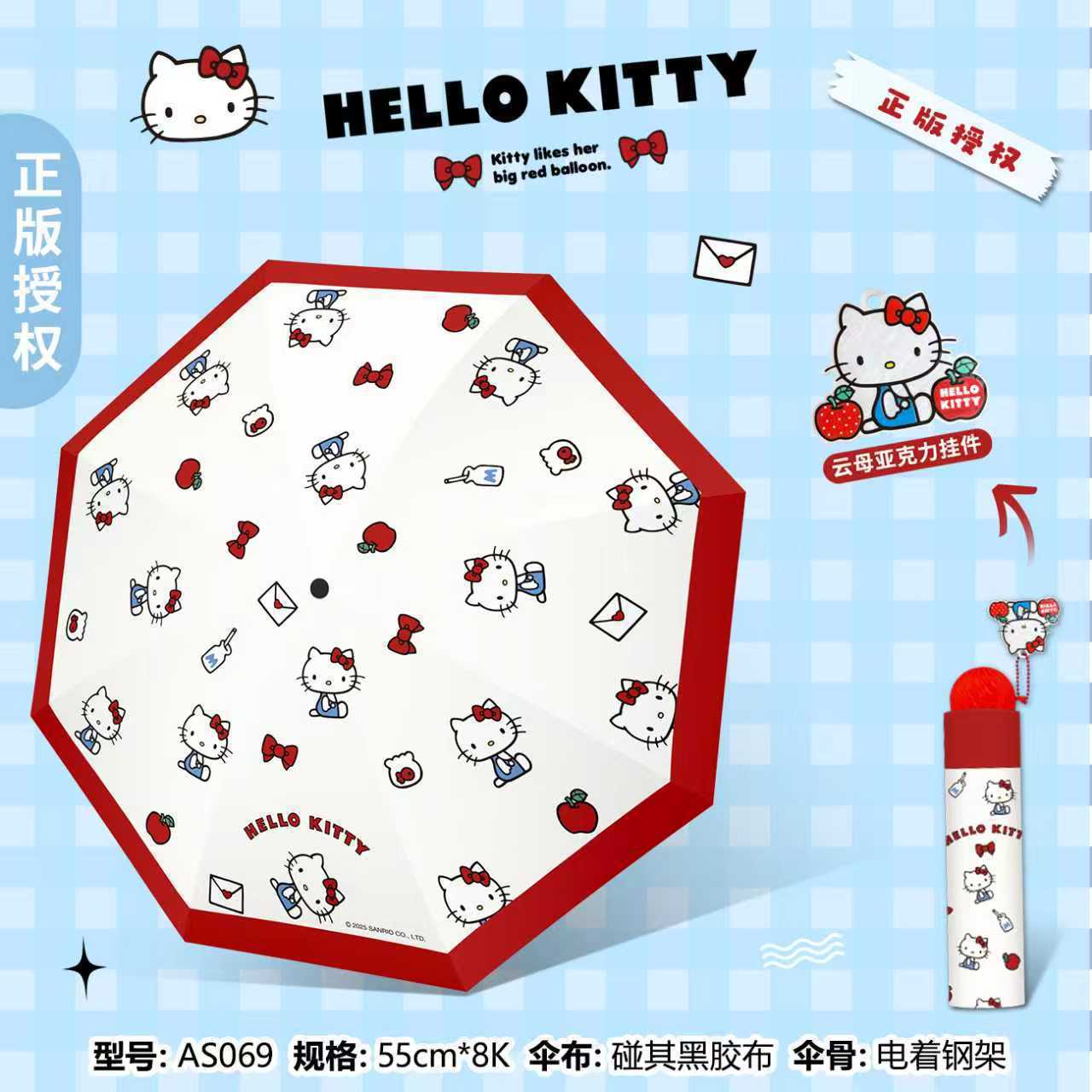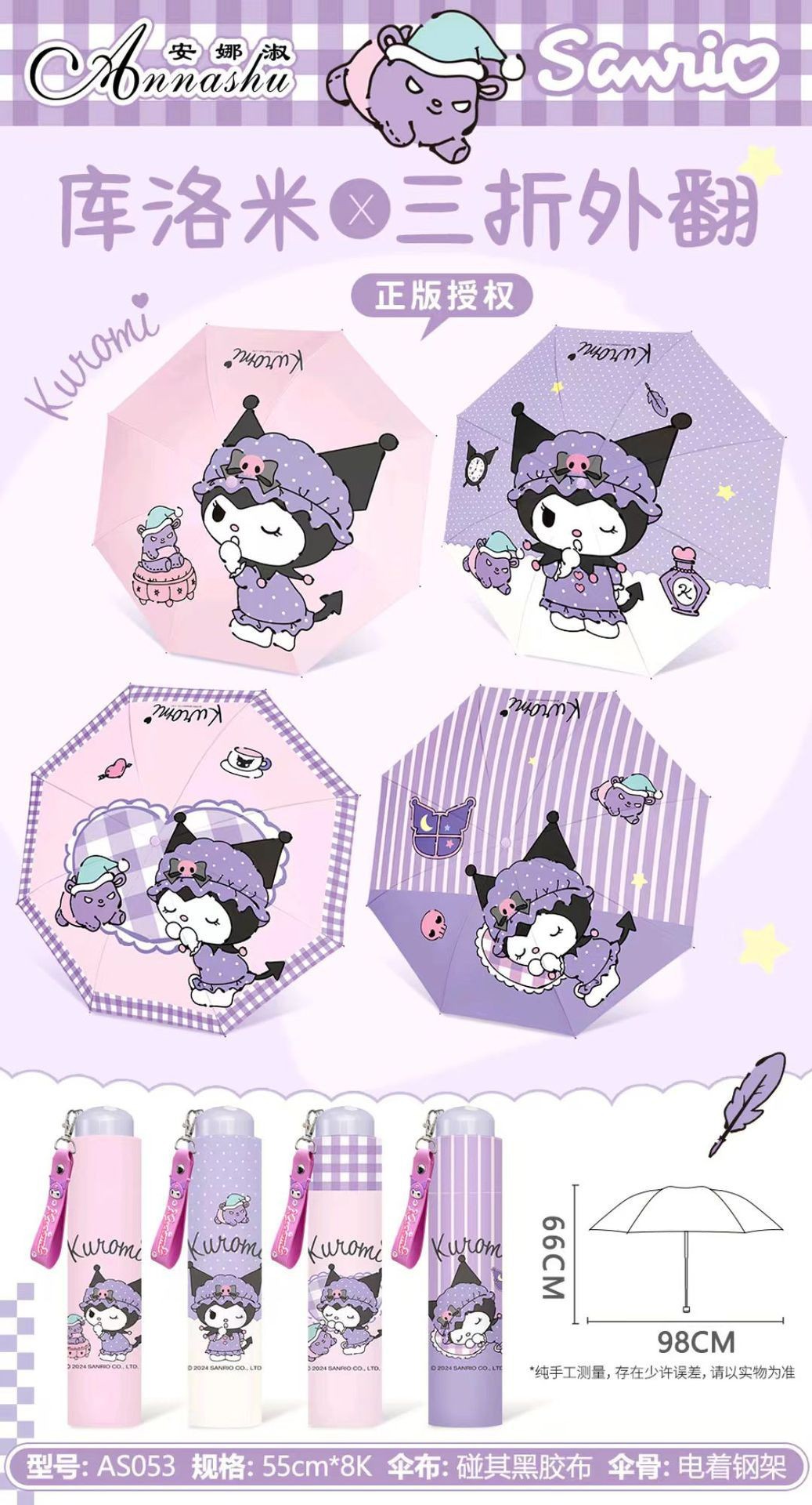 정품 산리오 우산 검은 고무 햇살 우산 맑고 비오는 이중 용도 선 스크린 및 UV 보호 휴대용 만화 3 배 우산스토어 가기