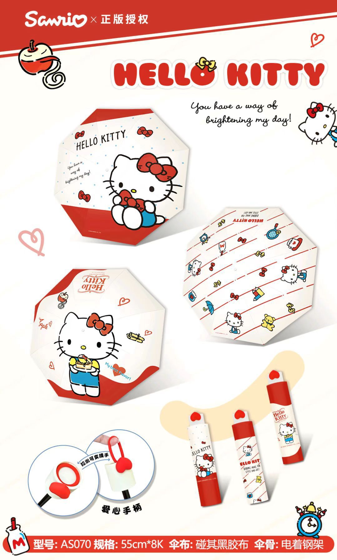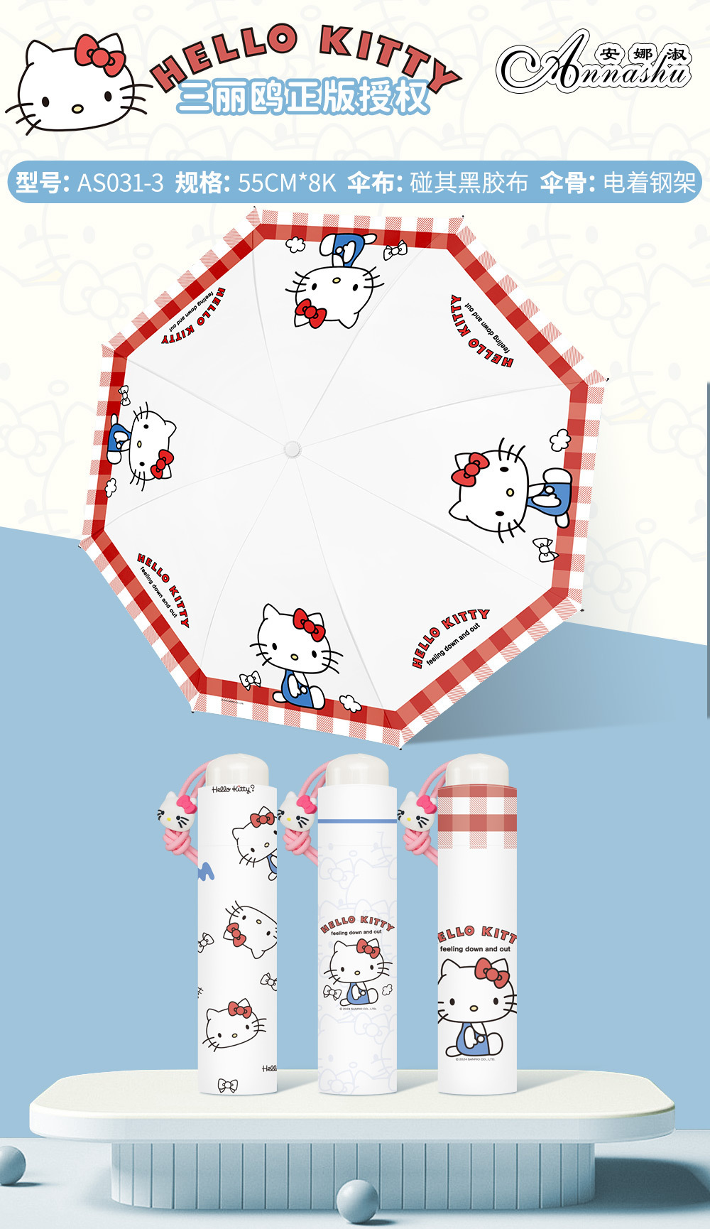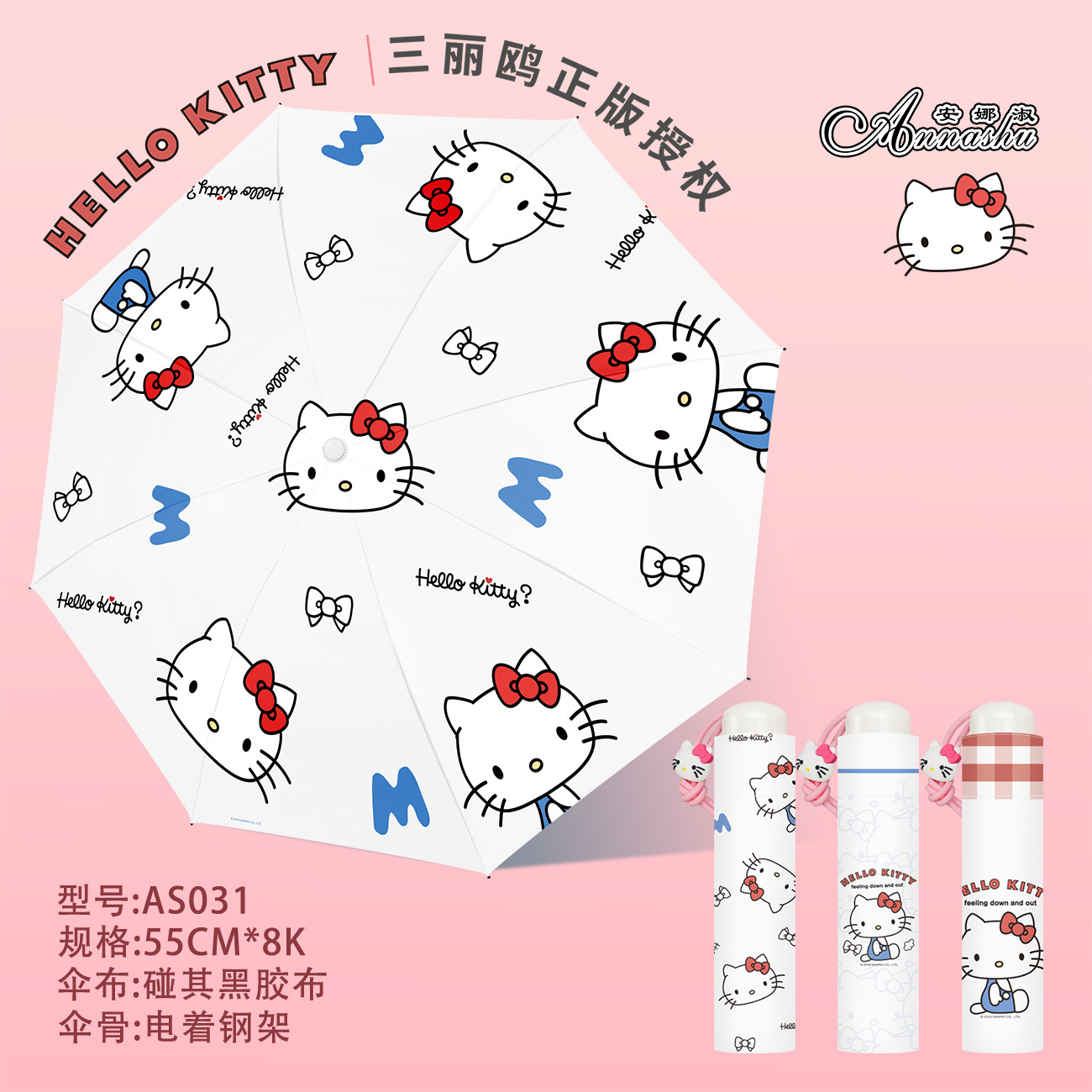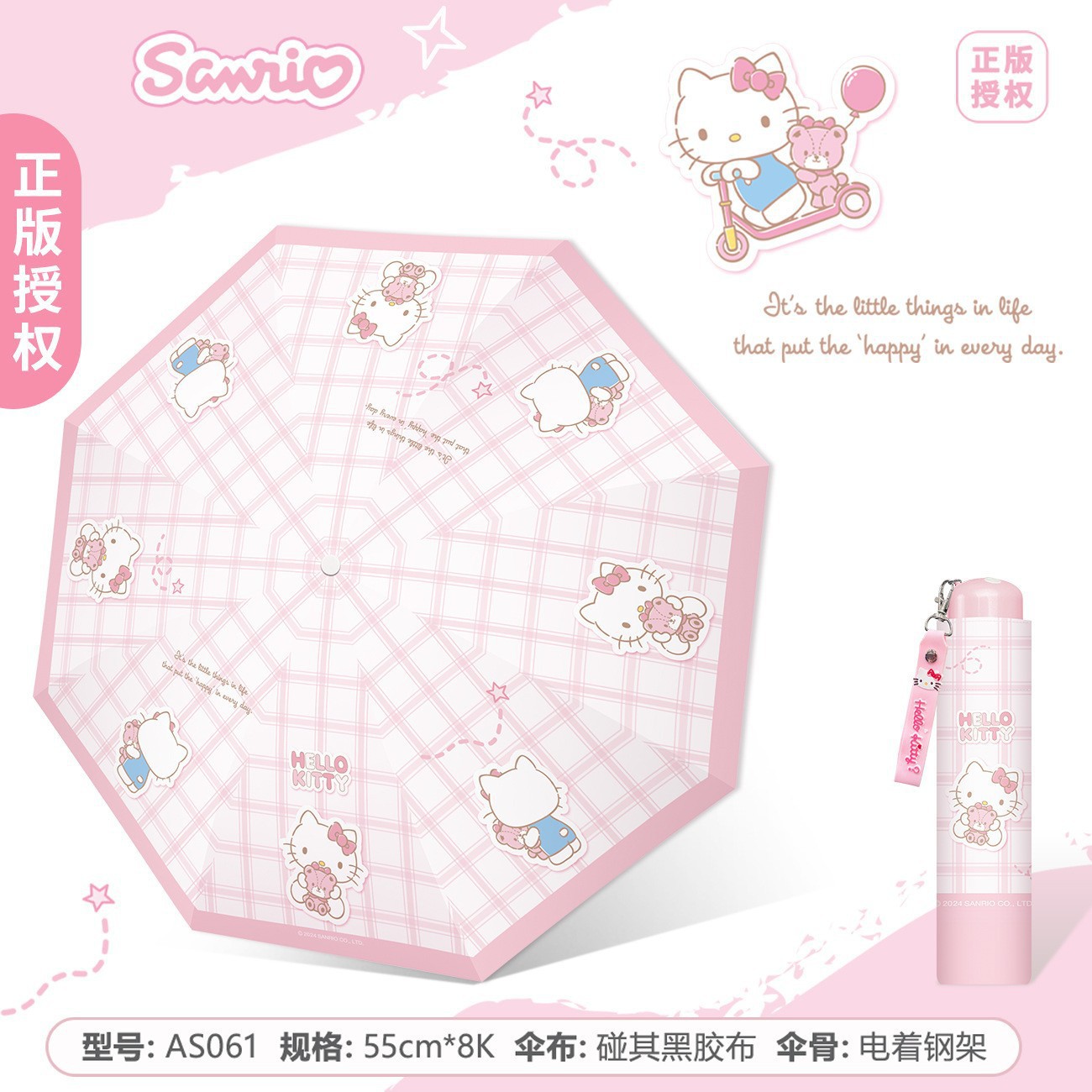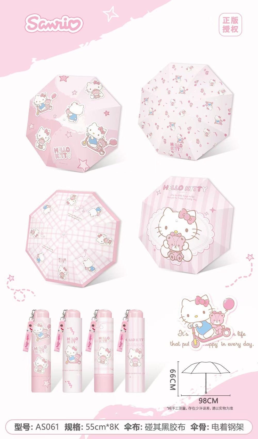 정품 산리오 우산 검은 고무 햇살 우산 맑고 비오는 이중 용도 선 스크린 및 UV 보호 휴대용 만화 3 배 우산스토어 가기