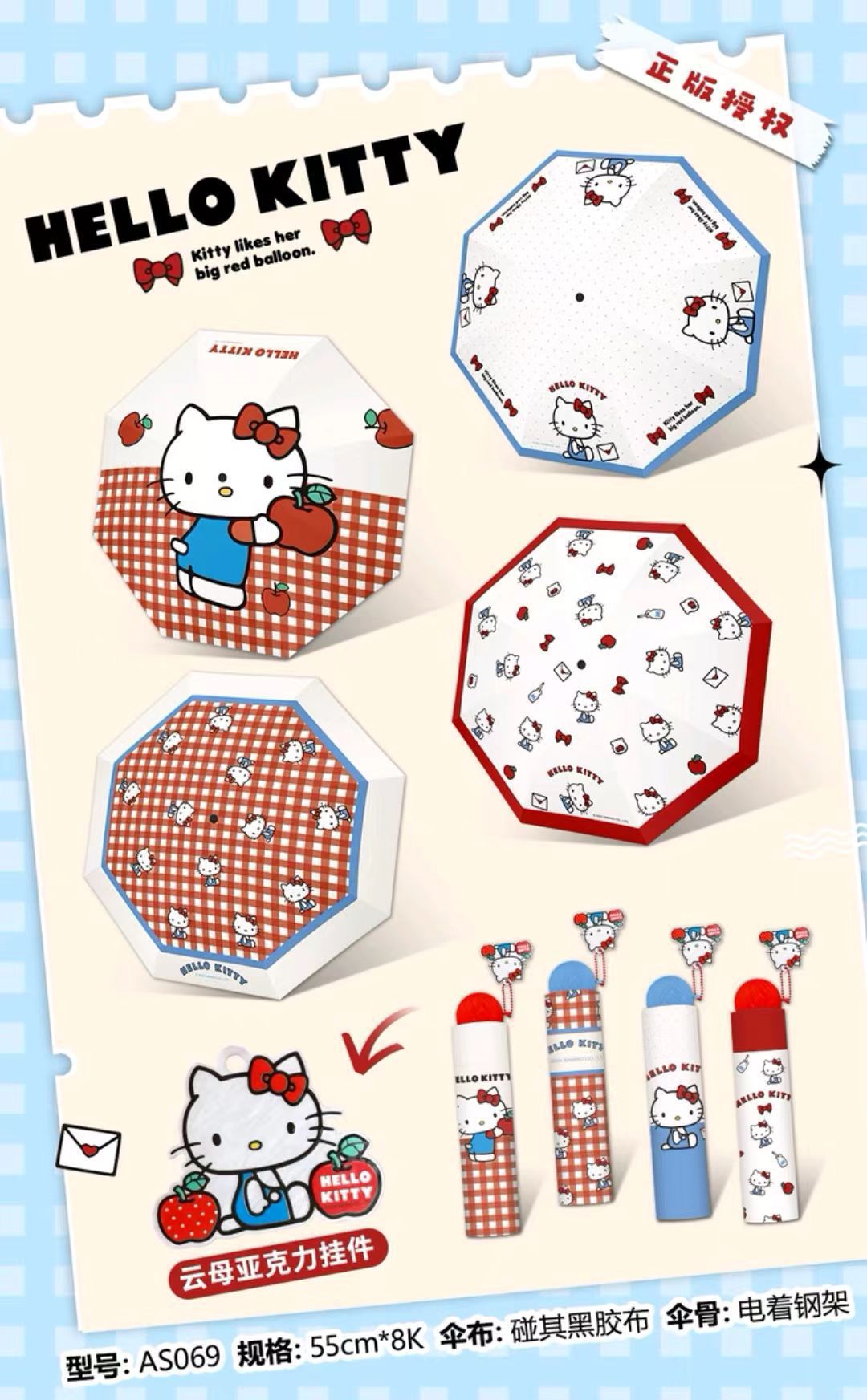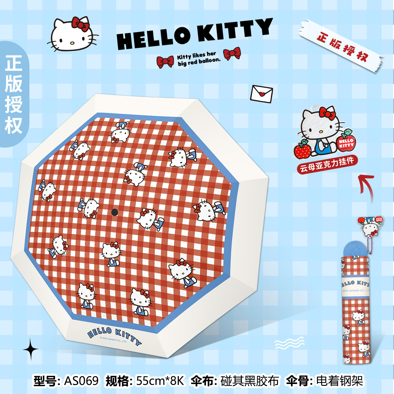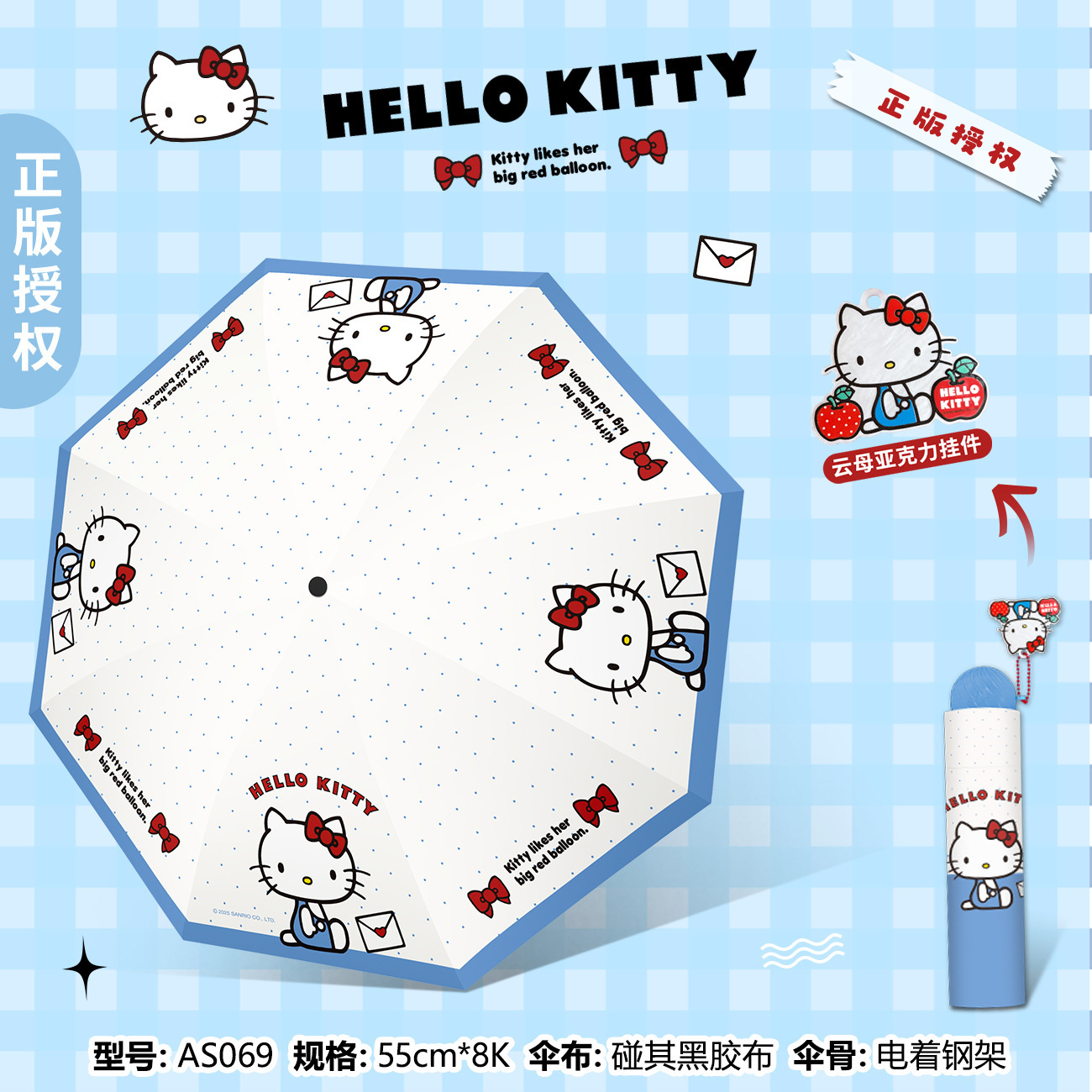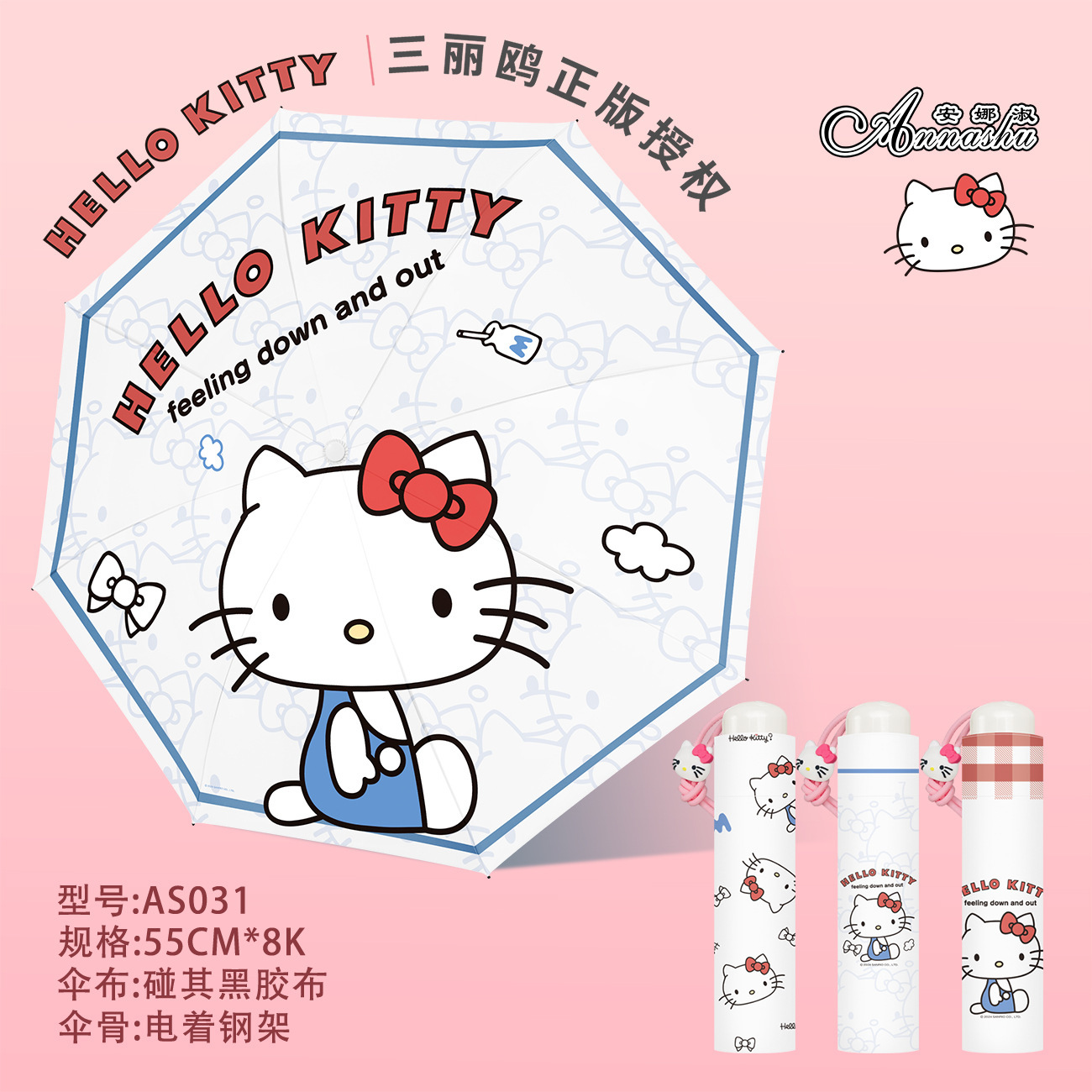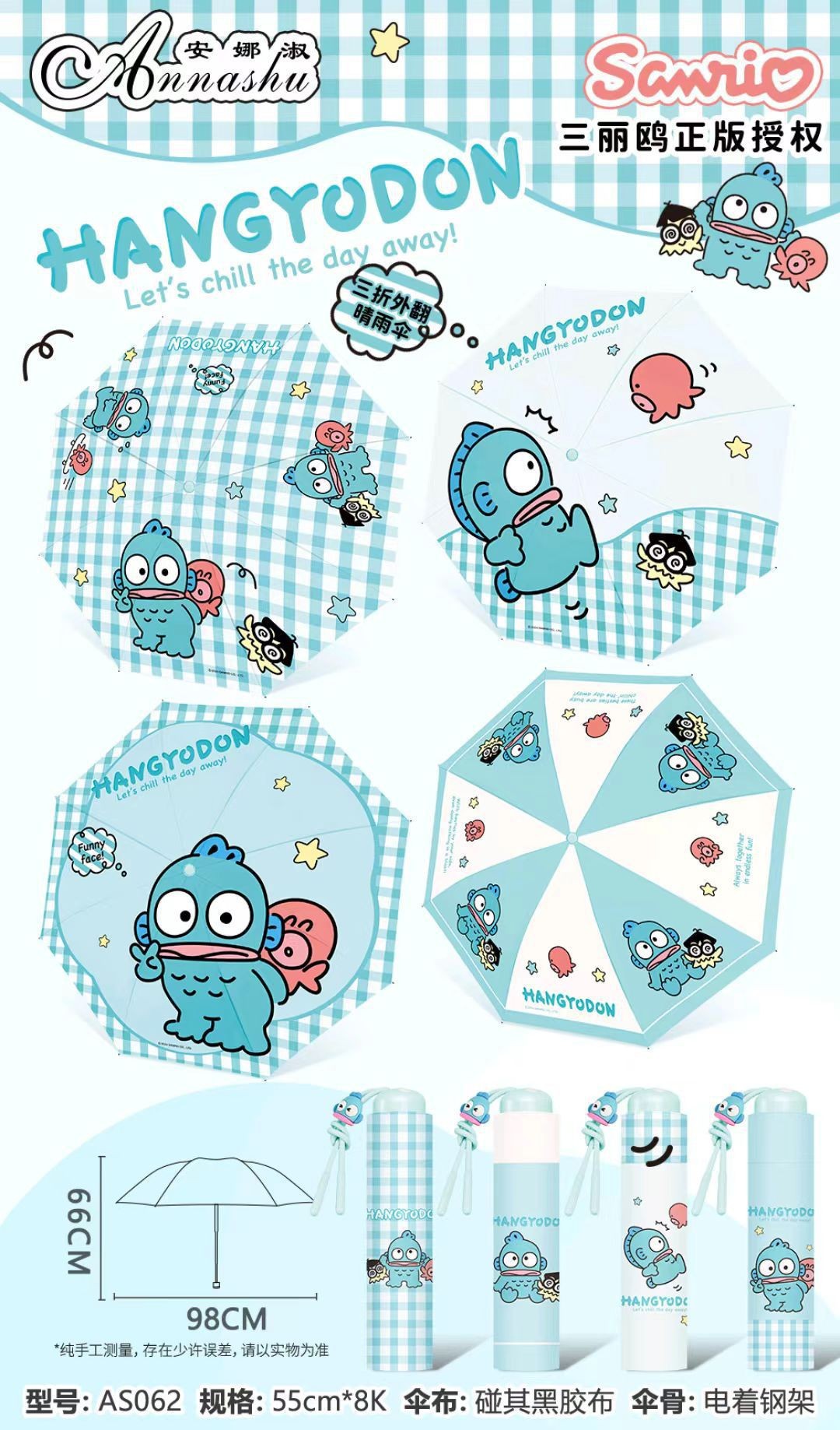 정품 산리오 우산 검은 고무 햇살 우산 맑고 비오는 이중 용도 선 스크린 및 UV 보호 휴대용 만화 3 배 우산스토어 가기