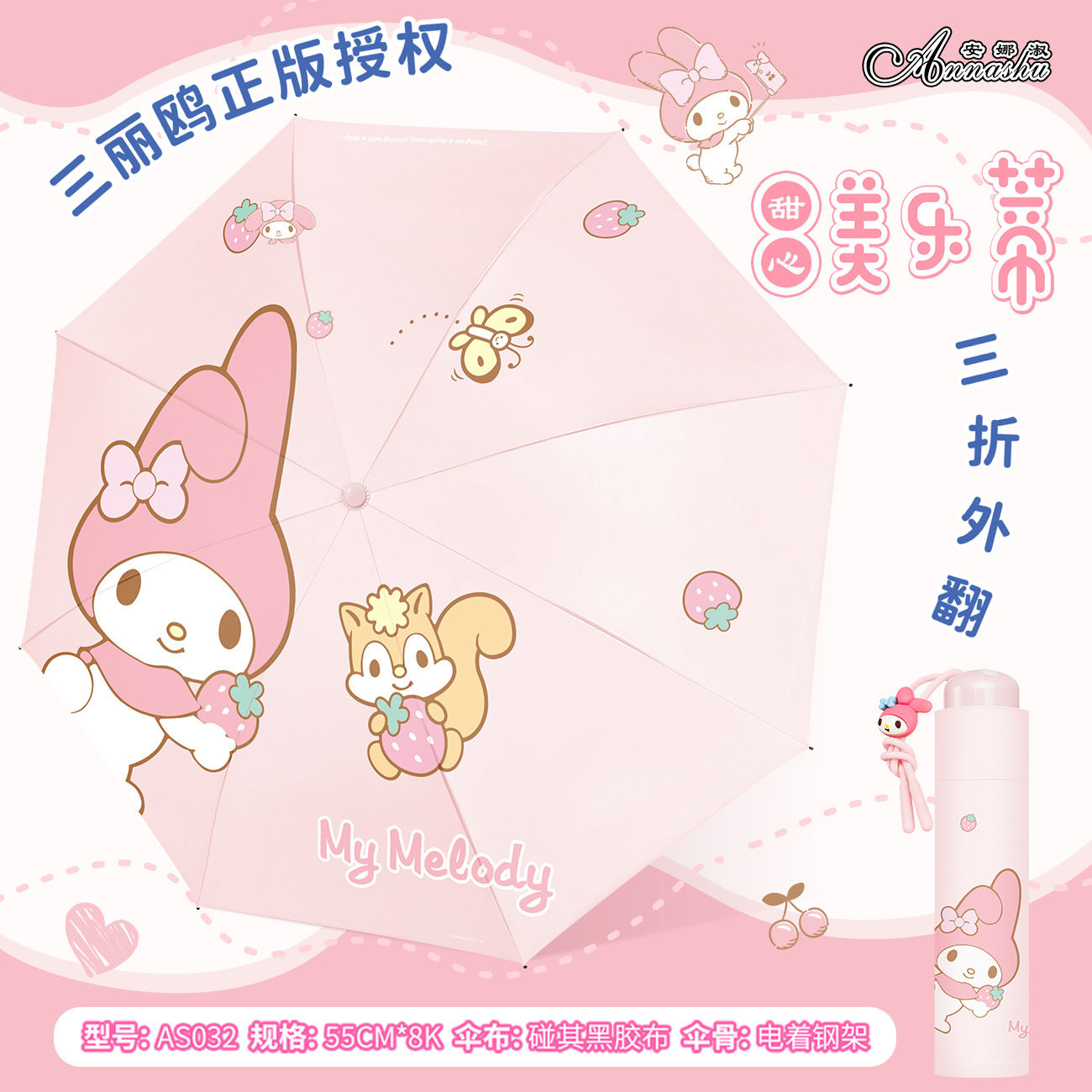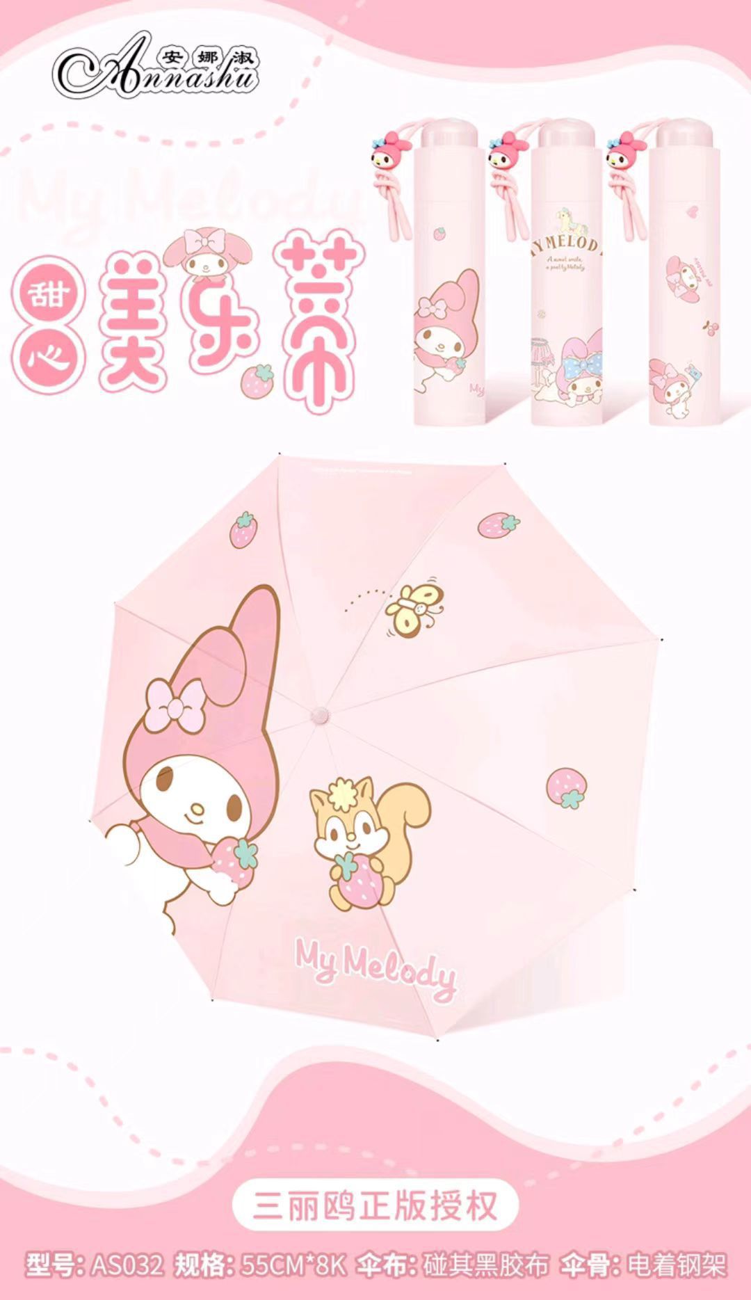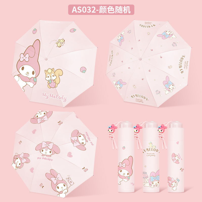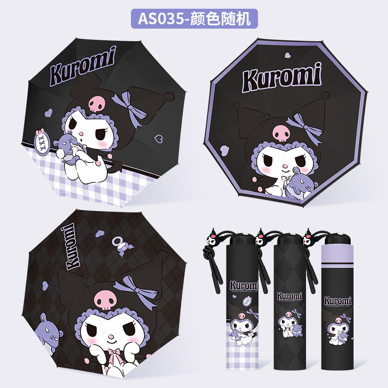 정품 산리오 우산 검은 고무 햇살 우산 맑고 비오는 이중 용도 선 스크린 및 UV 보호 휴대용 만화 3 배 우산