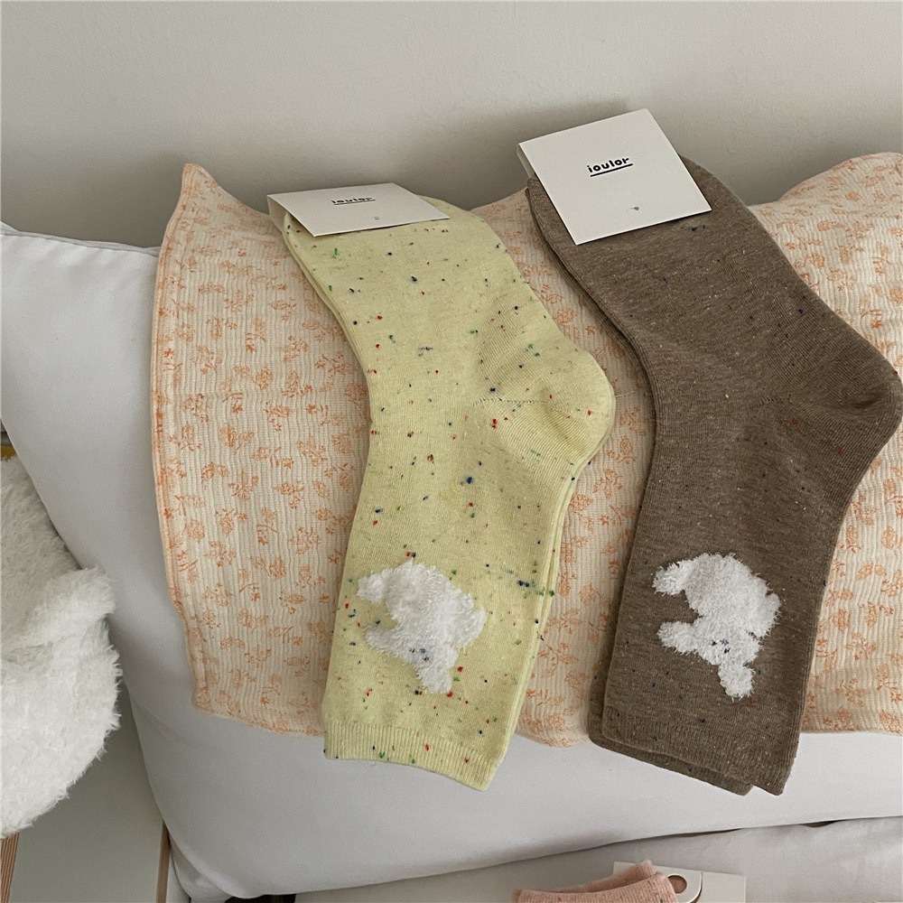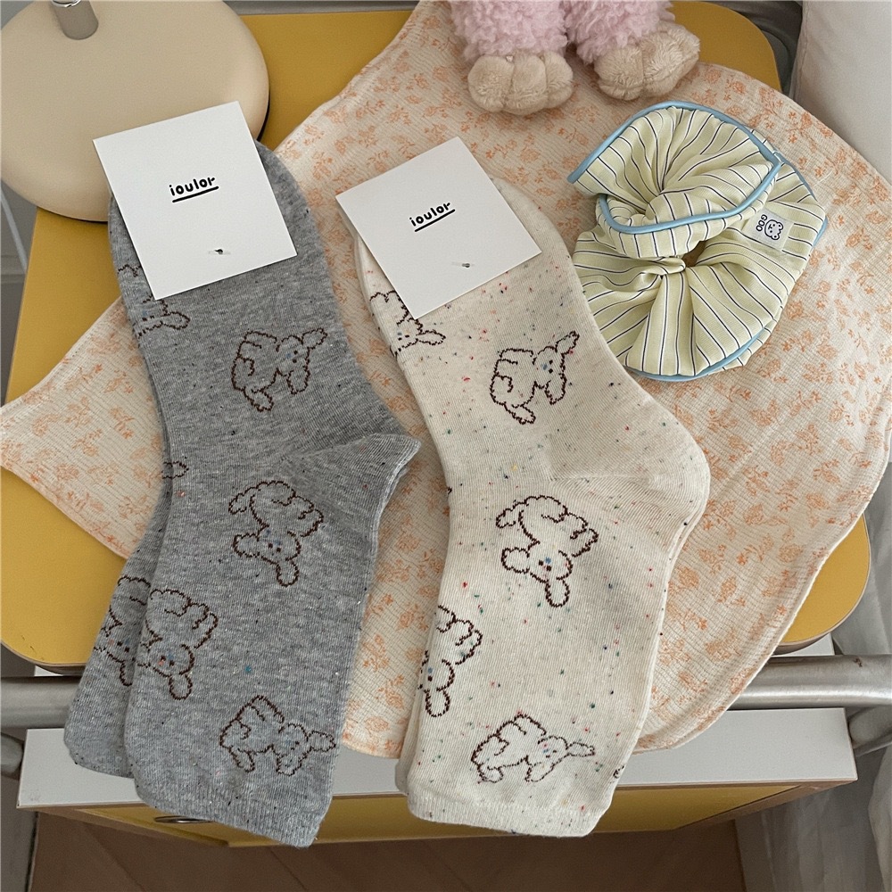 IOULOR 봄과 가을 구름 개 귀여운 튜브 양말 소녀 올 매치 조수 양말 만화 면화 더미 양말 어린이