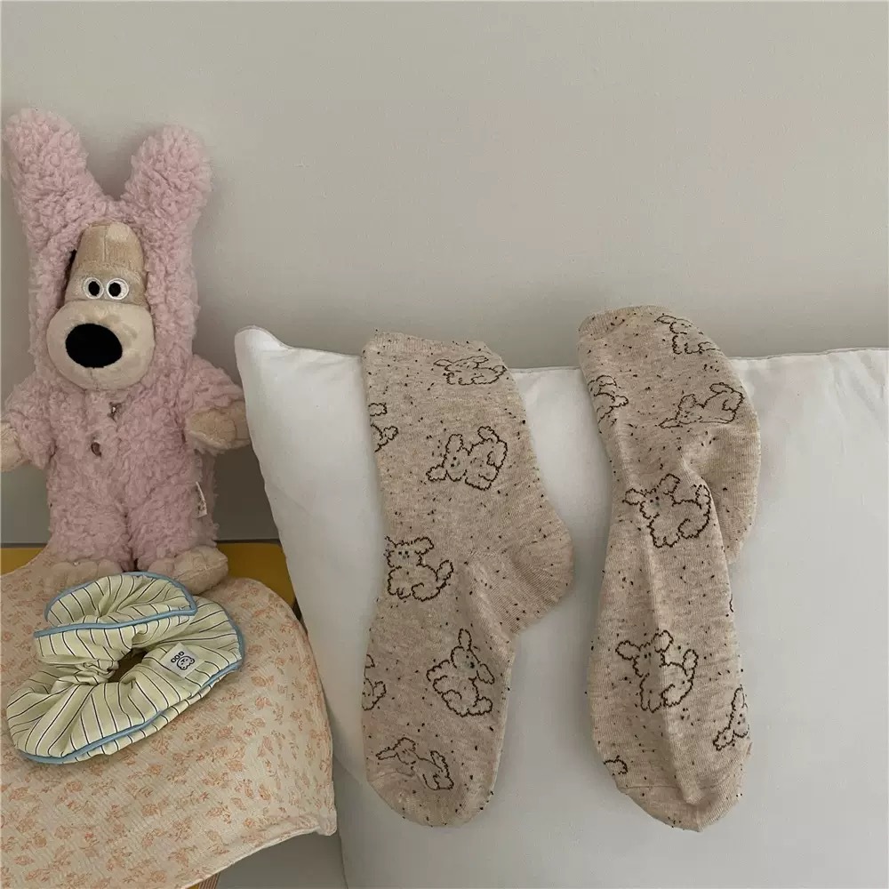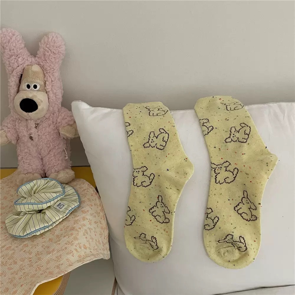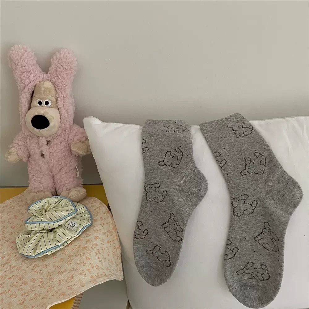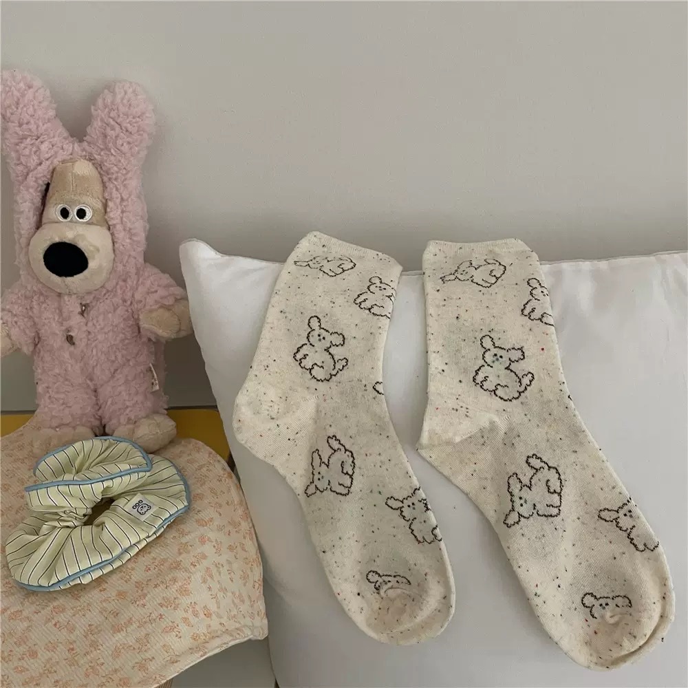 IOULOR 봄과 가을 구름 개 귀여운 튜브 양말 소녀 올 매치 조수 양말 만화 면화 더미 양말 어린이스토어 가기