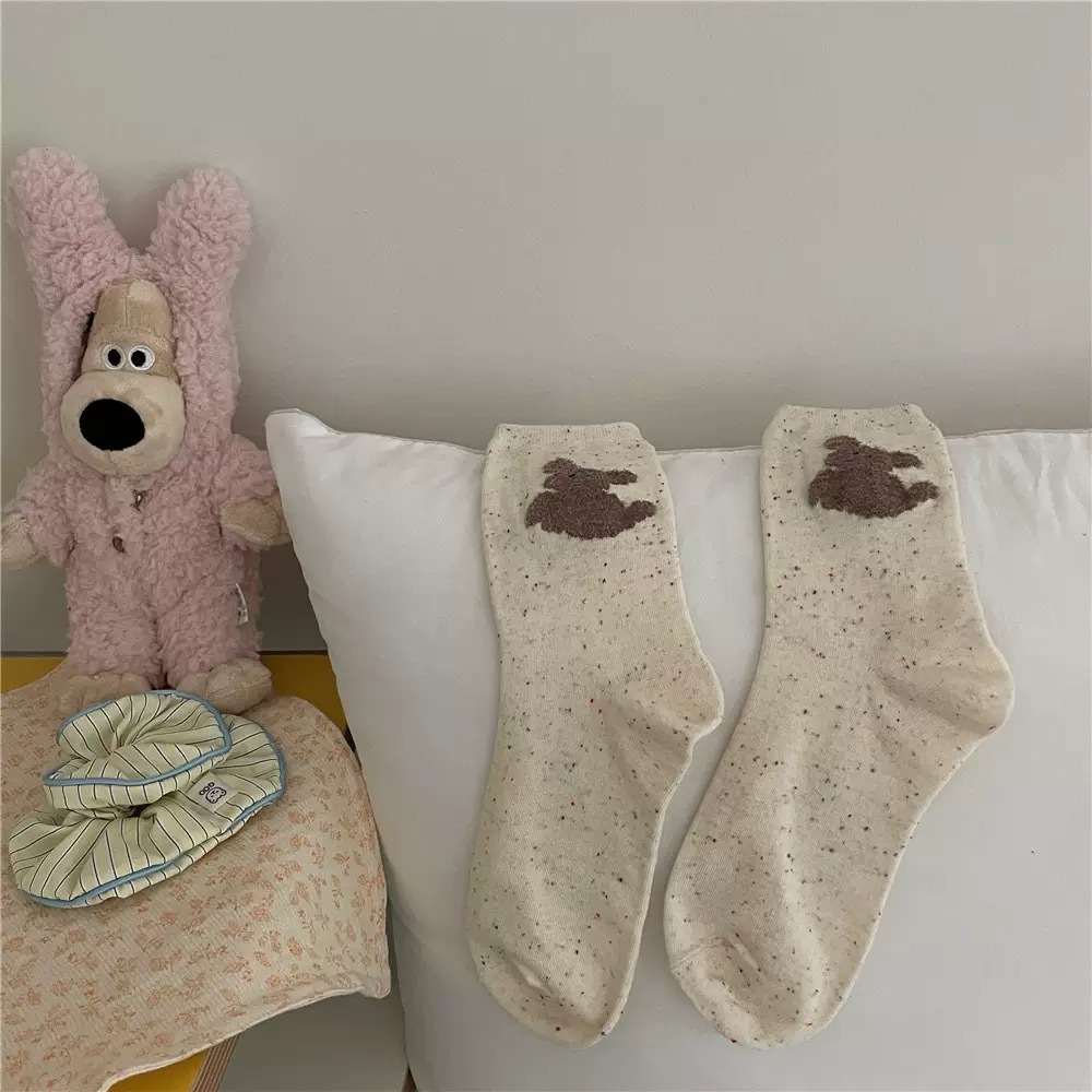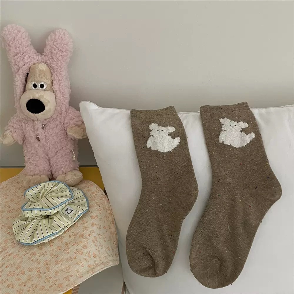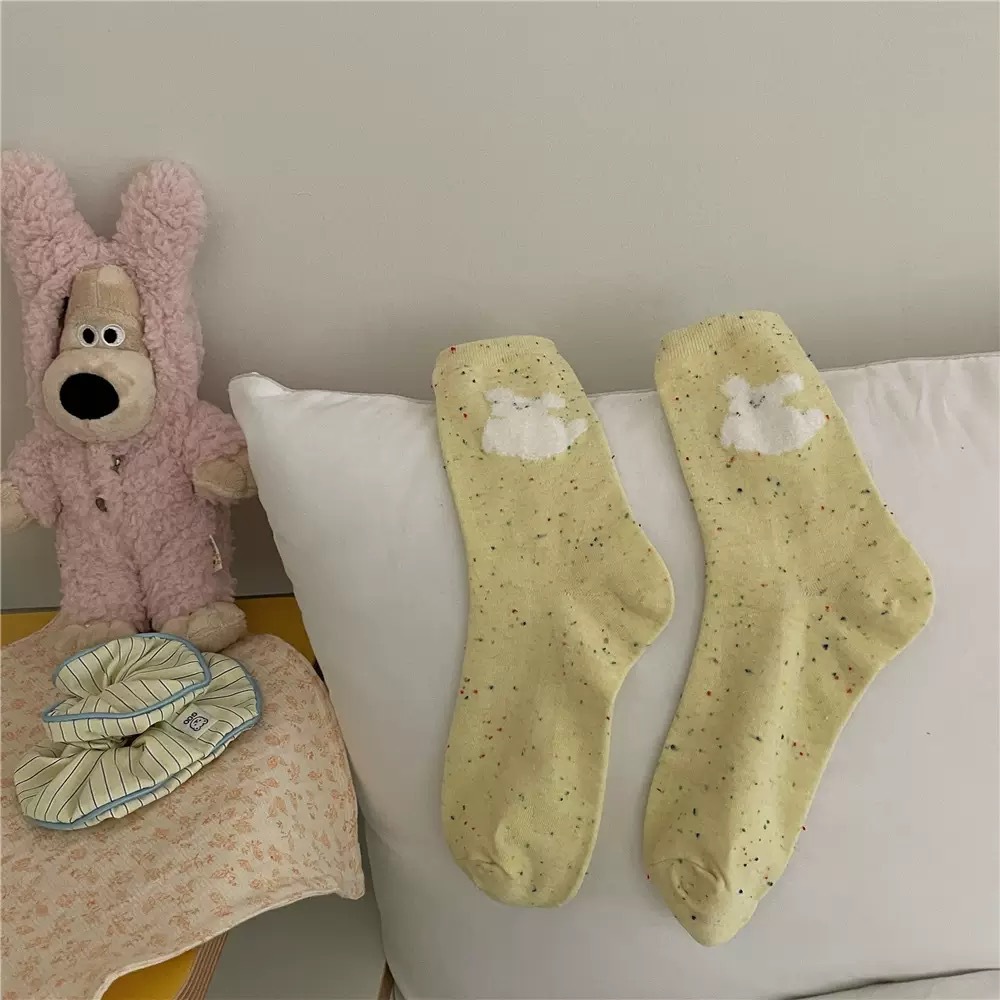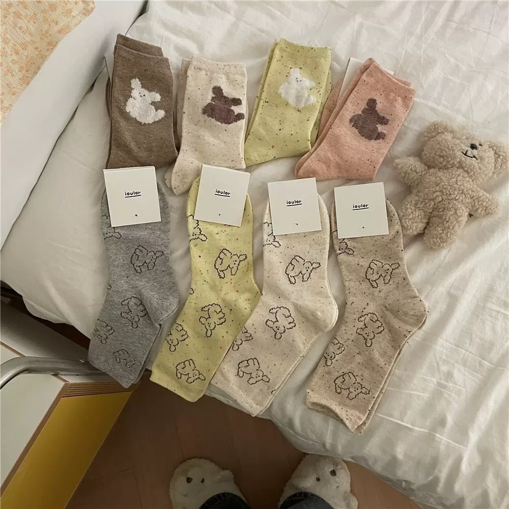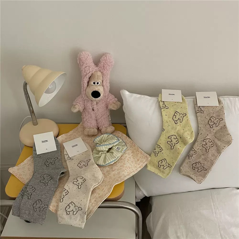 IOULOR 봄과 가을 구름 개 귀여운 튜브 양말 소녀 올 매치 조수 양말 만화 면화 더미 양말 어린이스토어 가기