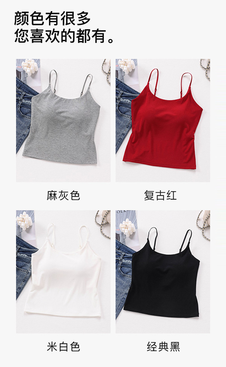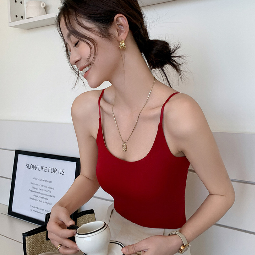8839-2 컵 조끼가있는 얇은 어깨 스트랩 여자 여름 외부 착용 브래지어없는 유방 슬림없는 탑